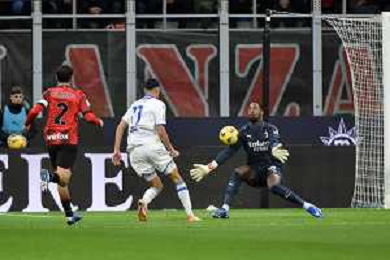 Milan vs Frosinone nella foto sullo 0 a 0 Mike Maignan (Milan) para la conclusione ravvicinata di Marvin Cuni (Frosinone) Milano 02-12-2023 Stadio Giuseppe Meazza - San Siro Campionato Serie A TIM - 14a giornata foto Roberto Garavaglia/ag. Aldo Liverani sas
