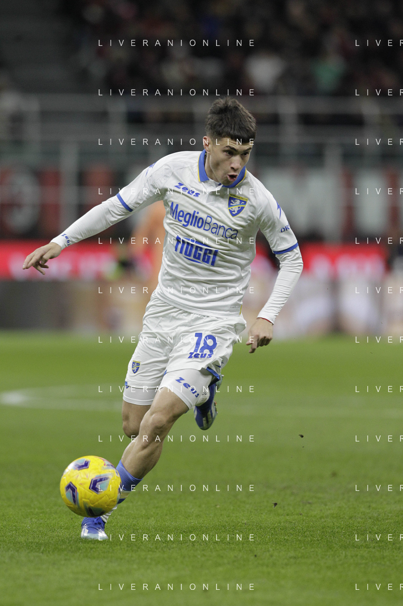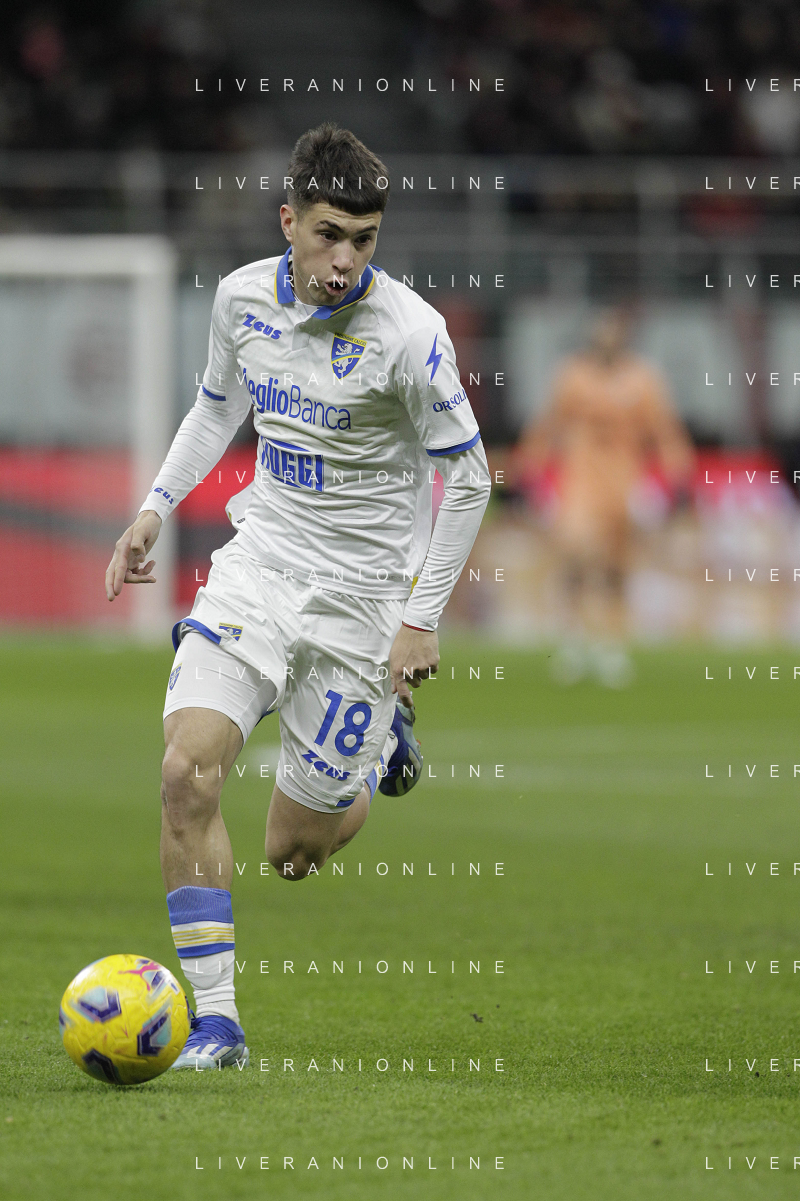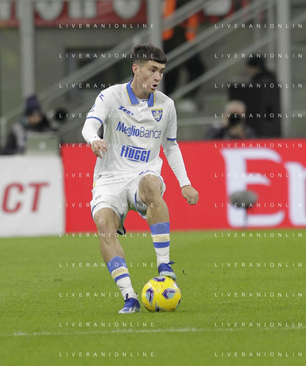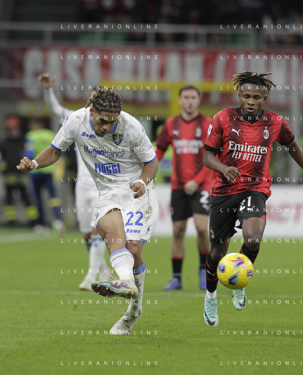 Milan vs Frosinone nella foto Enzo Barrenechea (Frosinone) e Yunus Musah (Milan) Milano 02-12-2023 Stadio Giuseppe Meazza - San Siro Campionato Serie A TIM - 14a giornata foto Roberto Garavaglia/ag. Aldo Liverani sas