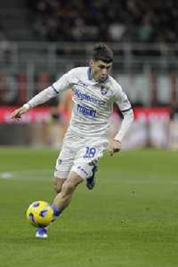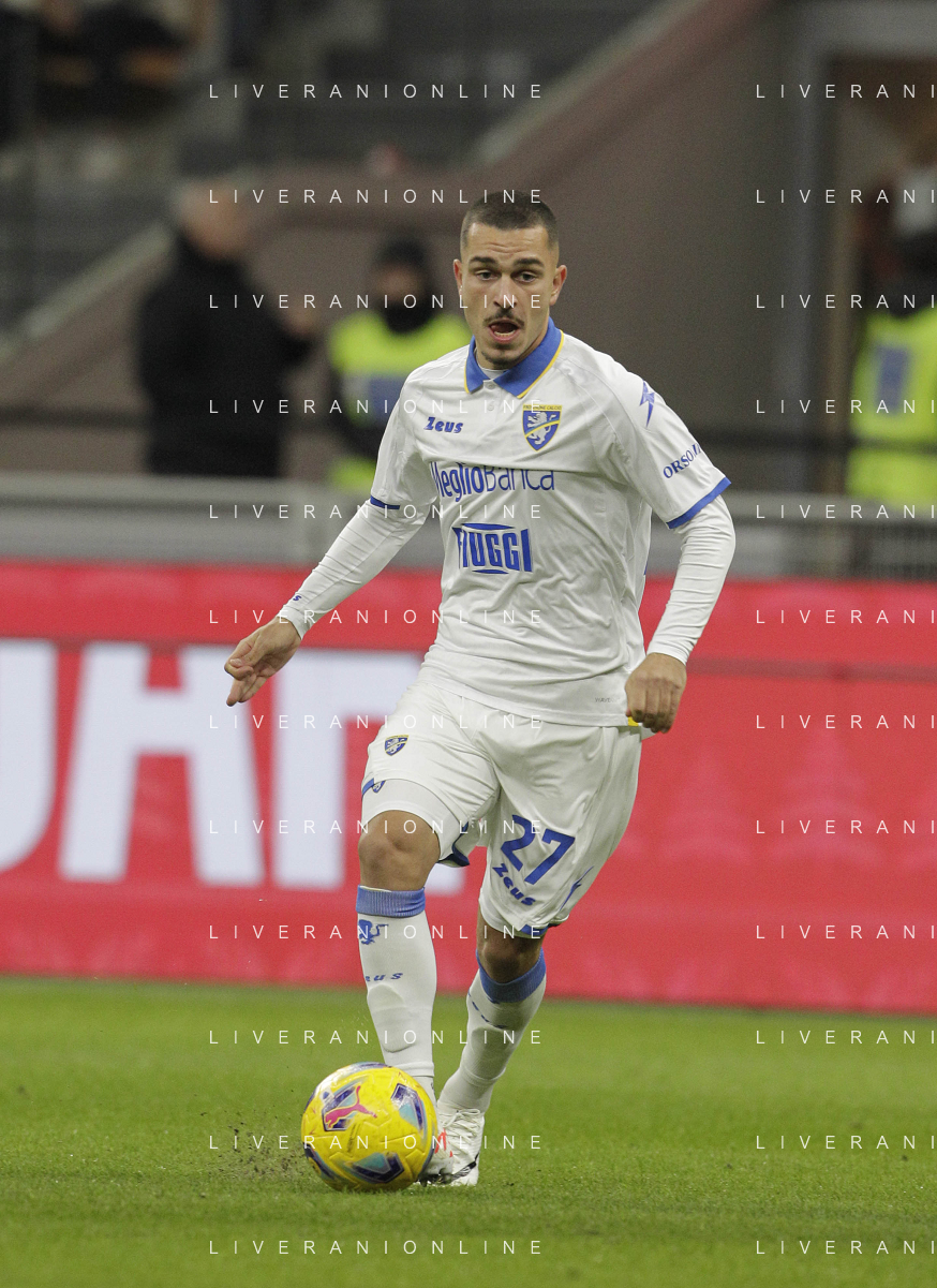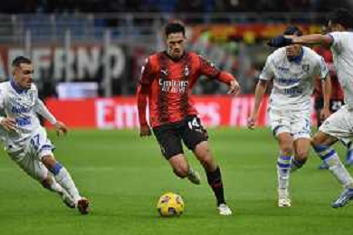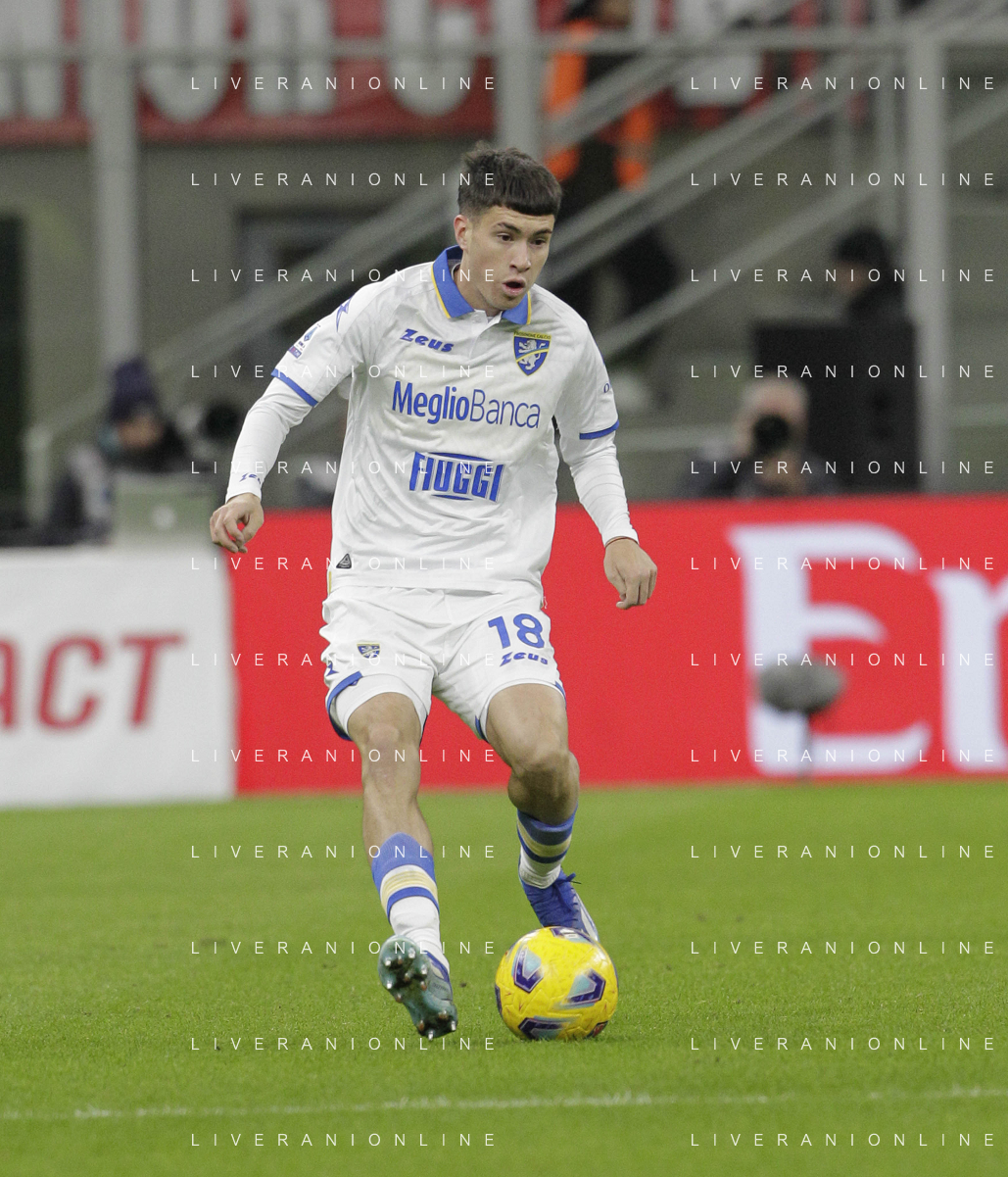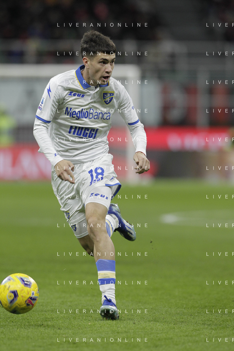 Milan vs Frosinone nella foto Enzo Barrenechea (Frosinone) e Yunus Musah (Milan) Milano 02-12-2023 Stadio Giuseppe Meazza - San Siro Campionato Serie A TIM - 14a giornata foto Roberto Garavaglia/ag. Aldo Liverani sas