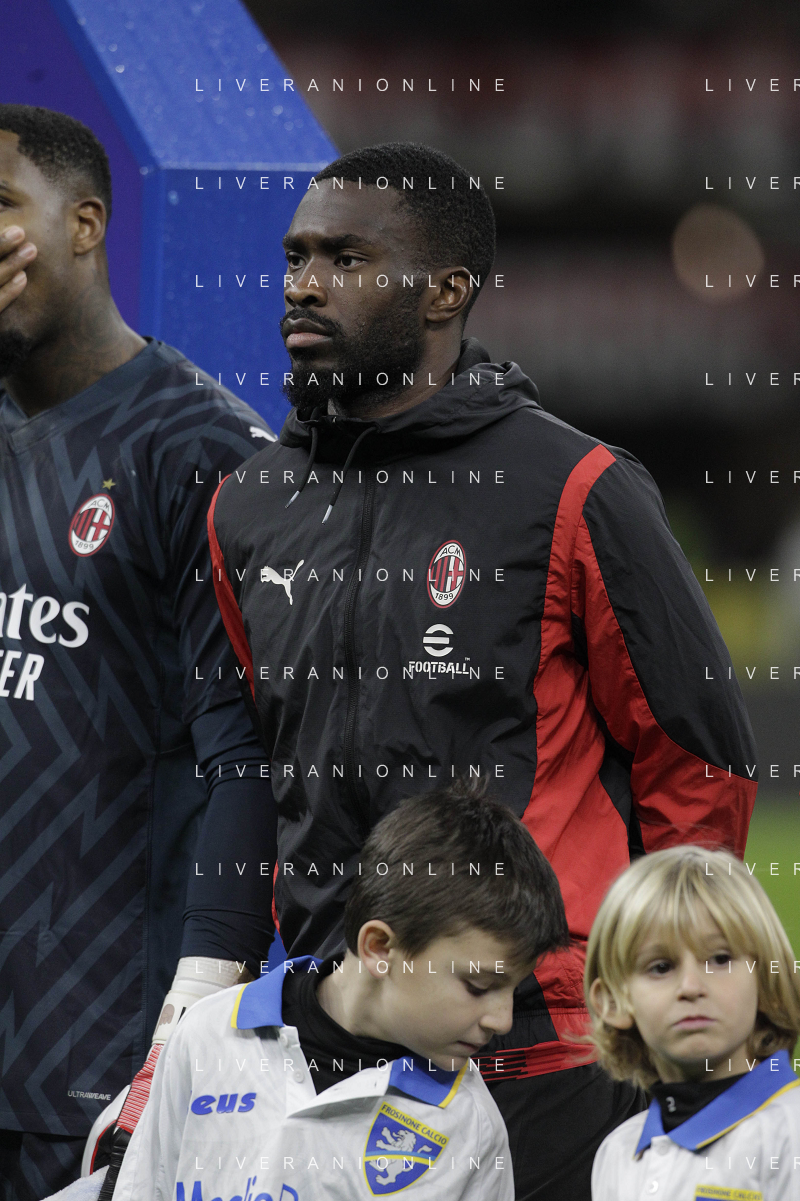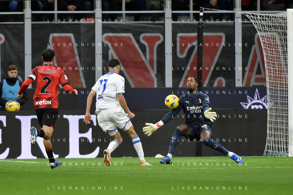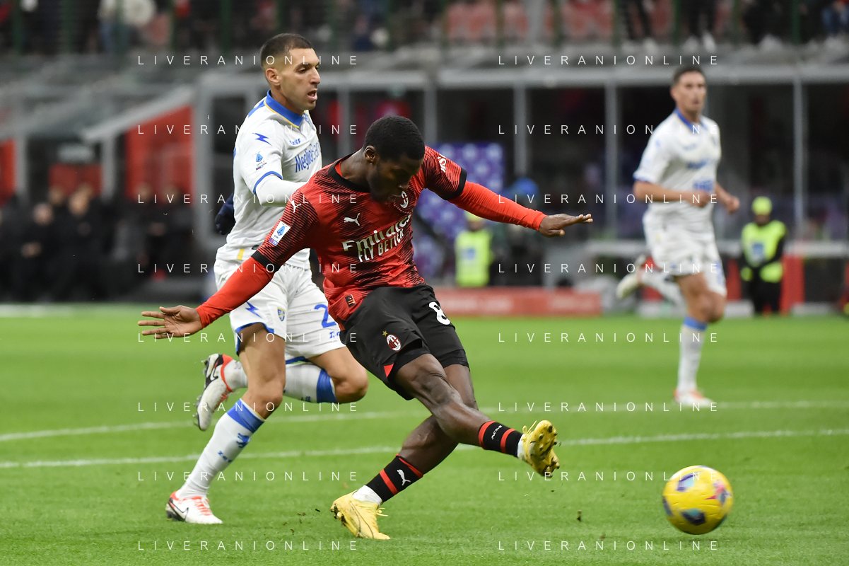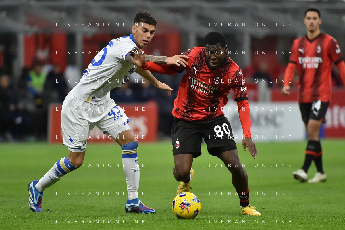 Milan vs Frosinone nella foto Francesco Camarda (Milan) e Caleb Okoli (Frosinone) Milano 02-12-2023 Stadio Giuseppe Meazza - San Siro Campionato Serie A TIM - 14a giornata foto Roberto Garavaglia/ag. Aldo Liverani sas