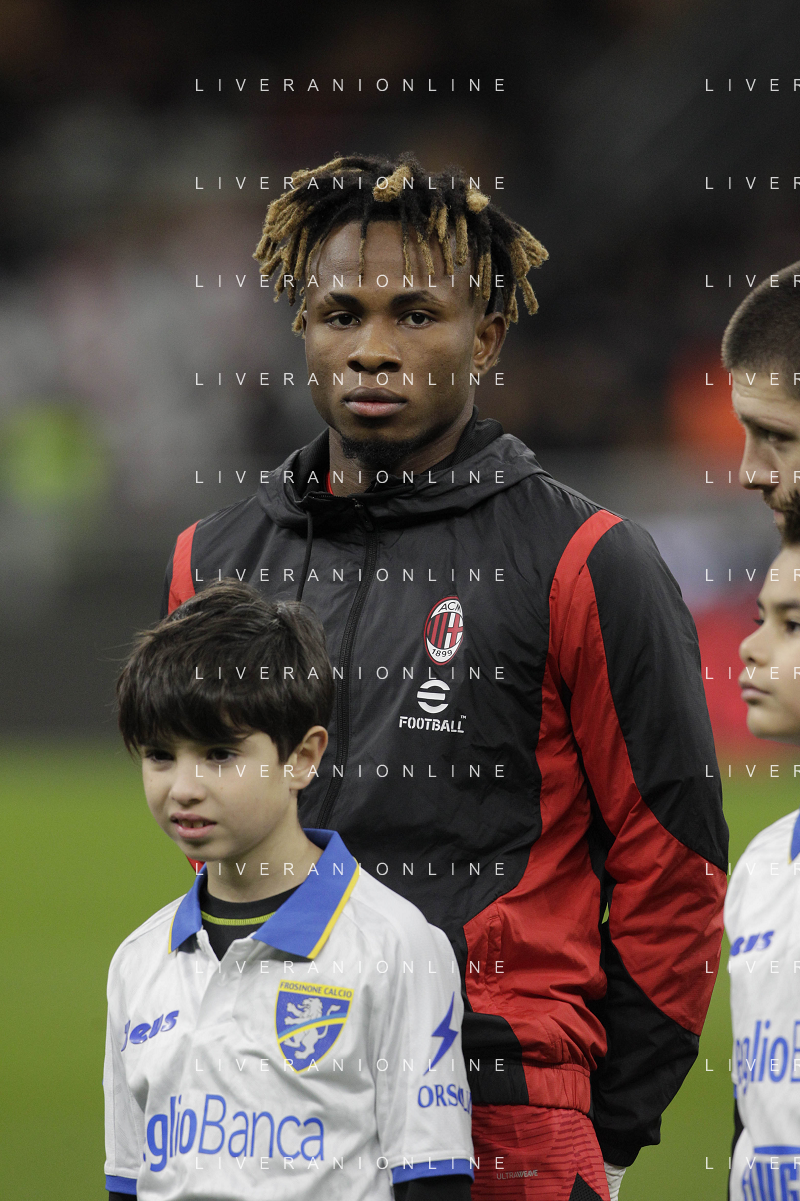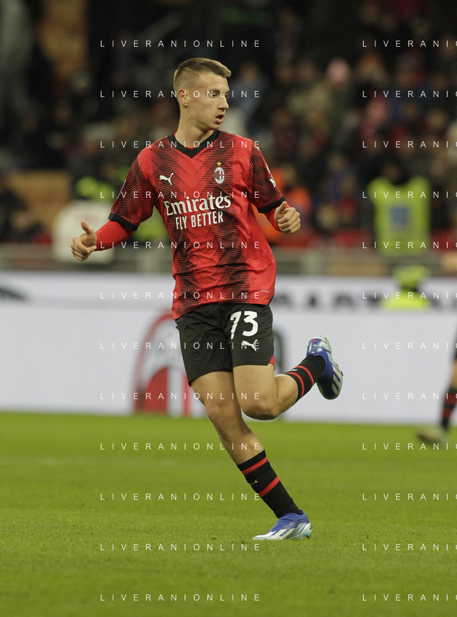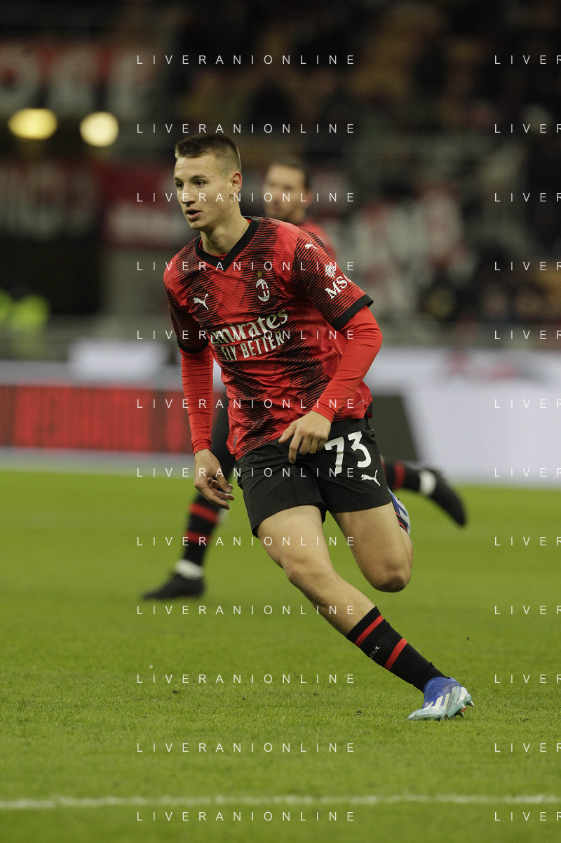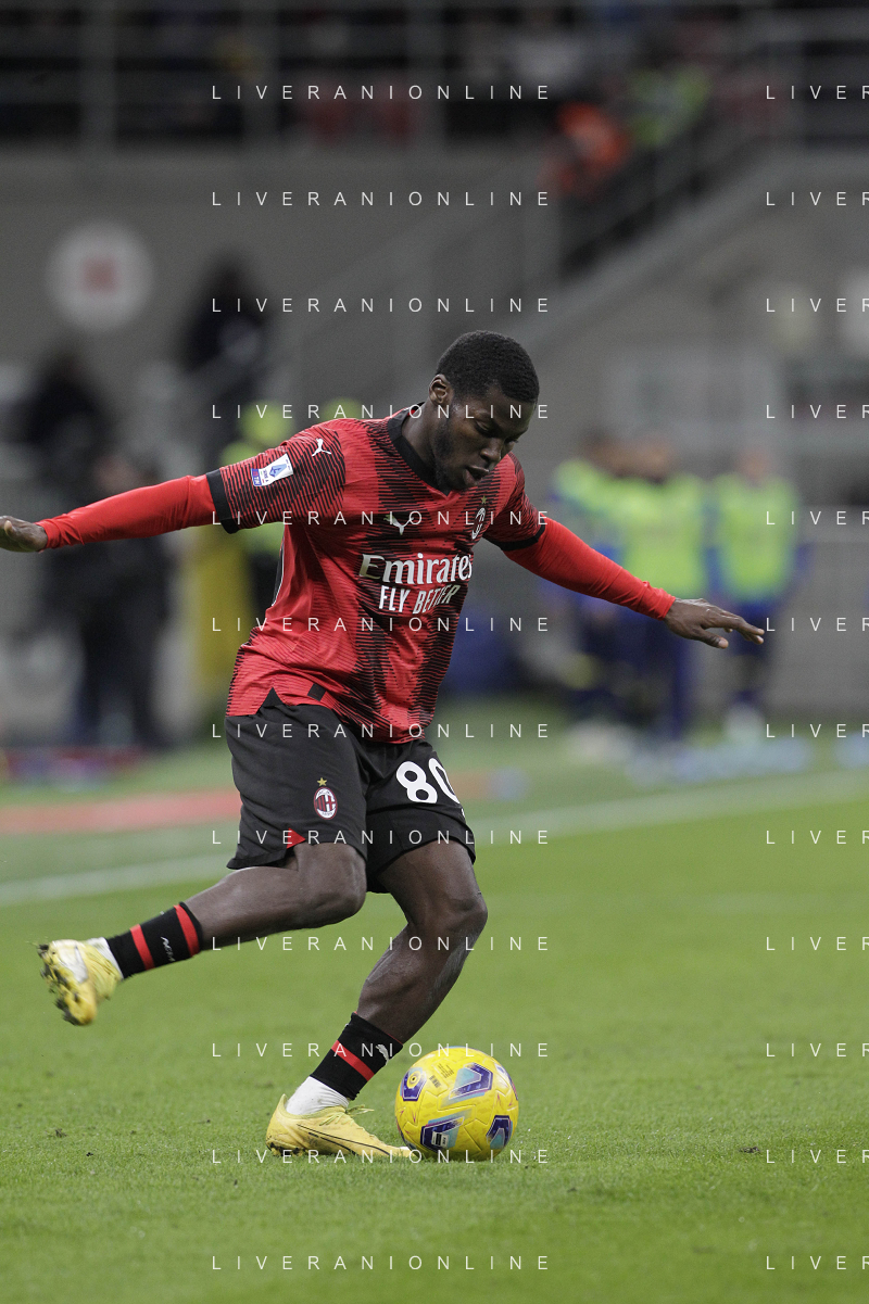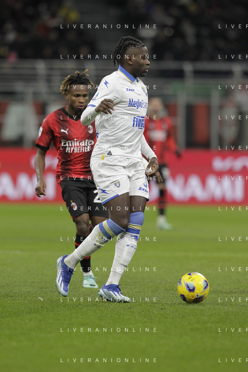 Milan vs Frosinone nella foto Francesco Camarda (Milan) e Caleb Okoli (Frosinone) Milano 02-12-2023 Stadio Giuseppe Meazza - San Siro Campionato Serie A TIM - 14a giornata foto Roberto Garavaglia/ag. Aldo Liverani sas