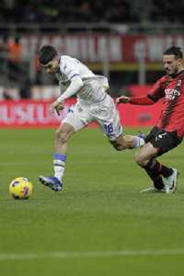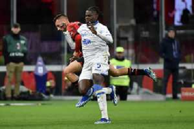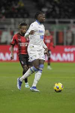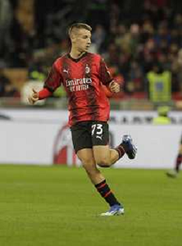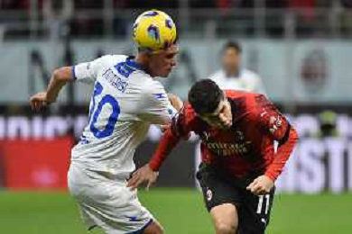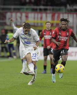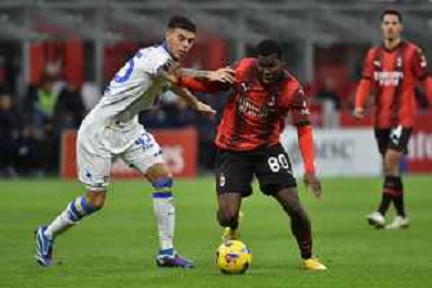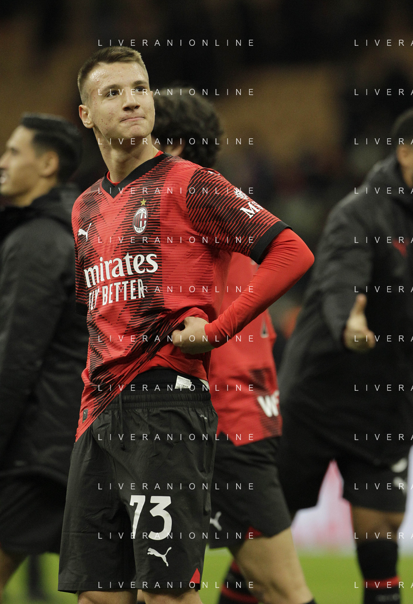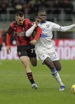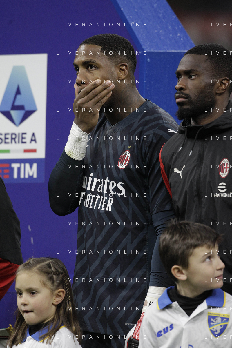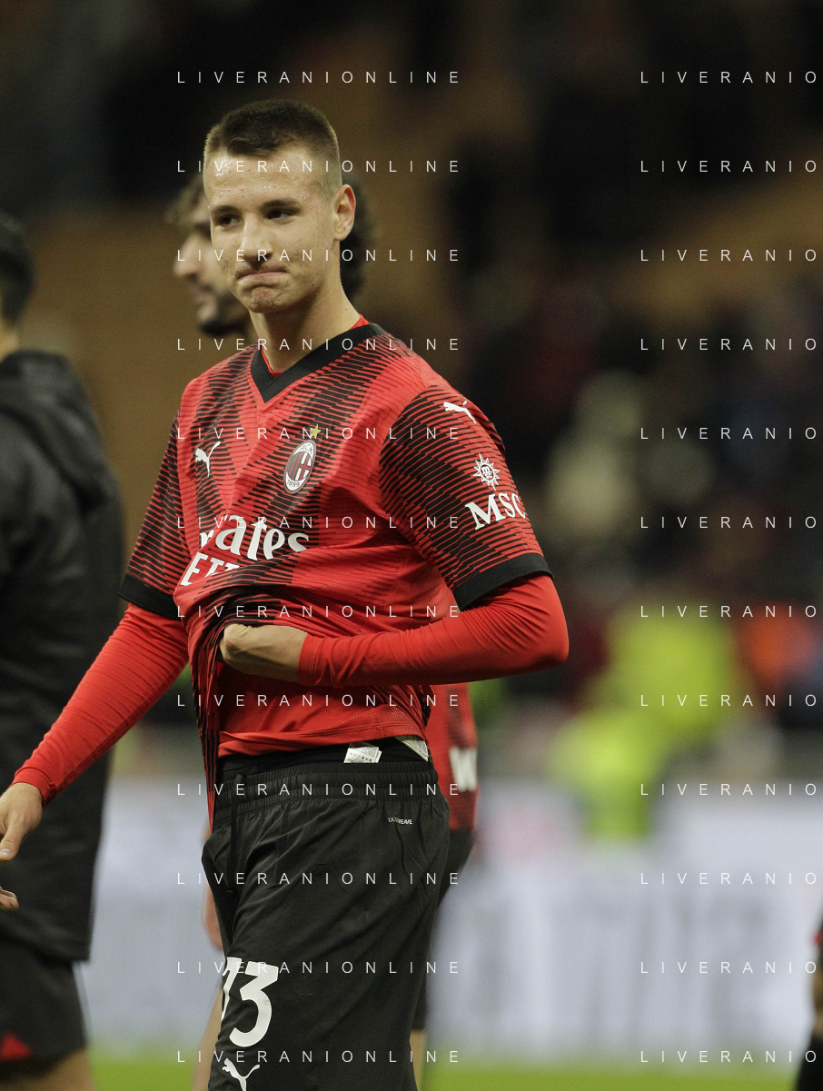 Milan vs Frosinone nella foto Francesco Camarda (Milan) e Caleb Okoli (Frosinone) Milano 02-12-2023 Stadio Giuseppe Meazza - San Siro Campionato Serie A TIM - 14a giornata foto Roberto Garavaglia/ag. Aldo Liverani sas