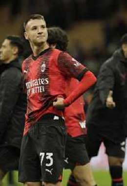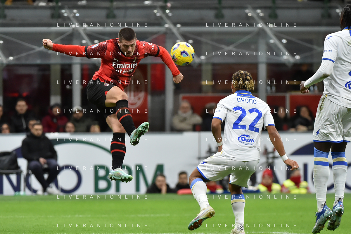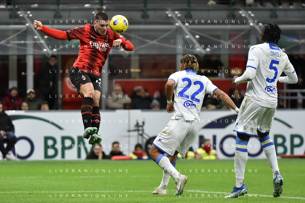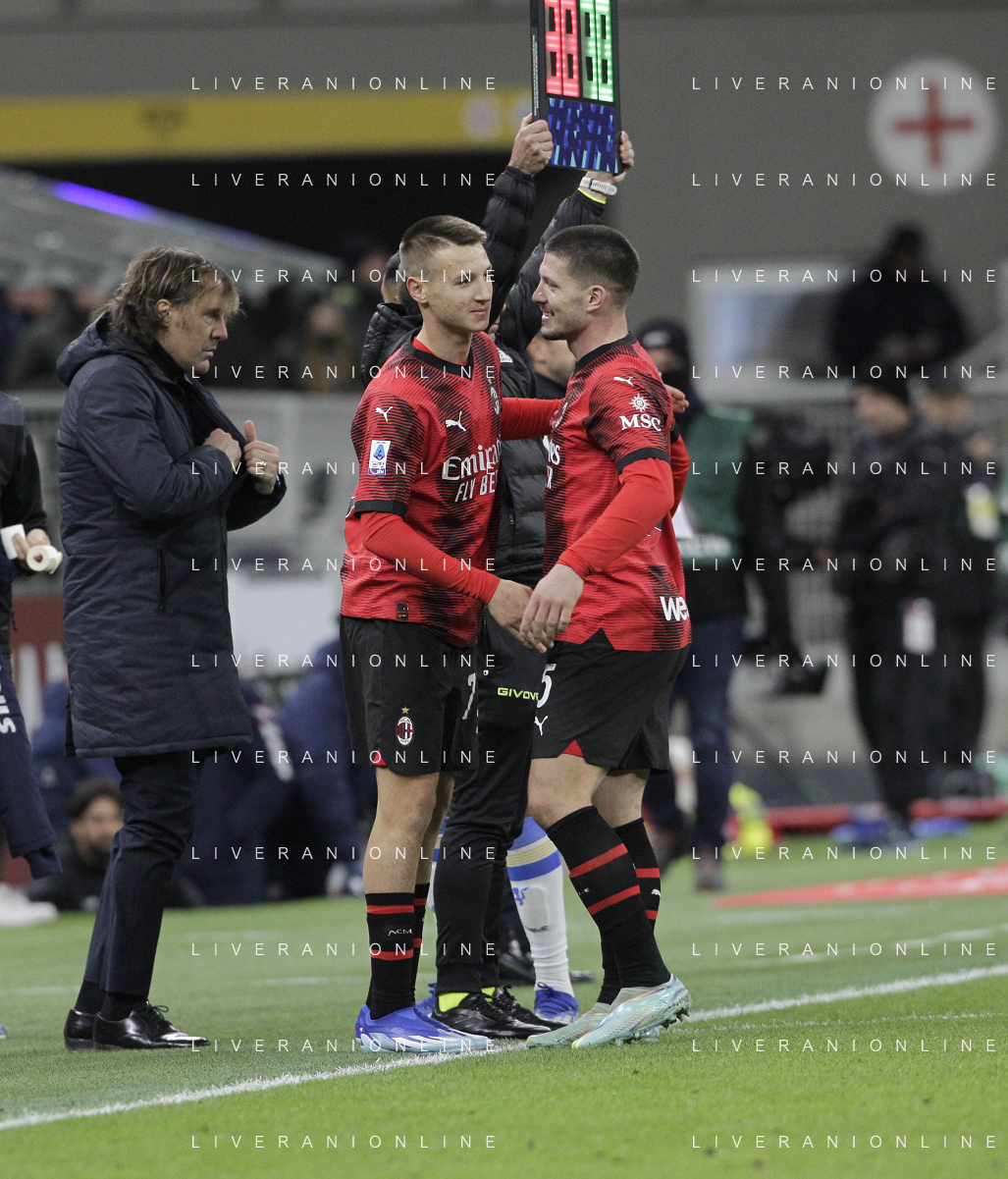 Milan vs Frosinone nella foto Luka Jovic (Milan) serve a Fikayo Tomori (Milan) la palla per il gol del 3 a 0 Milano 02-12-2023 Stadio Giuseppe Meazza - San Siro Campionato Serie A TIM - 14a giornata foto Roberto Garavaglia/ag. Aldo Liverani sas