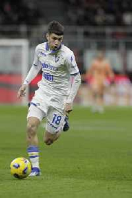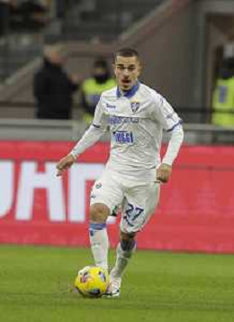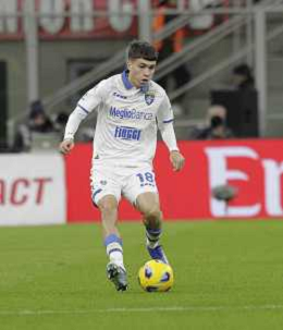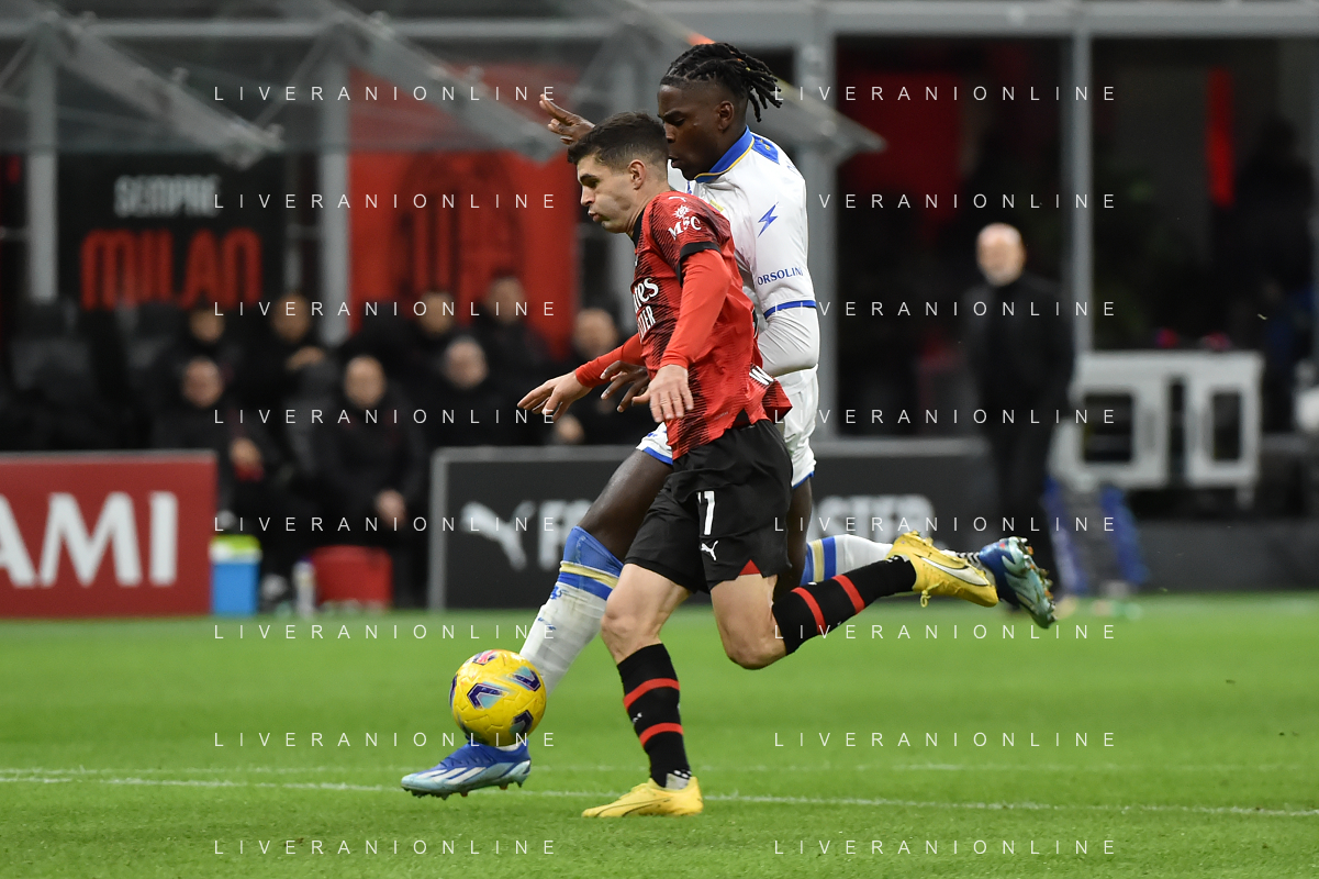 Milan vs Frosinone nella foto Ilario Monterisi (Frosinone) e Christian Mate Pulisic (Milan) Milano 02-12-2023 Stadio Giuseppe Meazza - San Siro Campionato Serie A TIM - 14a giornata foto Roberto Garavaglia/ag. Aldo Liverani sas