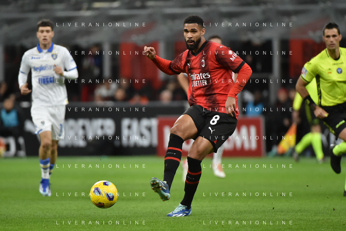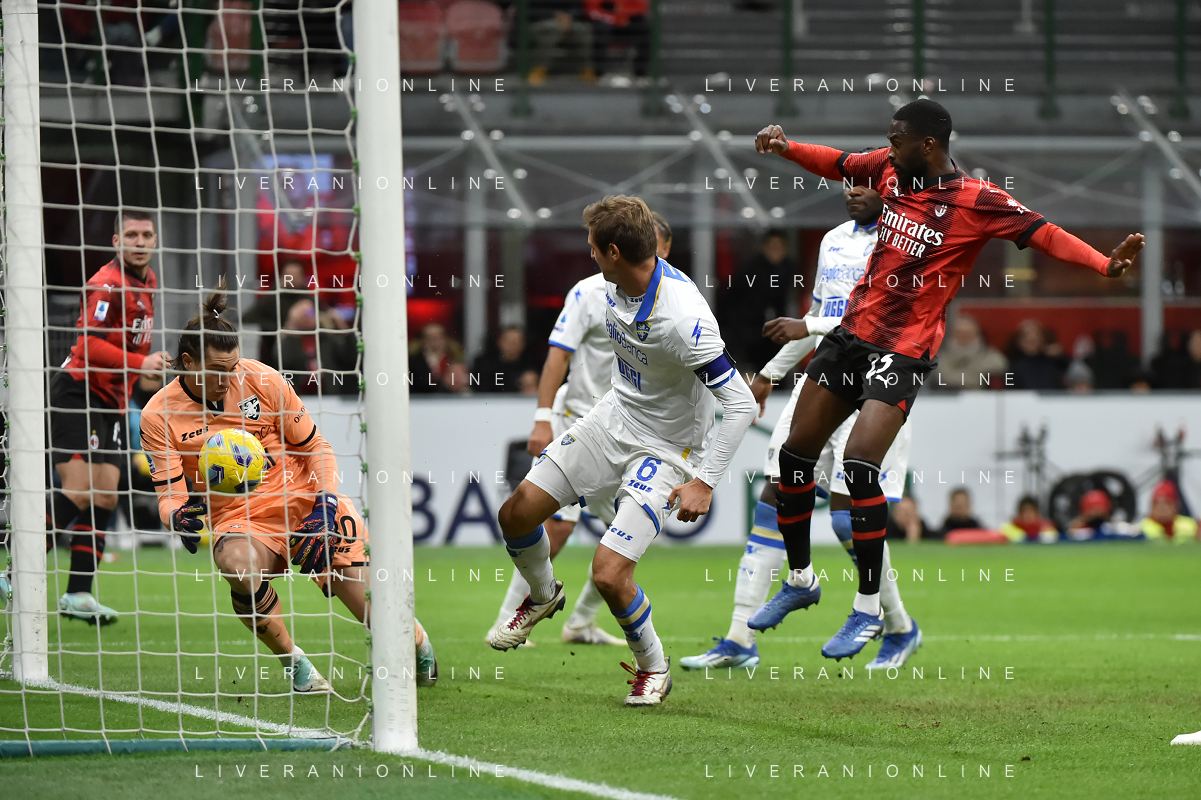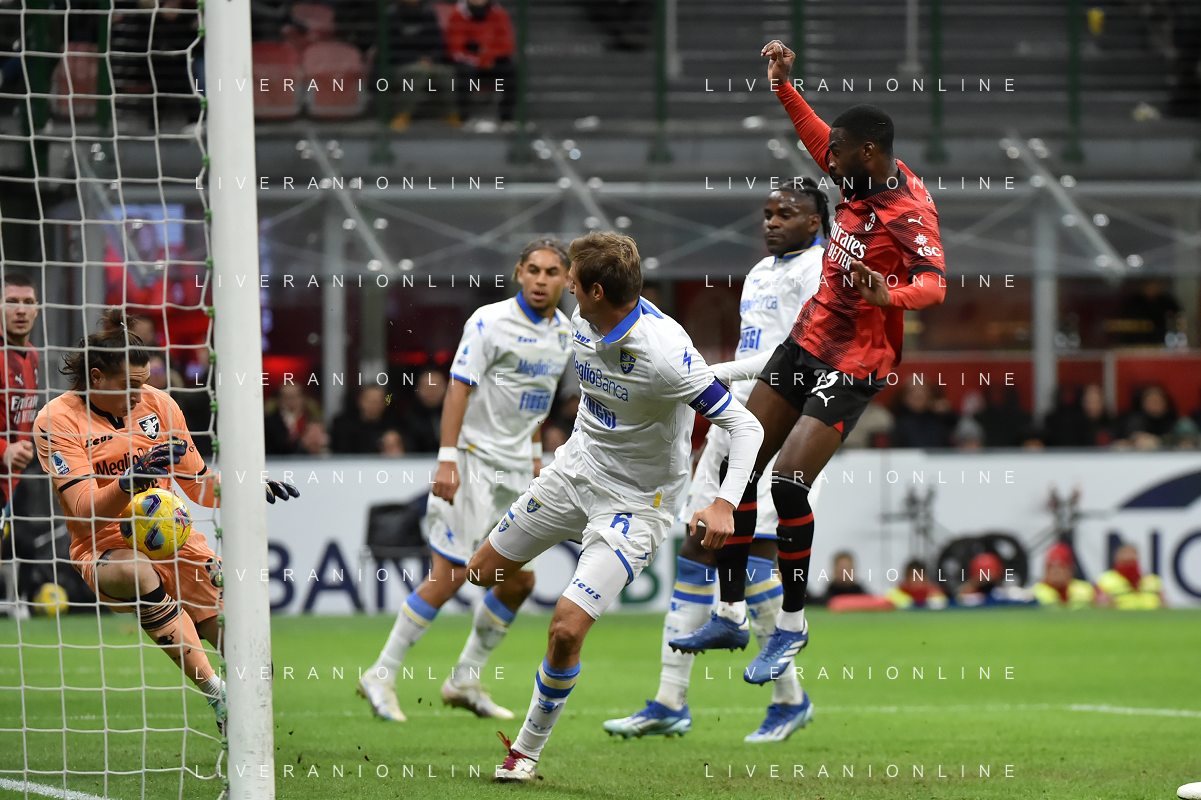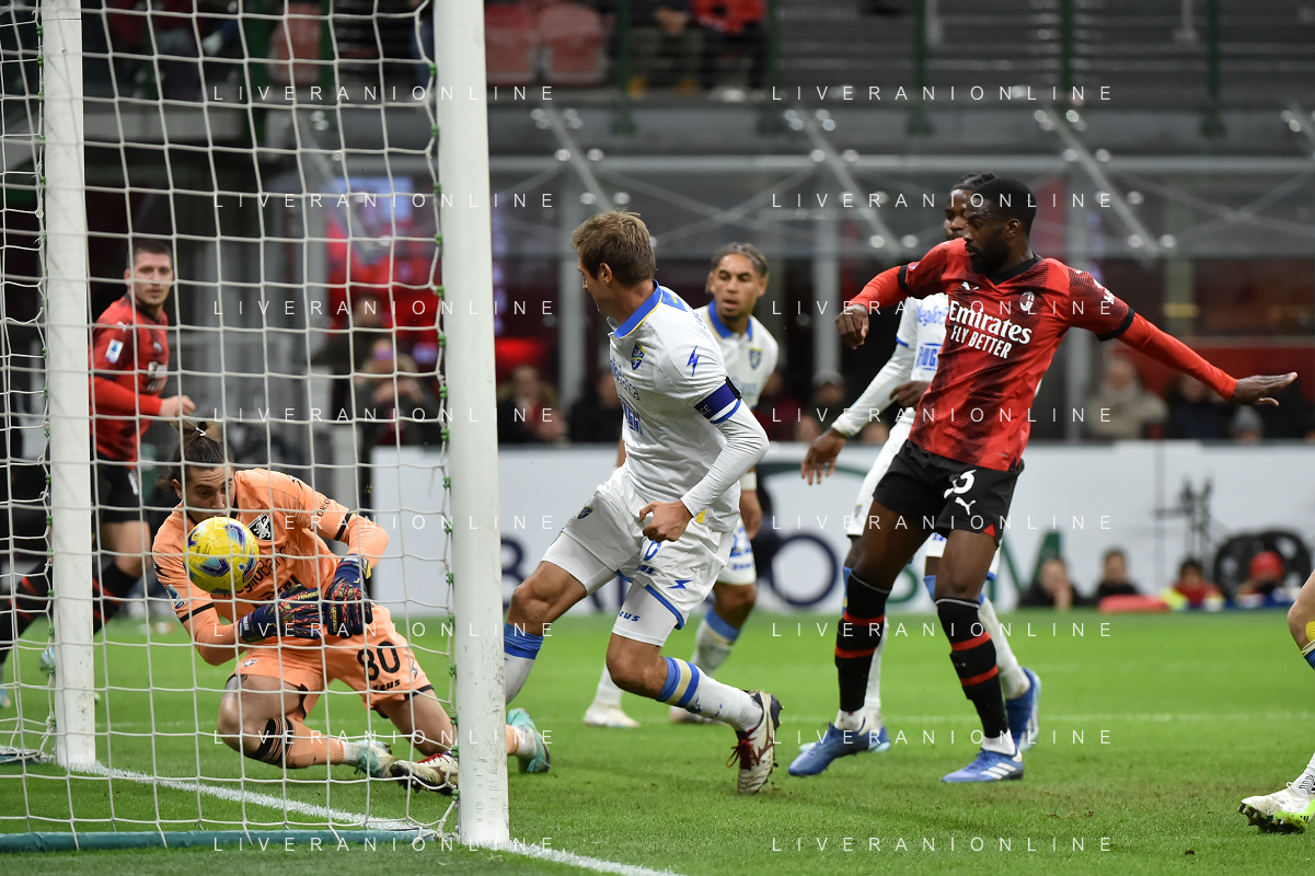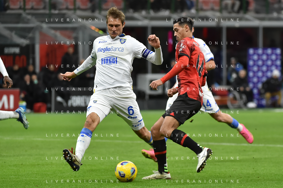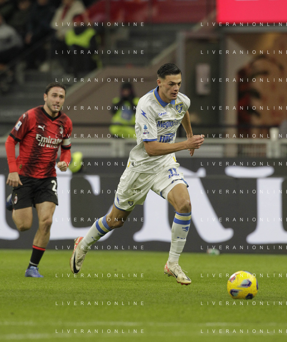 Milan vs Frosinone nella foto Simone Romagnoli (Frosinone) e Tijjani Reijnders (Milan) Milano 02-12-2023 Stadio Giuseppe Meazza - San Siro Campionato Serie A TIM - 14a giornata foto Roberto Garavaglia/ag. Aldo Liverani sas
