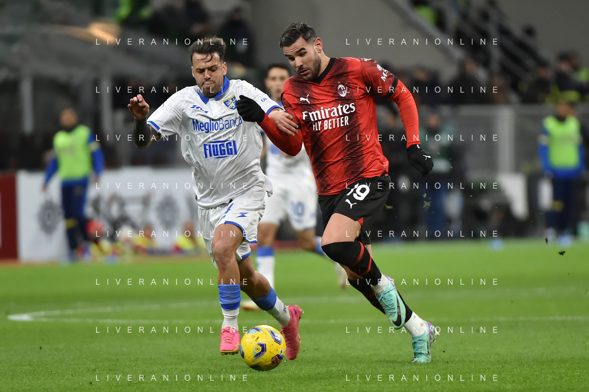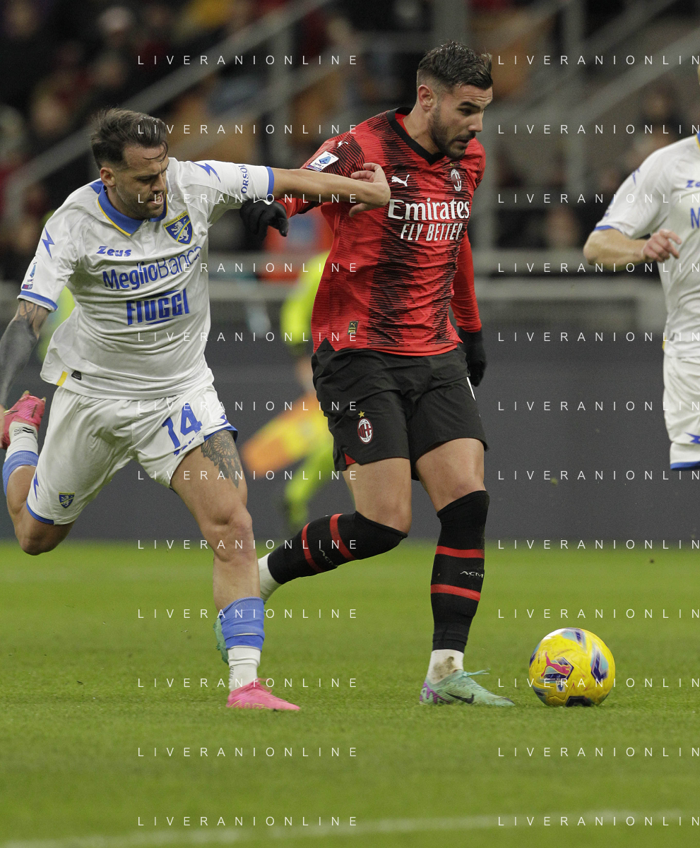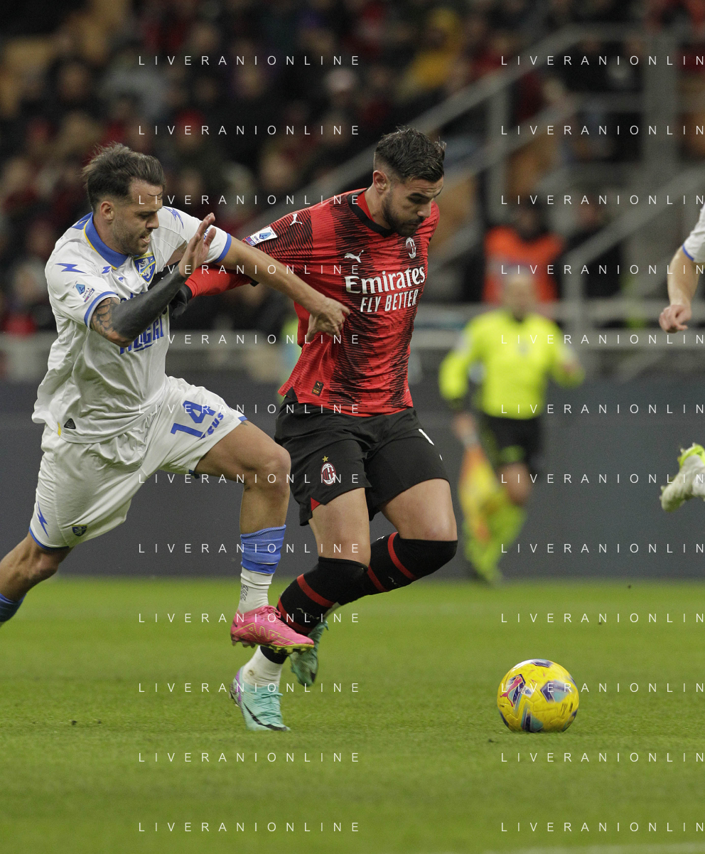 Milan vs Frosinone nella foto Francesco Gelli (Frosinone) e Theo Hernandez (Milan) Milano 02-12-2023 Stadio Giuseppe Meazza - San Siro Campionato Serie A TIM - 14a giornata foto Roberto Garavaglia/ag. Aldo Liverani sas