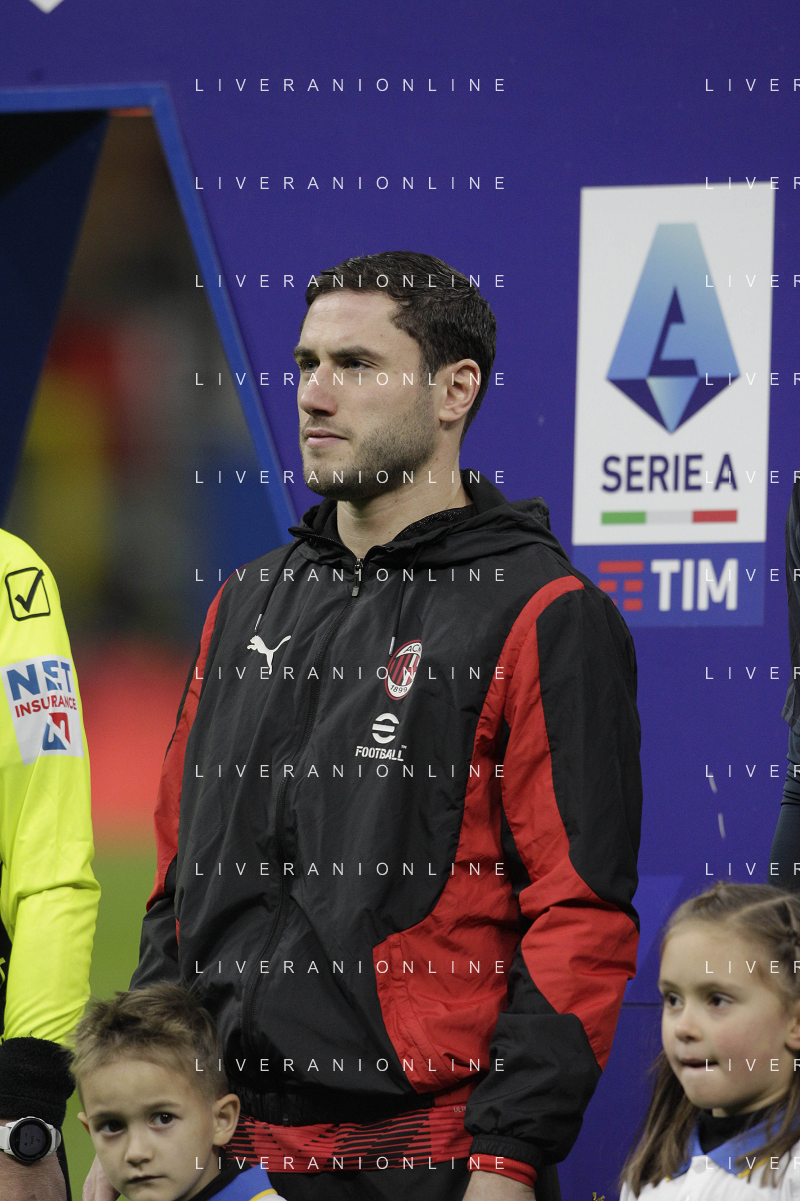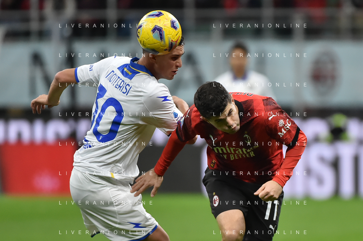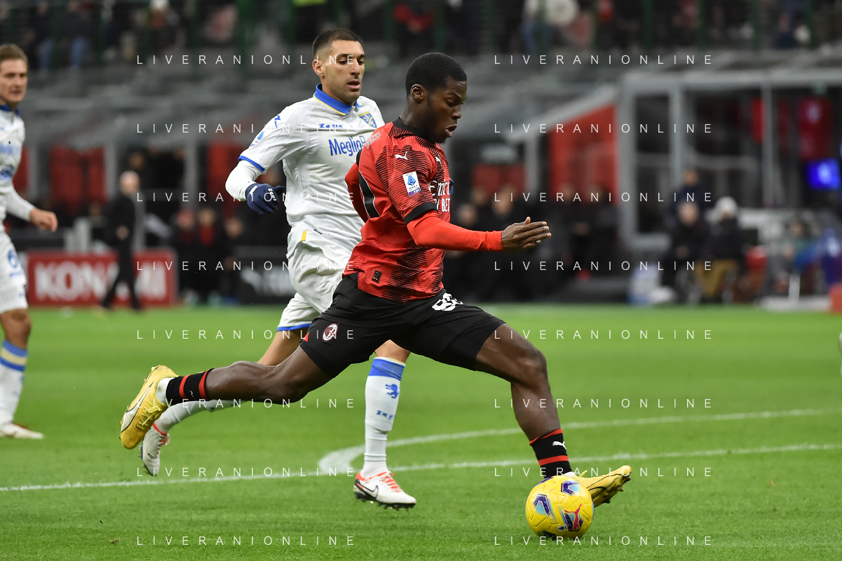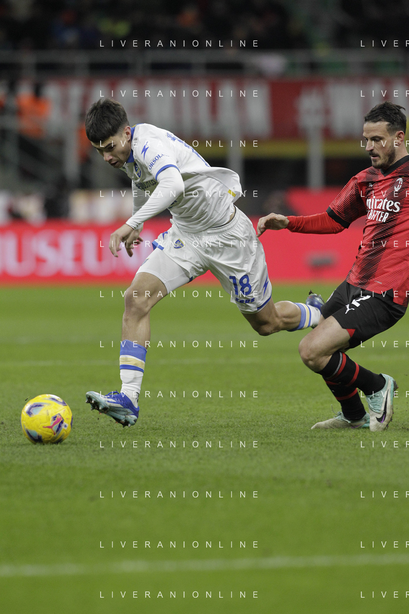 Milan vs Frosinone nella foto Francesco Gelli (Frosinone) e Theo Hernandez (Milan) Milano 02-12-2023 Stadio Giuseppe Meazza - San Siro Campionato Serie A TIM - 14a giornata foto Roberto Garavaglia/ag. Aldo Liverani sas