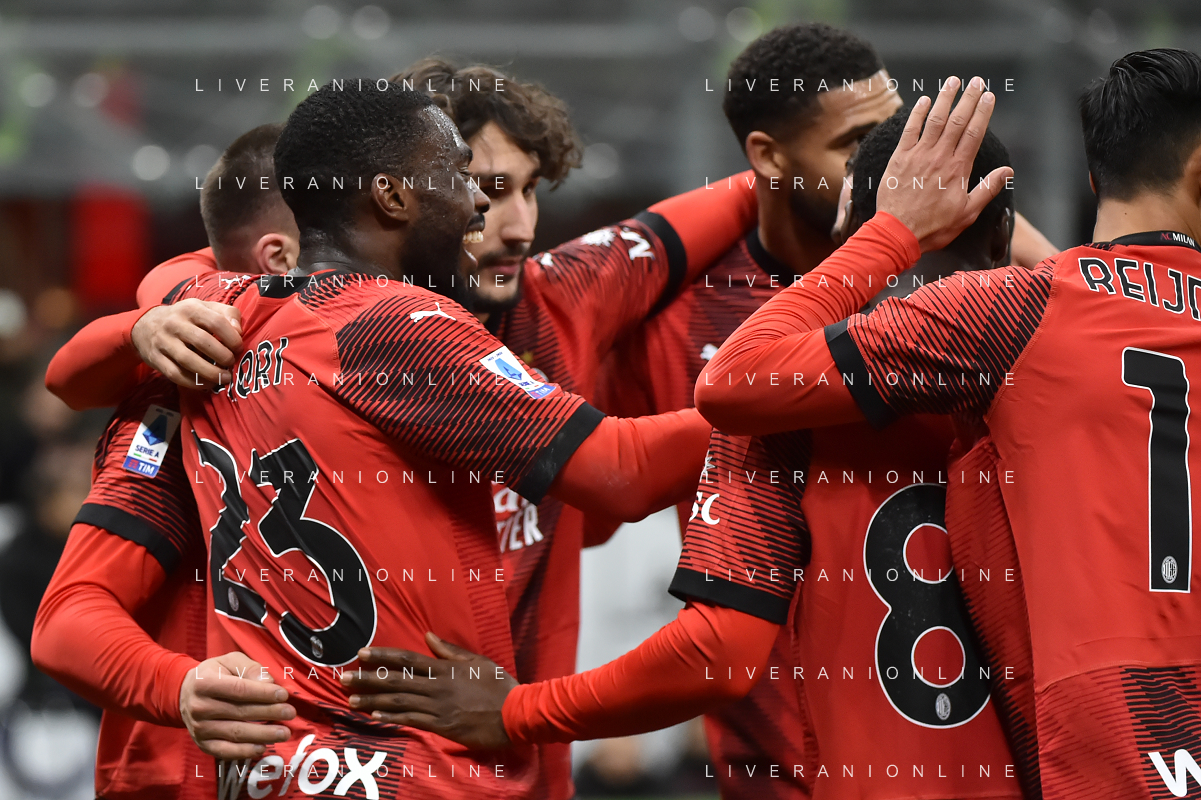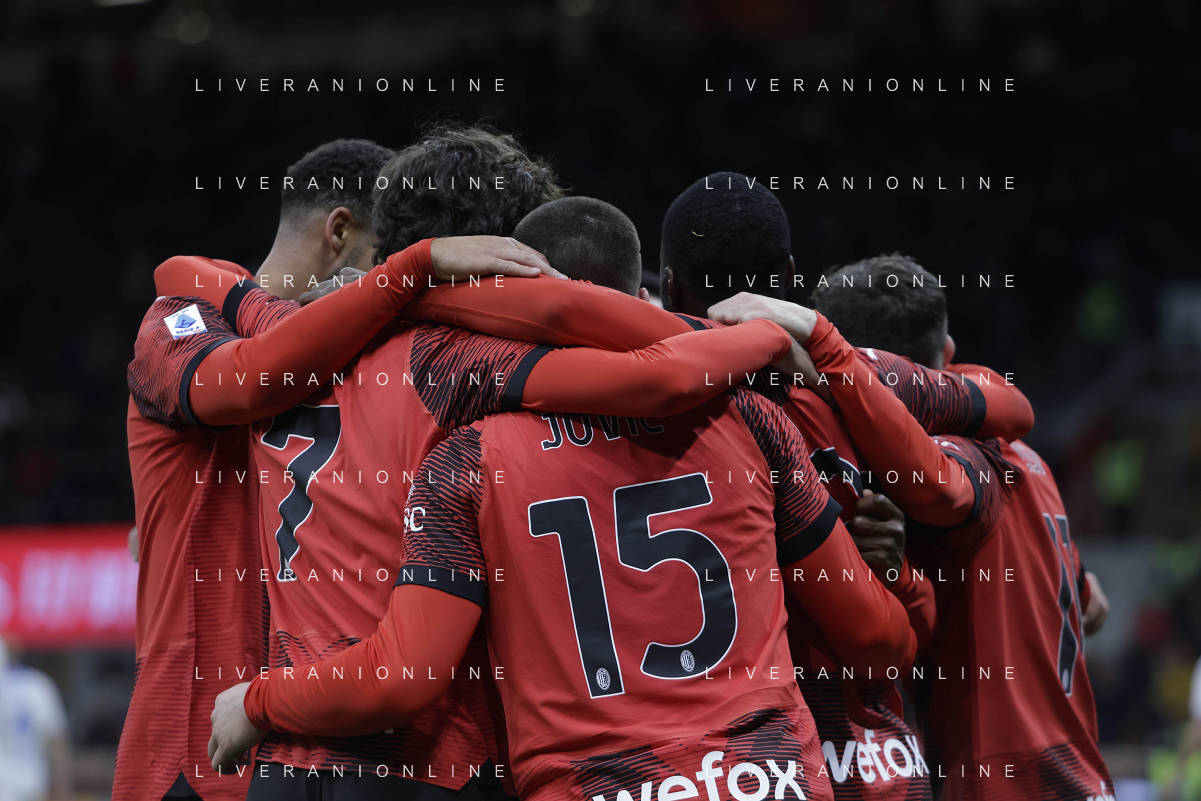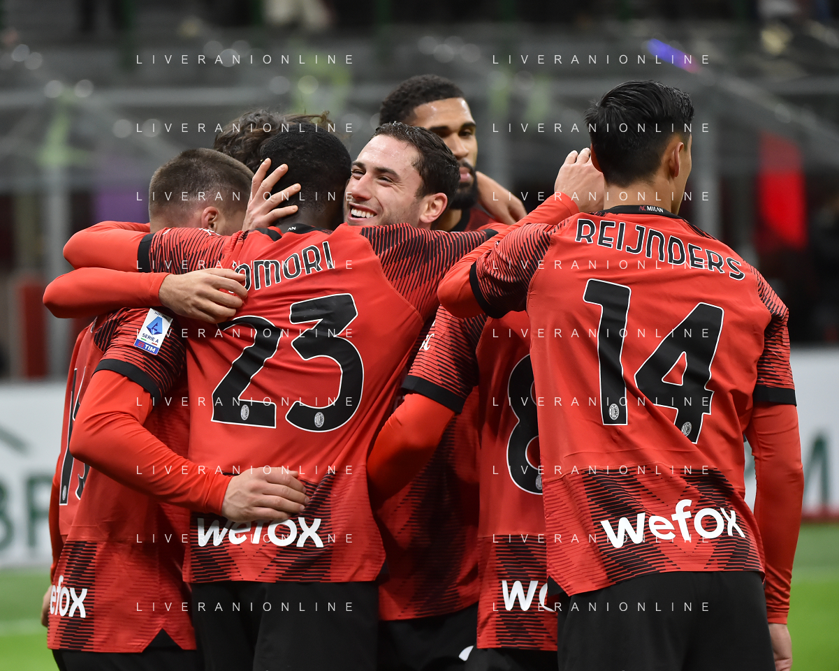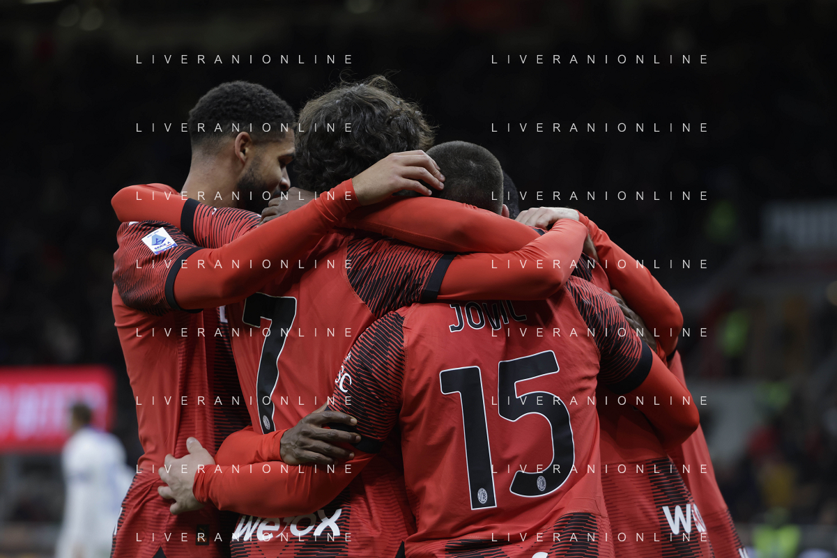 Milan vs Frosinone nella foto esultanza Milan dopo il gol del 3 a 0 Milano 02-12-2023 Stadio Giuseppe Meazza - San Siro Campionato Serie A TIM - 14a giornata foto Roberto Garavaglia/ag. Aldo Liverani sas