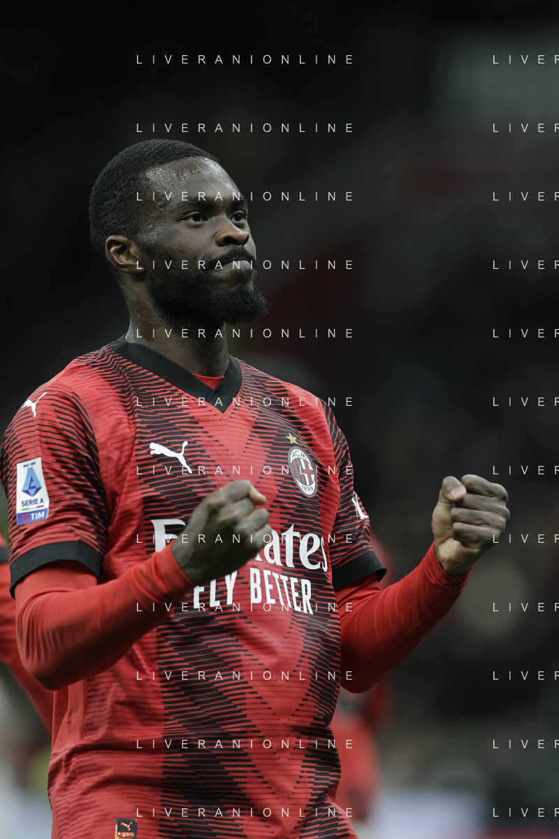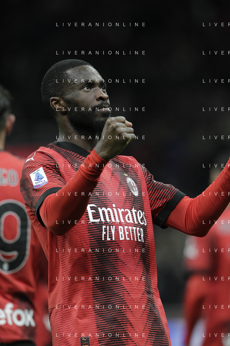 Milan vs Frosinone nella foto Fikayo Tomori (Milan) esulta dopo il gol del 3 a 0 Milano 02-12-2023 Stadio Giuseppe Meazza - San Siro Campionato Serie A TIM - 14a giornata foto Roberto Garavaglia/ag. Aldo Liverani sas