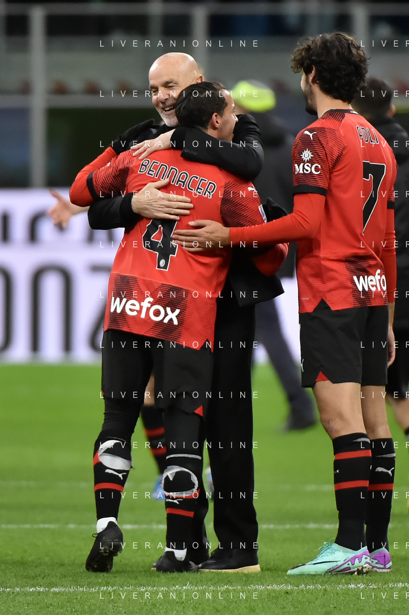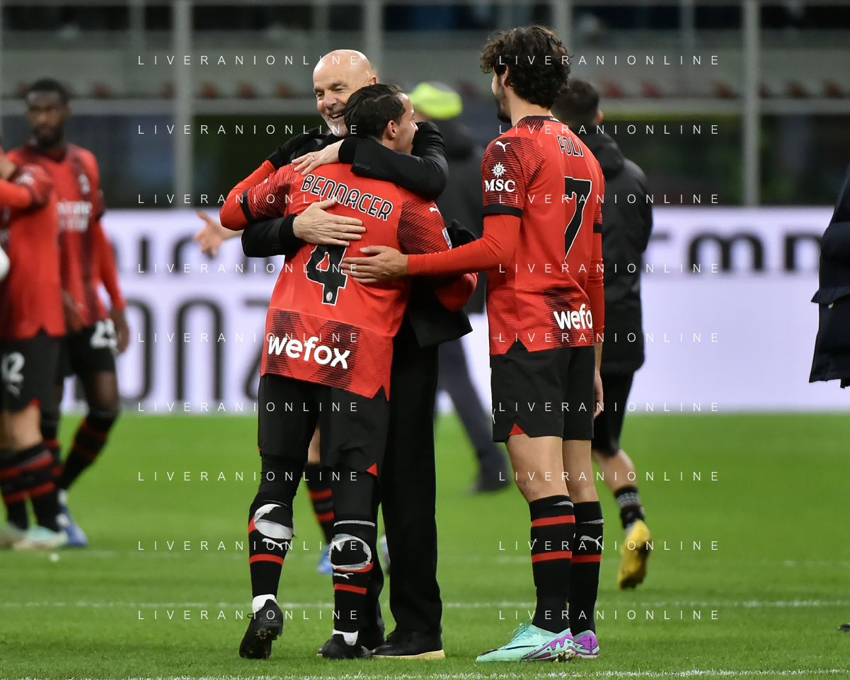 Milan vs Frosinone nella foto Ismael Bennacer (Milan) e Stefano Pioli allenatore Milan a fine gara Milano 02-12-2023 Stadio Giuseppe Meazza - San Siro Campionato Serie A TIM - 14a giornata foto Roberto Garavaglia/ag. Aldo Liverani sas