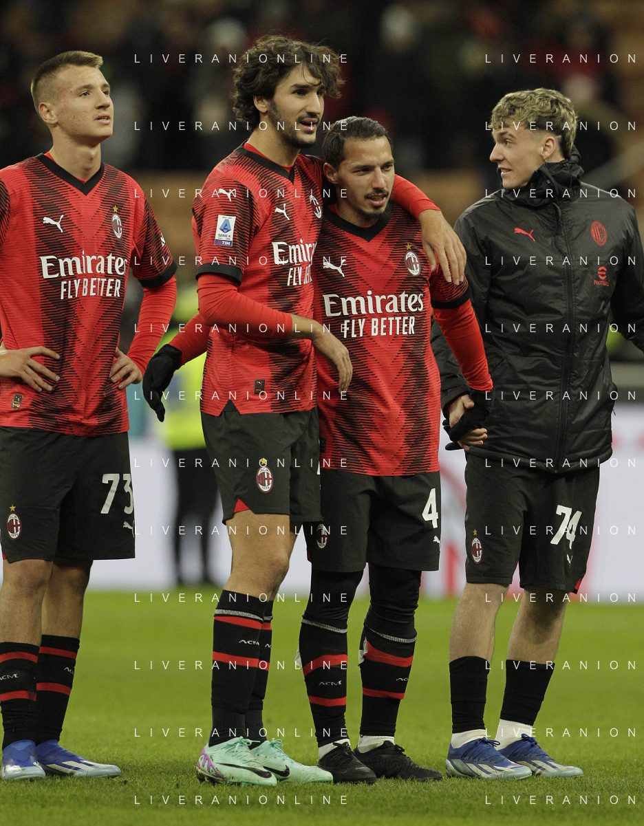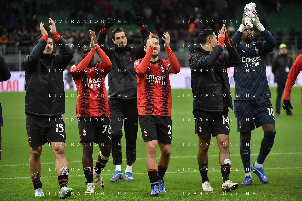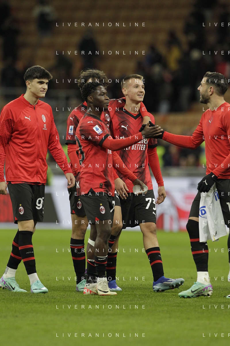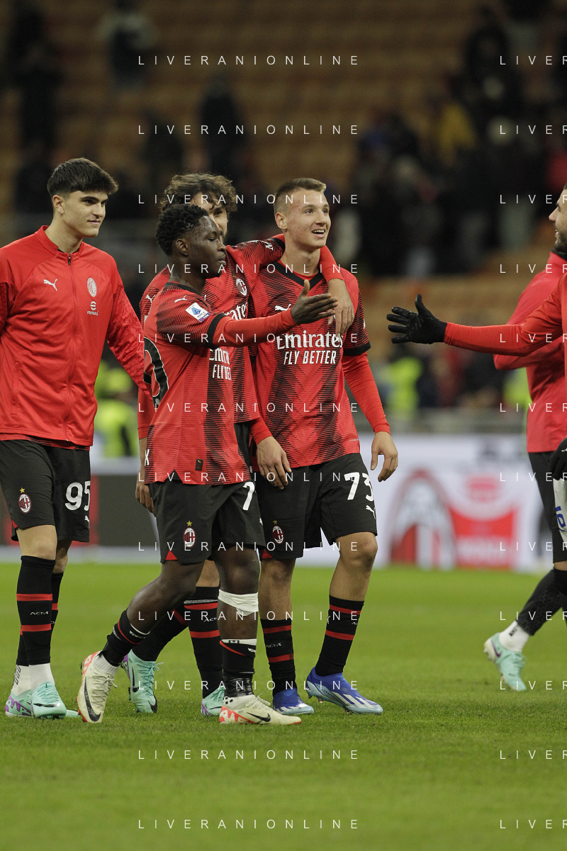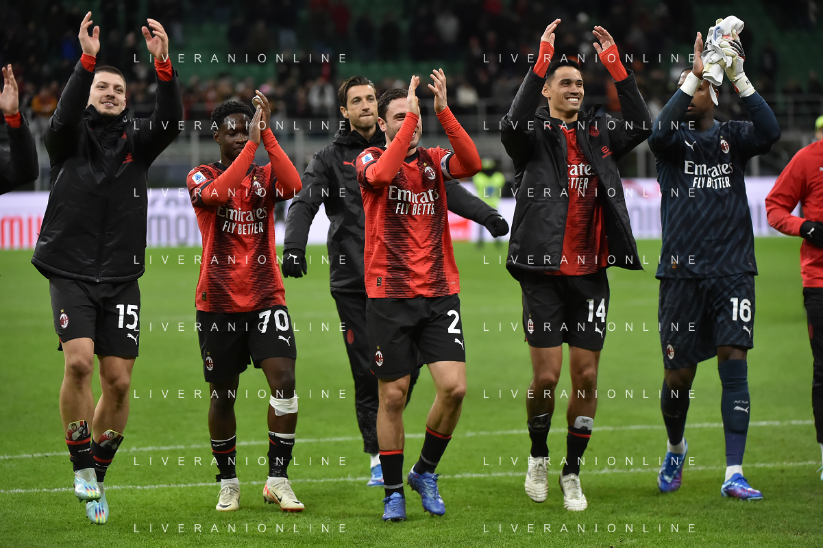 Milan vs Frosinone nella foto esultanza finale Milan Milano 02-12-2023 Stadio Giuseppe Meazza - San Siro Campionato Serie A TIM - 14a giornata foto Roberto Garavaglia/ag. Aldo Liverani sas