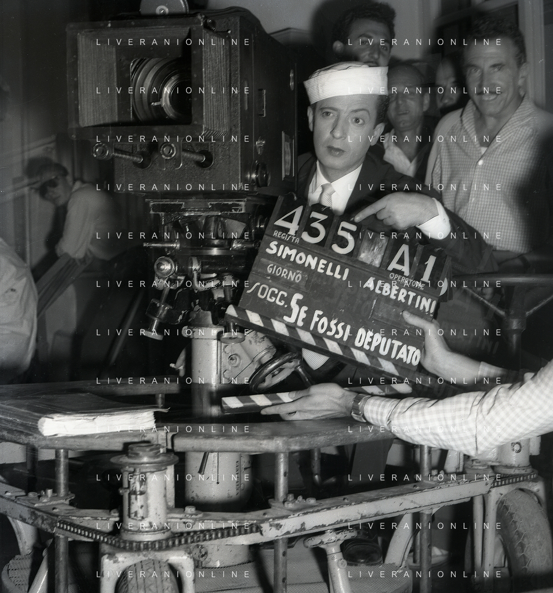 NEG-RETROSPETTIVA NINO TARANTO ATTORE NELLA FOTO NINO TARANTO NELL'ANNO 1950-1955 SUL SET DEL FILM SE FOSSI DEPUTATO FOTO SANDRO VESPASIANI-AG ALDO LIVERANI SAS