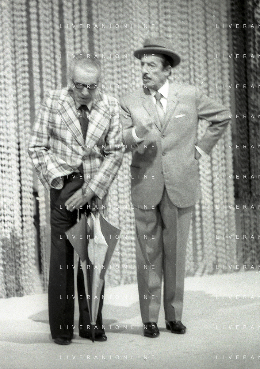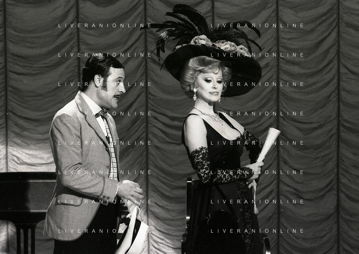 NEG-RETROSPETTIVA NINO TARANTO ATTORE NELLA FOTO NINO TARANTO NELL'ANNO 1976 CON MIRANDA MARTINO NELLA COMMEDIA TEATRALE “TARANTELLA“ AG ALDO LIVERANI SAS