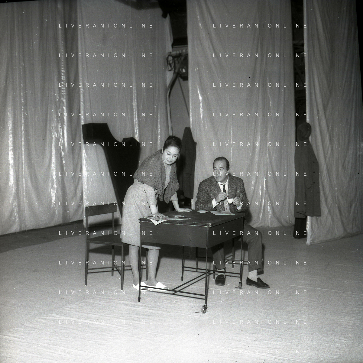 NEG-RETROSPETTIVA LEA PADOVANI ATTRICE NELLA FOTO LEA PADOVANI A MILANO IL GIORNO 12-01-1964 A TEATRO CON D'ORSI UMBERTO E LEO GARRANI A MILANO DOPO LA SUA ASSENZA PER SETTE ANNI DAL PALCOSCENICO AG ALDO LIVERANI SAS