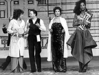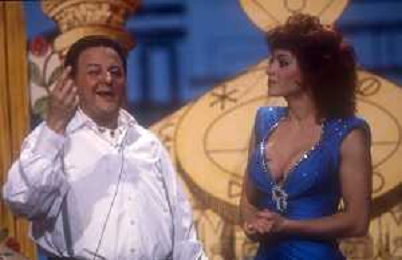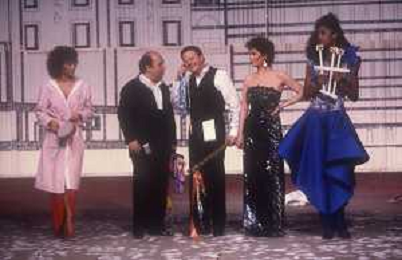DIAP-RETROSPETTIVA MASSIMO BOLDI ATTORE NELLA FOTO MASSIMO BOLDI NELL'ANNO 1985 NELLA TRASMISSIONE TELEVISIVA “RISATISSIMA“CON CARMEN RUSSO-EDWIGE FENECH-LINO BANFI E ------- AG ALDO LIVERANI SAS