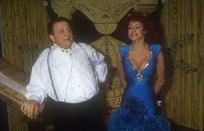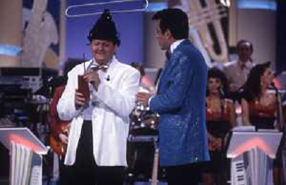 DIAP-RETROSPETTIVA MASSIMO BOLDI ATTORE NELLA FOTO MASSIMO BOLDI NELL'ANNO 1985 NELLA TRASMISSIONE TELEVISIVA “RISATISSIMA“CON LINO BANFI-EDWIGE FENECH ------- AG ALDO LIVERANI SAS