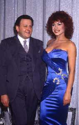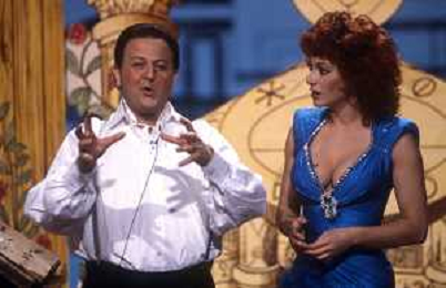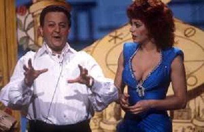 NEG-RETROSPETTIVA MASSIMO BOLDI ATTORE NELLA FOTO MASSIMO BOLDI NELL'ANNO 1985 NELLA TRASMISSIONE TELEVISIVA “RISATISSIMA“ CON CARMEN RUSSO E EDWIGE FENECH AG ALDO LIVERANI SAS