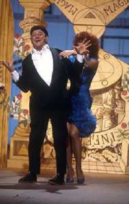 NEG-RETROSPETTIVA MASSIMO BOLDI ATTORE NELLA FOTO MASSIMO BOLDI NELL'ANNO 1985 NELLA TRASMISSIONE TELEVISIVA “RISATISSIMA“ CON CARMEN RUSSO AG ALDO LIVERANI SAS