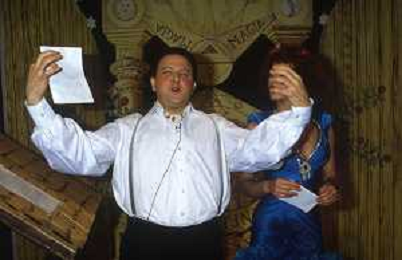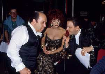 DIAP-RETROSPETTIVA MASSIMO BOLDI ATTORE NELLA FOTO MASSIMO BOLDI NELL'ANNO 1985 NELLA TRASMISSIONE TELEVISIVA “RISATISSIMA“ CON CARMEN RUSSO E LINO BANFI AG ALDO LIVERANI SAS