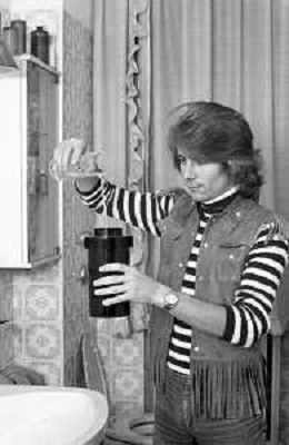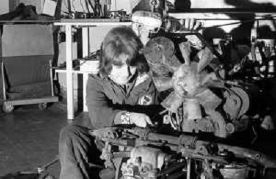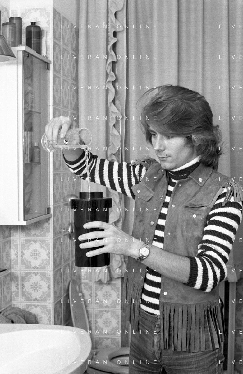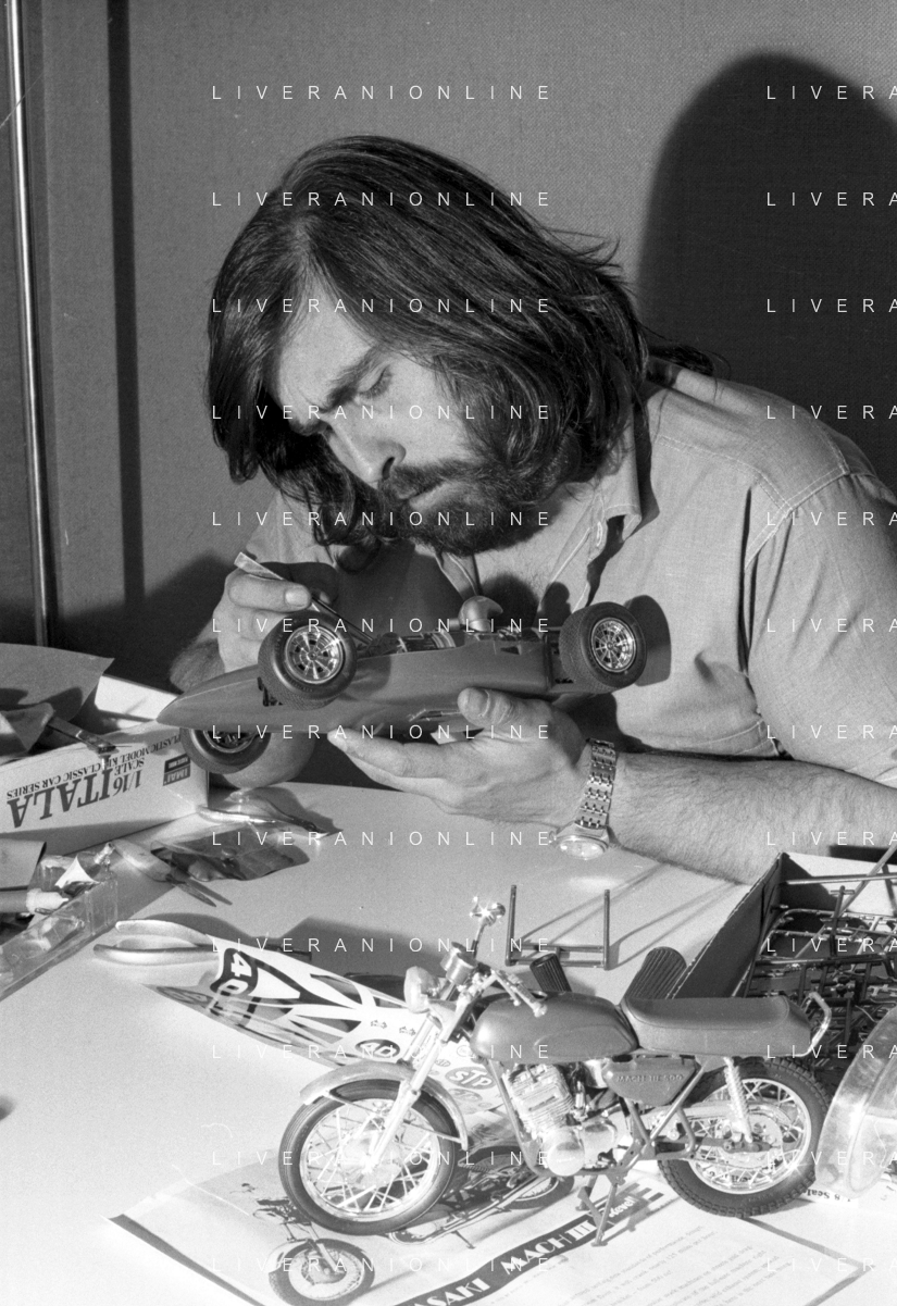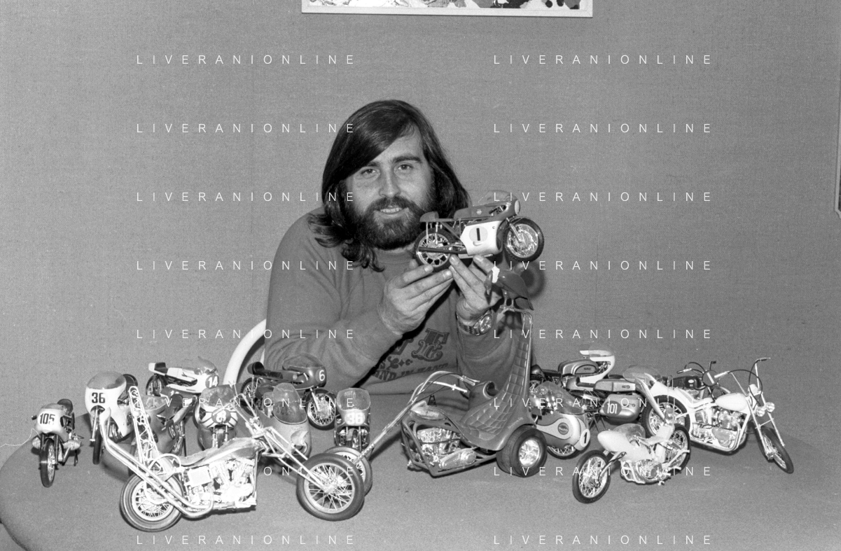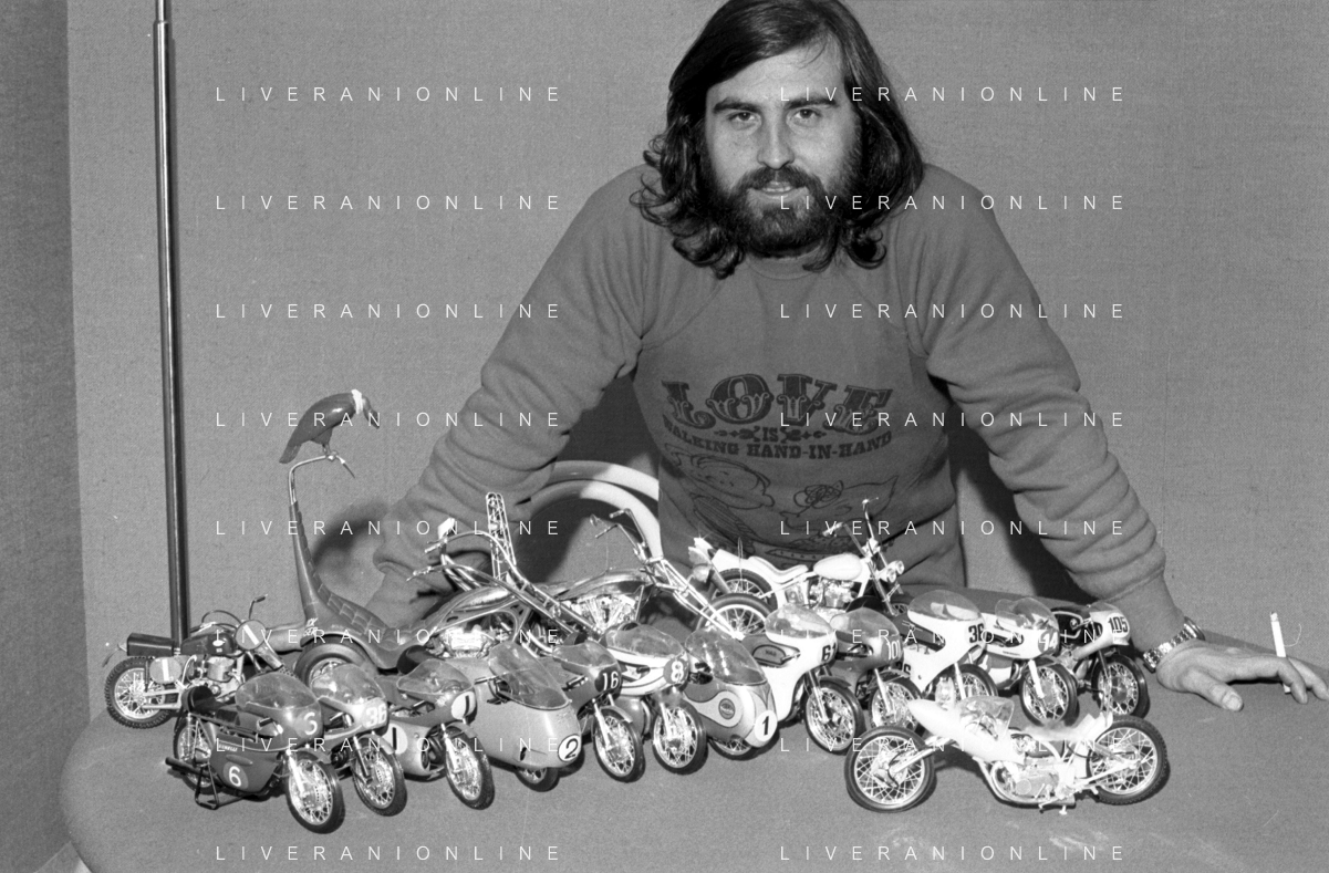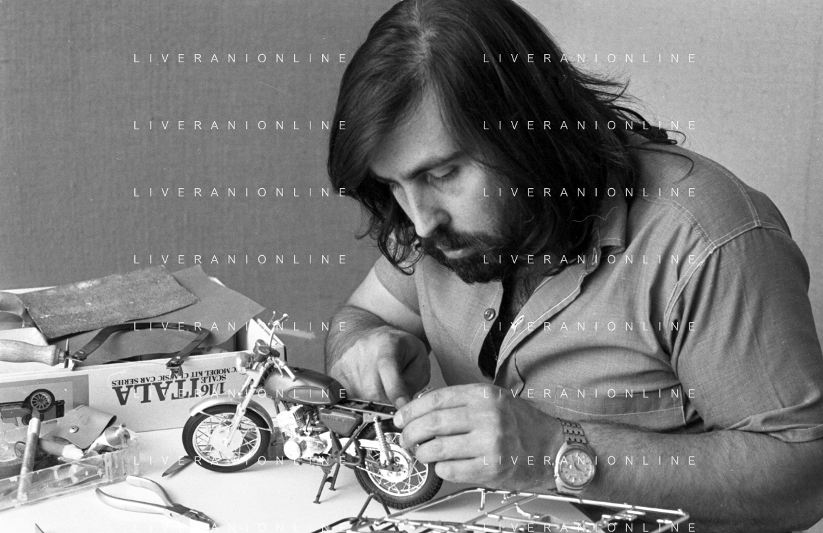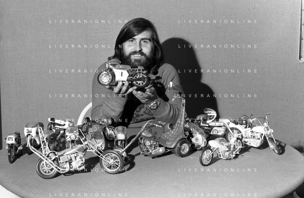 Neg- RETROSPETTIVA GRUPPO MUSICALE "I CAMALEONTI" NEL 1972 NELLA FOTO PAOLO DE CEGLIE (Batteria) NEL SUO MESTIERE DI "COLLEZIONISTA DI MODELLINI DI MOTO - MODELLISMO" AG. ALDO LIVERANI SAS