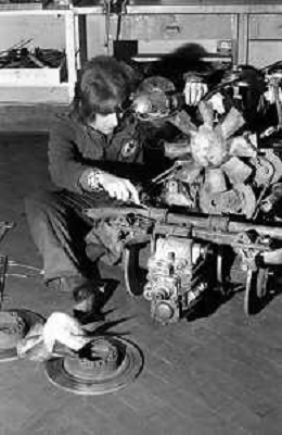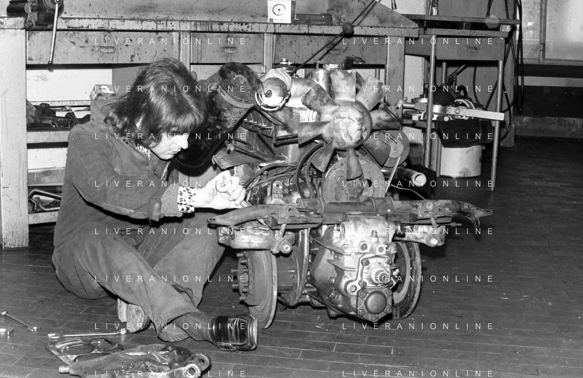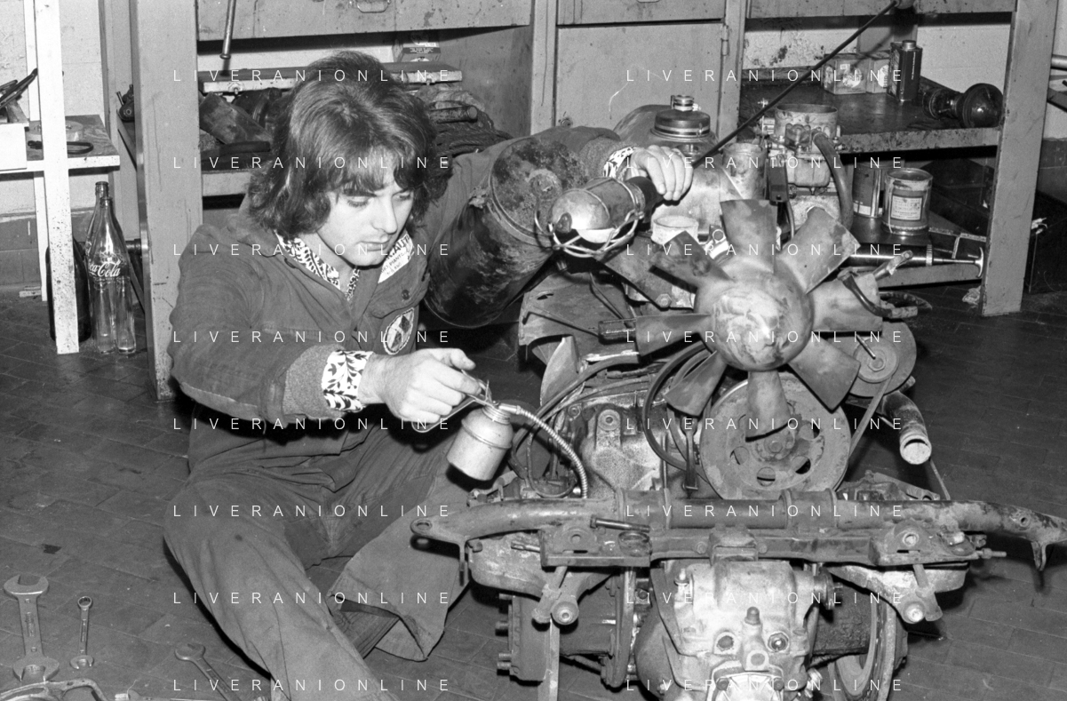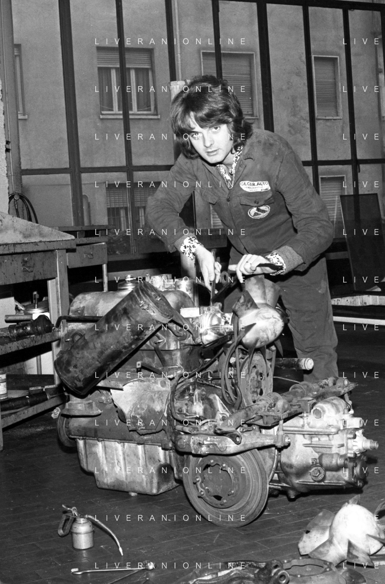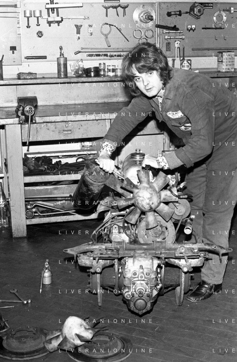 Neg- RETROSPETTIVA GRUPPO MUSICALE "I CAMALEONTI" NEL 1972 NELLA FOTO ANTONIO CRIPEZZI (Voce e Piano) NEL SUO MESTIERE DI "MECCANICO" AG. ALDO LIVERANI SAS