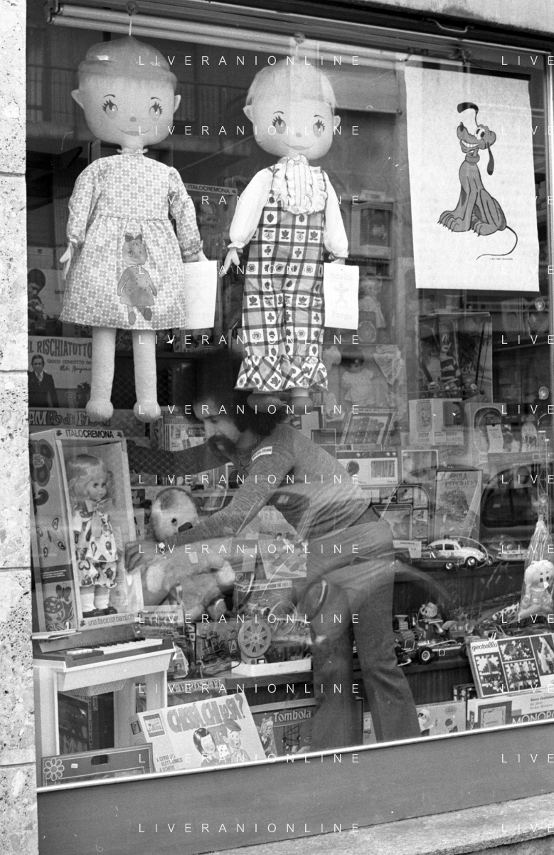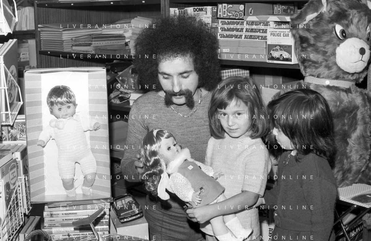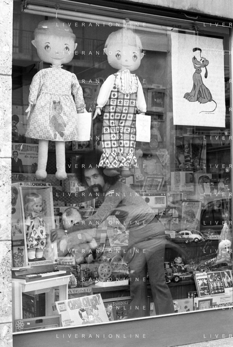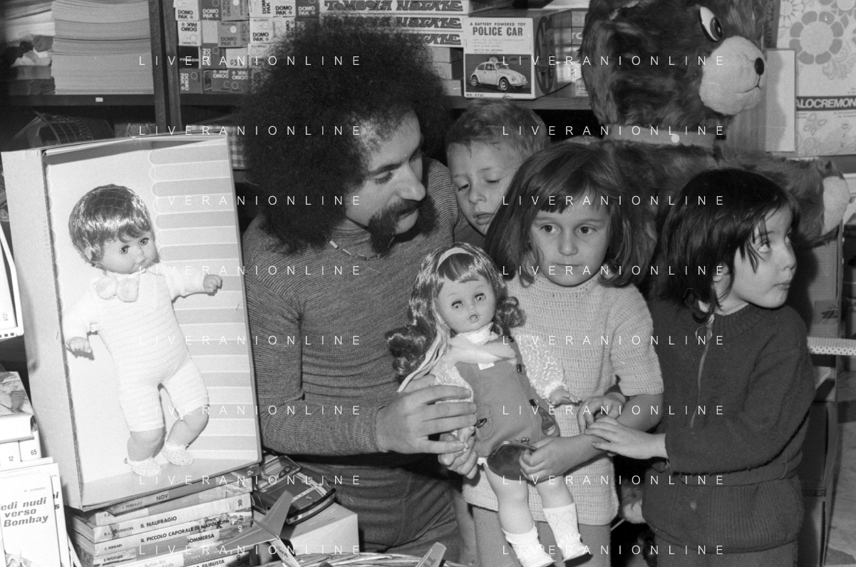 Neg- RETROSPETTIVA GRUPPO MUSICALE "I CAMALEONTI" NEL 1972 NELLA FOTO LIVIO MACCHIA, (Basso e Voce) NEL SUO MESTIERE DI "VENDITORE DI GIOCATTOLI" AG. ALDO LIVERANI SAS