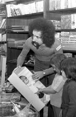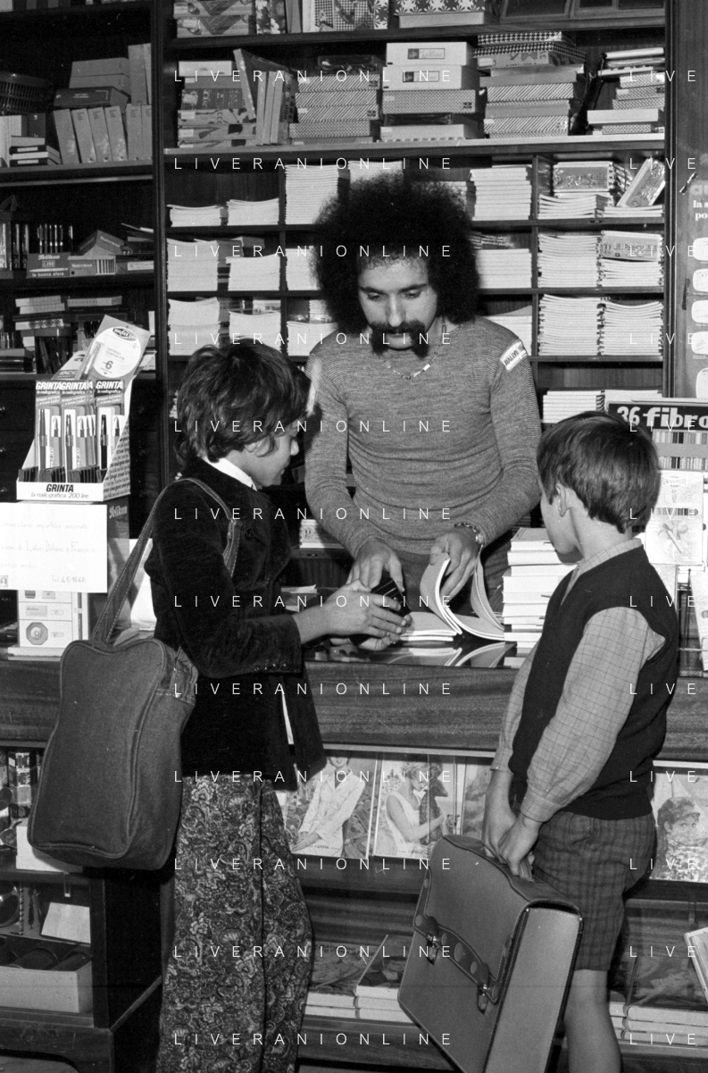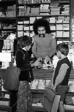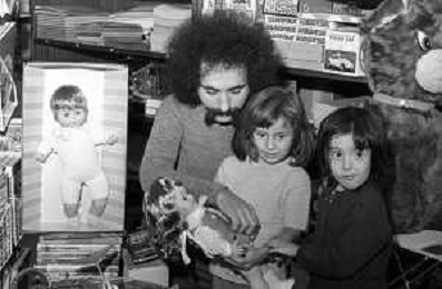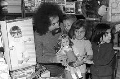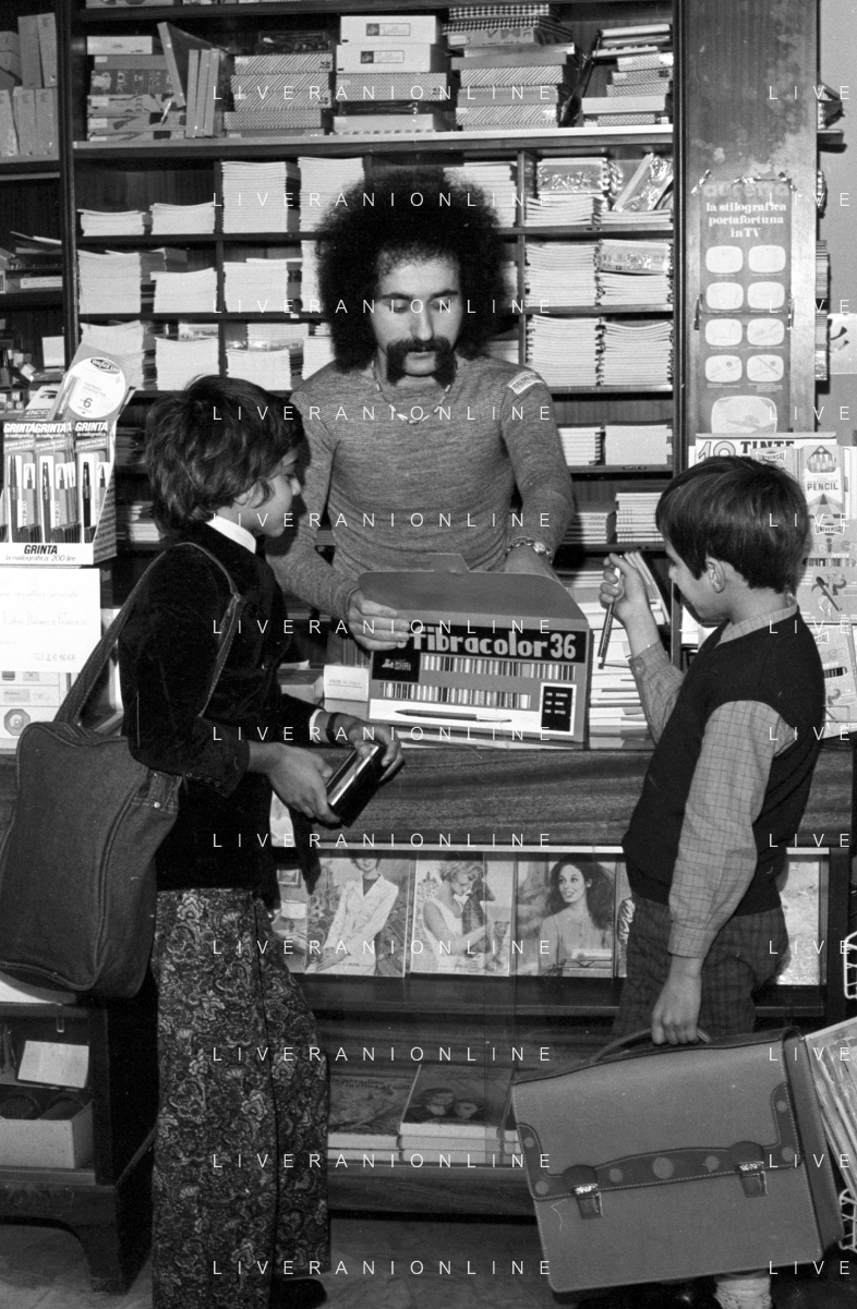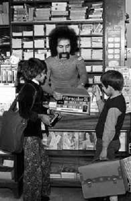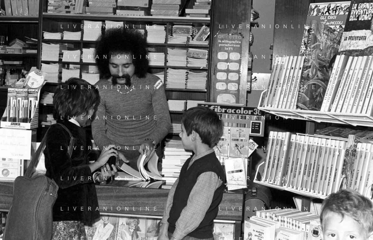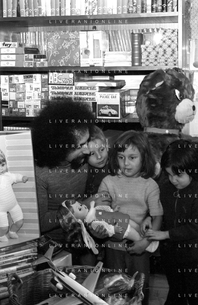 Neg- RETROSPETTIVA GRUPPO MUSICALE "I CAMALEONTI" NEL 1972 NELLA FOTO LIVIO MACCHIA, (Basso e Voce) NEL SUO MESTIERE DI "VENDITORE DI GIOCATTOLI" AG. ALDO LIVERANI SAS