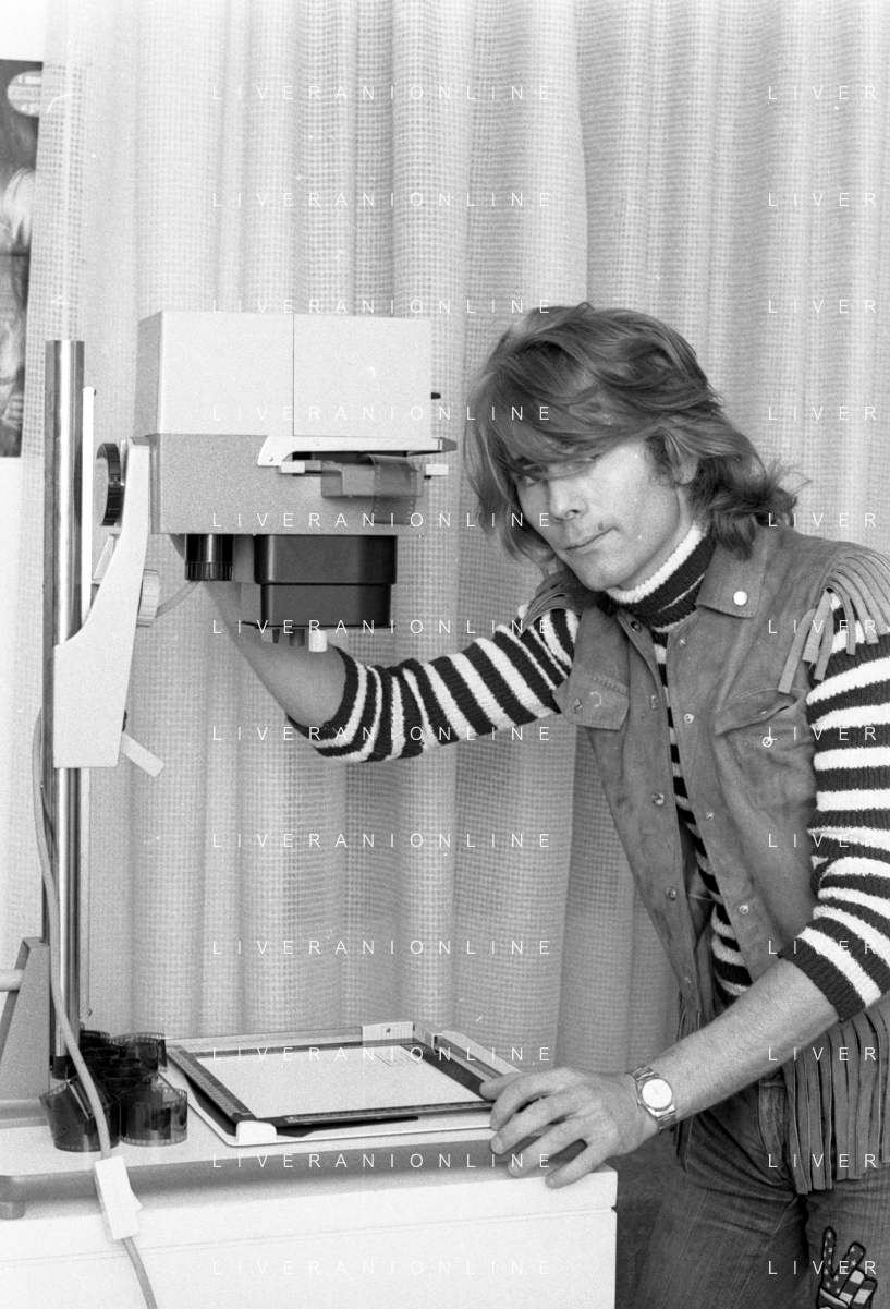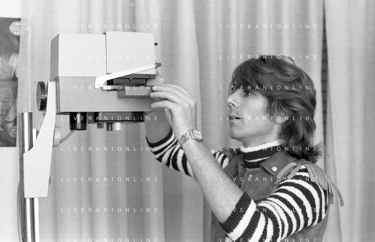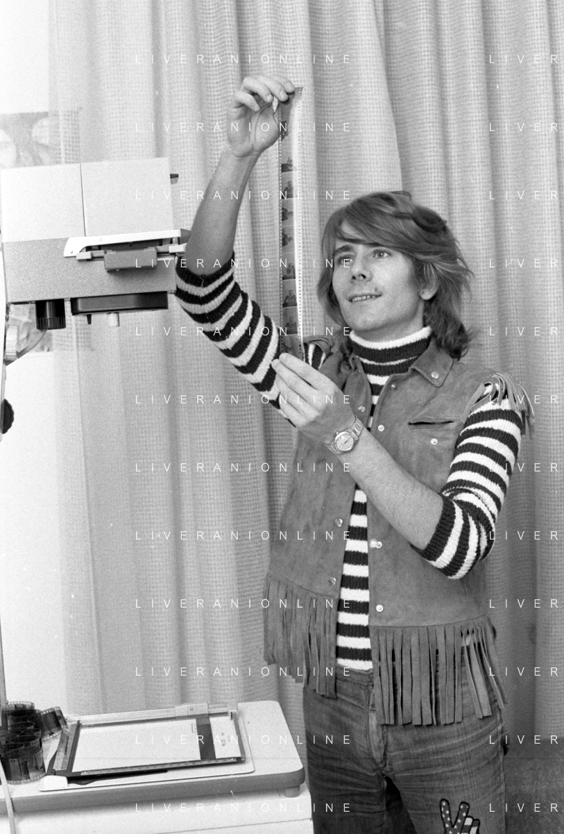 Neg- RETROSPETTIVA GRUPPO MUSICALE "I CAMALEONTI" NEL 1972 NELLA FOTO GERARDO 'GERRY' MANZOLI, (Basso) NEL SUO MESTIERE DI "FOTOGRAFO" AG. ALDO LIVERANI SAS