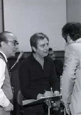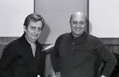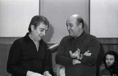 NEG-RETROSPETTIVA ENRICO SIMONETTI DIRETTORE D'ORCHESTRA-ATTORE-PIANISTA E COMPOSITORE NELLA FOTO ENRICO SIMONETTI A SANREMO NELL'ANNO 1975 CON GIANNI RAVERA AG ALDO LIVERANI SAS