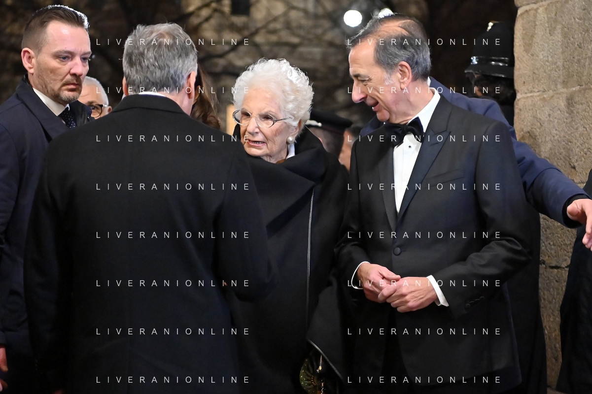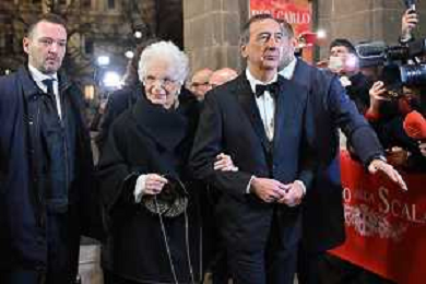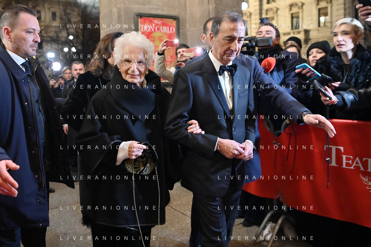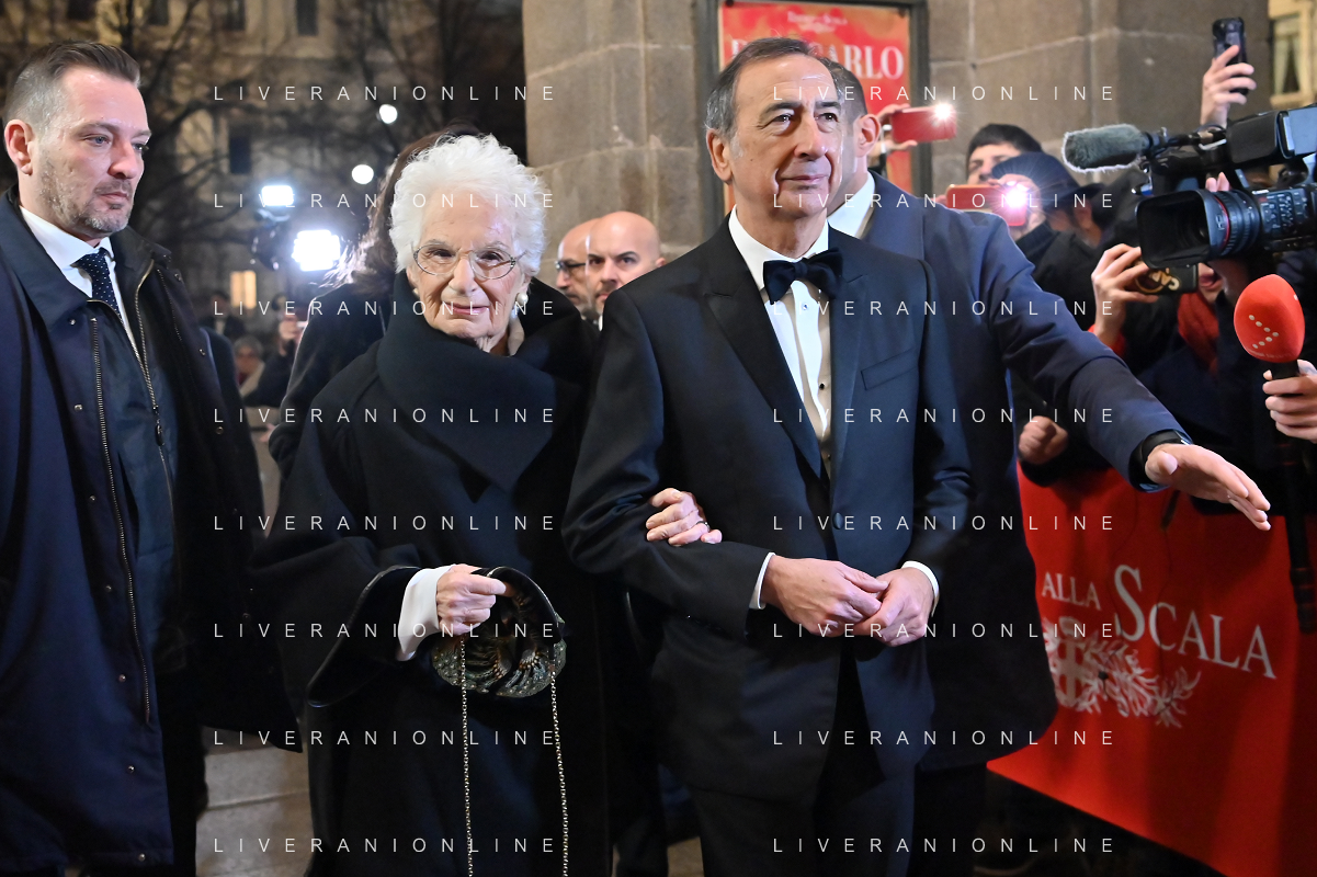 TVRG Prima alla Scala nella foto Liliana Segre con Giuseppe Sala sindaco di Milano Milano 07-12-2023 Arrivo delle personalita' per assistere alla prima del Teatro alla Scala foto Roberto Garavaglia/ag. Aldo Liverani sas