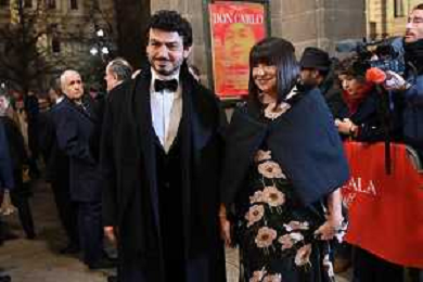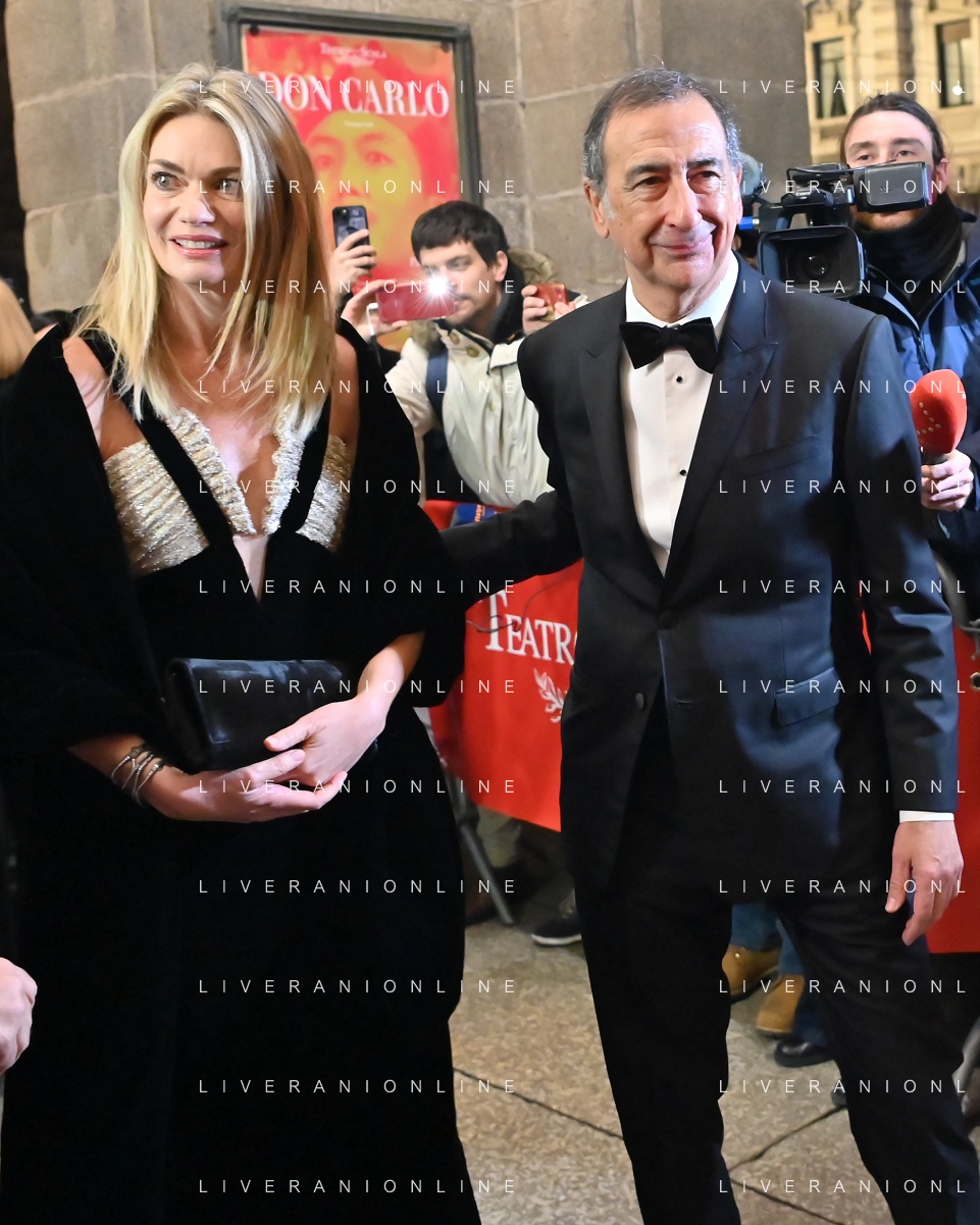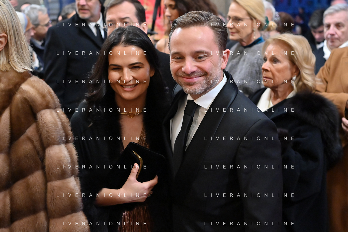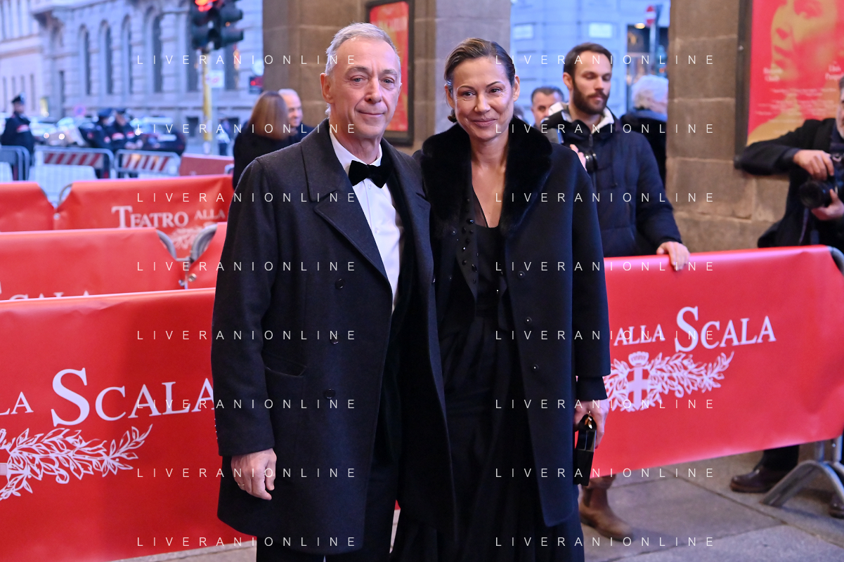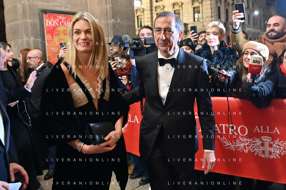 TVRG Prima alla Scala nella foto Giuseppe Sala sindaco di Milano con la compagna Chiara Bazoli Milano 07-12-2023 Arrivo delle personalita' per assistere alla prima del Teatro alla Scala foto Roberto Garavaglia/ag. Aldo Liverani sas