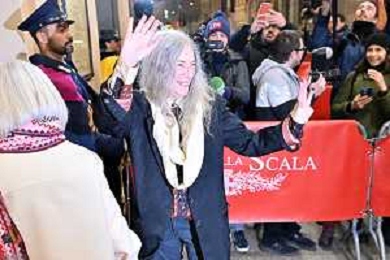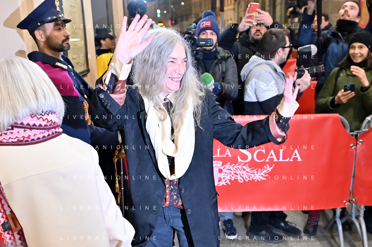 TVRG Prima alla Scala nella foto Patti Smith Milano 07-12-2023 Arrivo delle personalita' per assistere alla prima del Teatro alla Scala foto Roberto Garavaglia/ag. Aldo Liverani sas