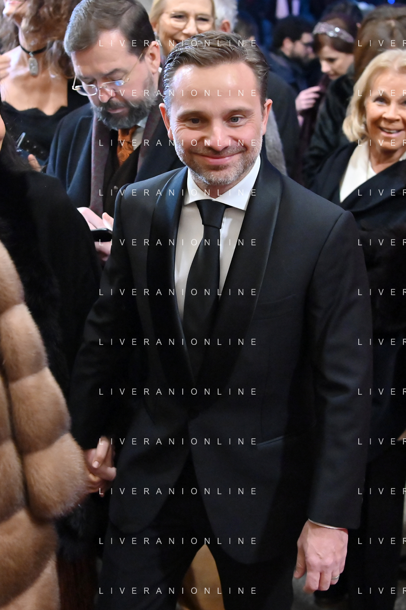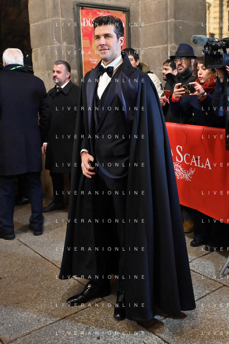 TVRG Prima alla Scala nella foto Tommaso Sacchi Milano 07-12-2023 Arrivo delle personalita' per assistere alla prima del Teatro alla Scala foto Roberto Garavaglia/ag. Aldo Liverani sas