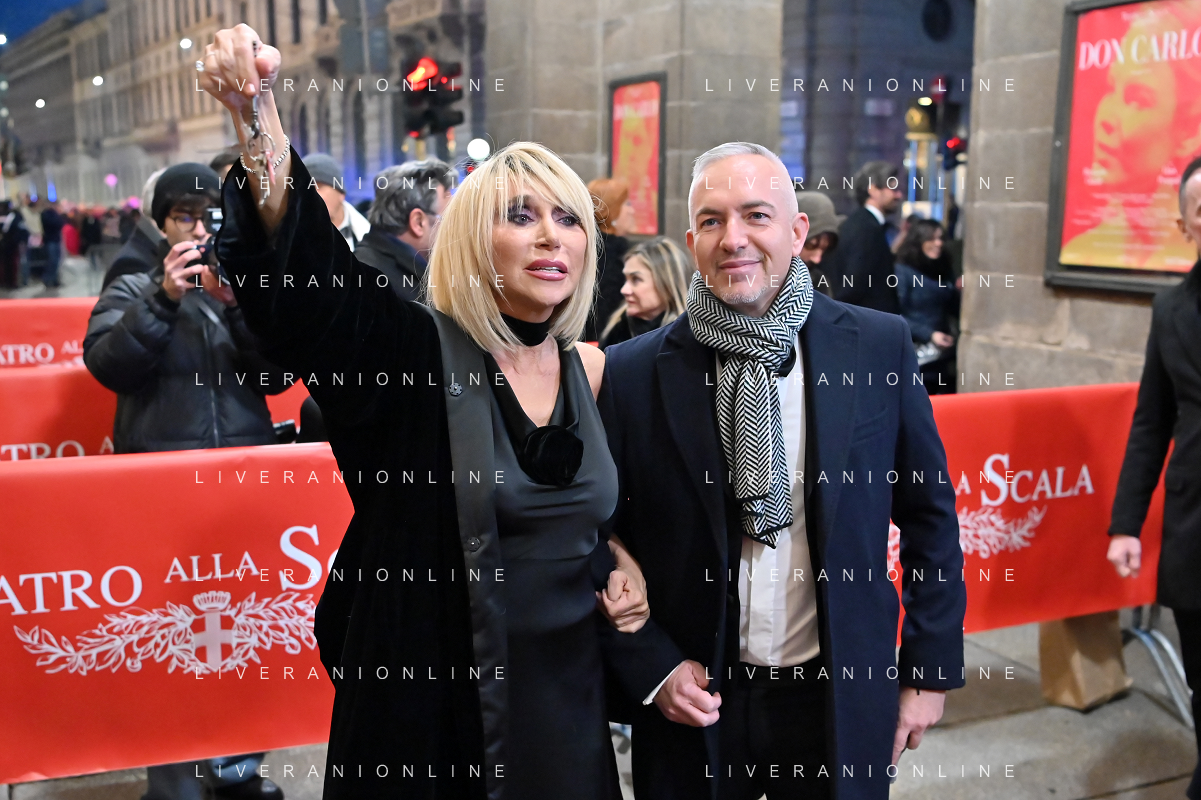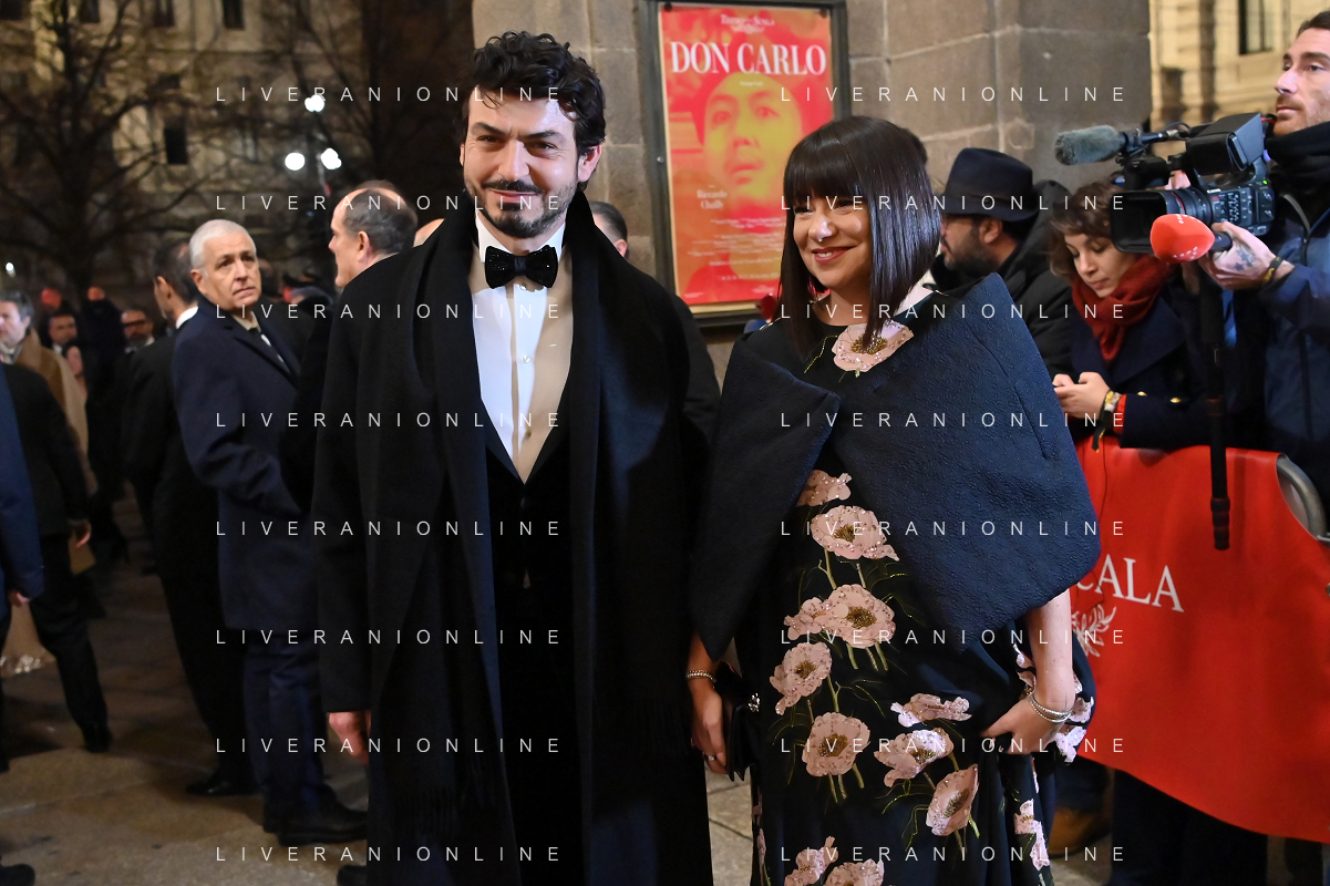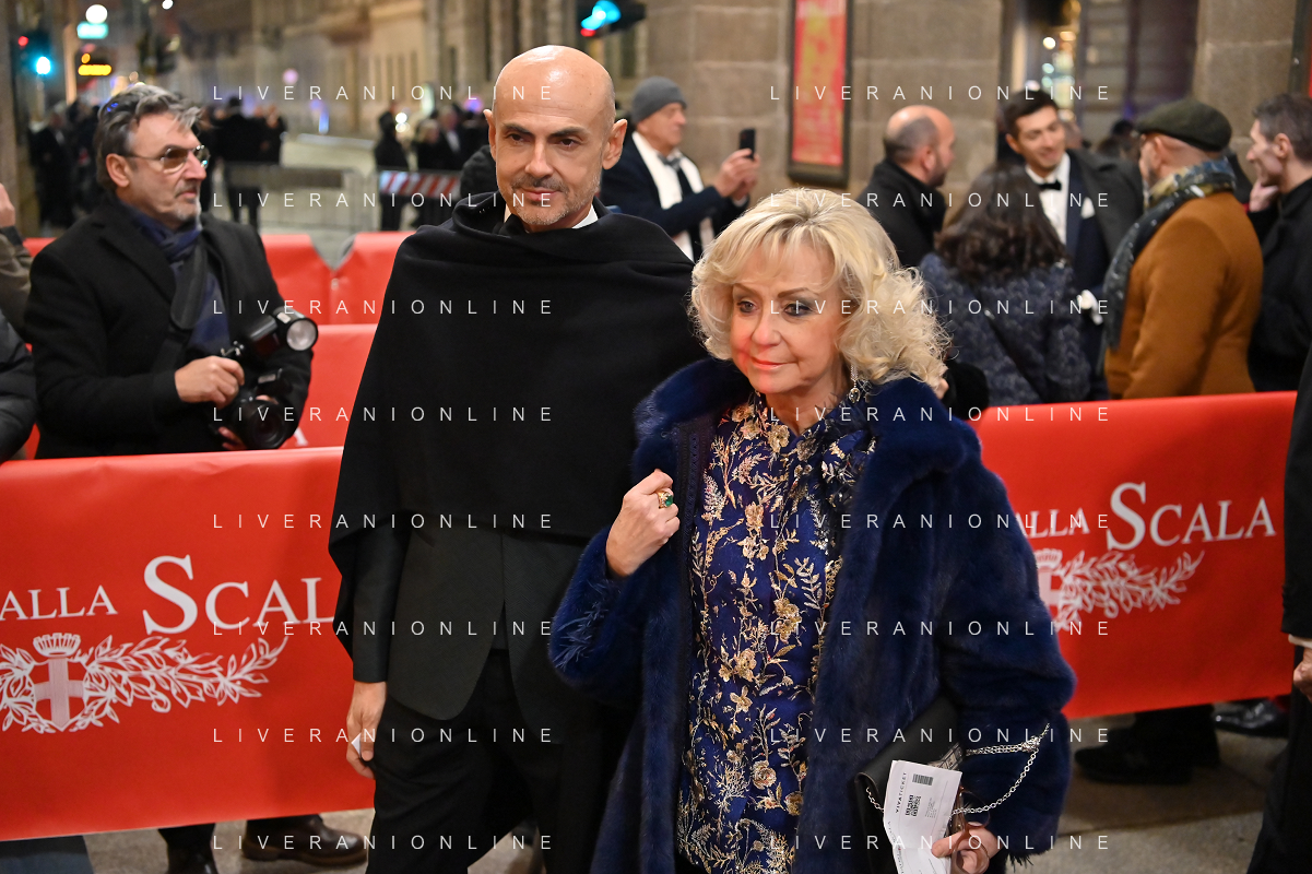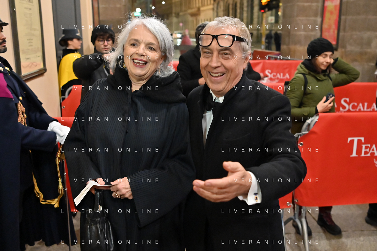 TVRG Prima alla Scala nella foto Pasquale Di Molfetta in arte Linus e Carlotta Medas Milano 07-12-2023 Arrivo delle personalita' per assistere alla prima del Teatro alla Scala foto Roberto Garavaglia/ag. Aldo Liverani sas