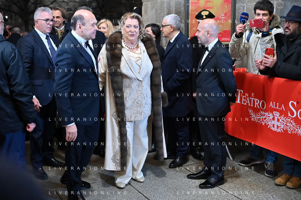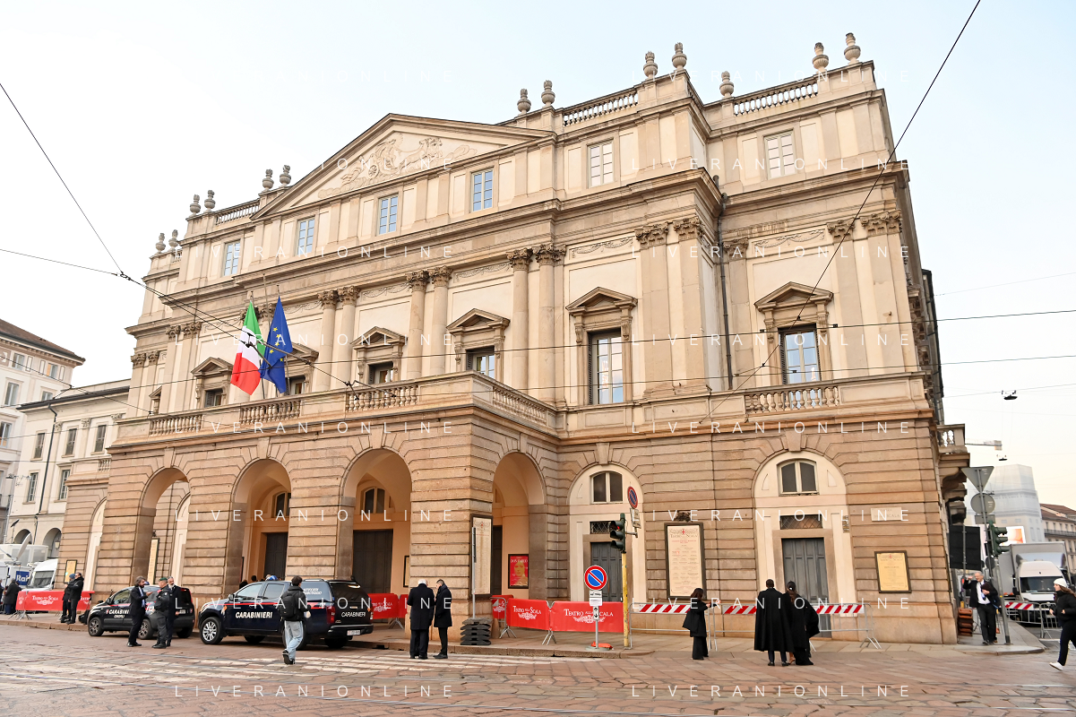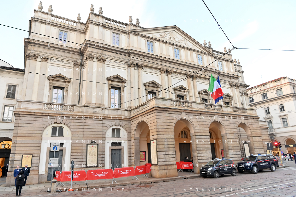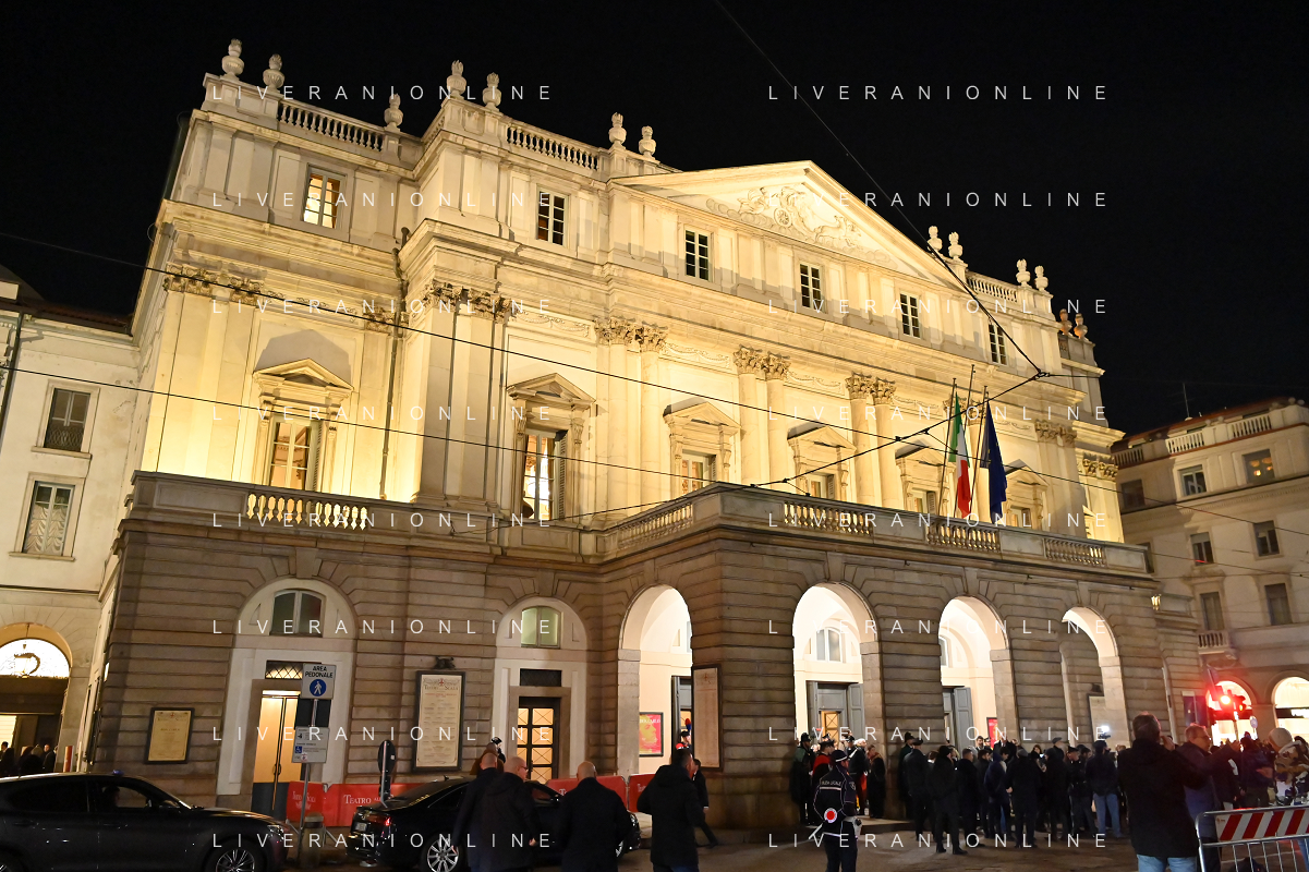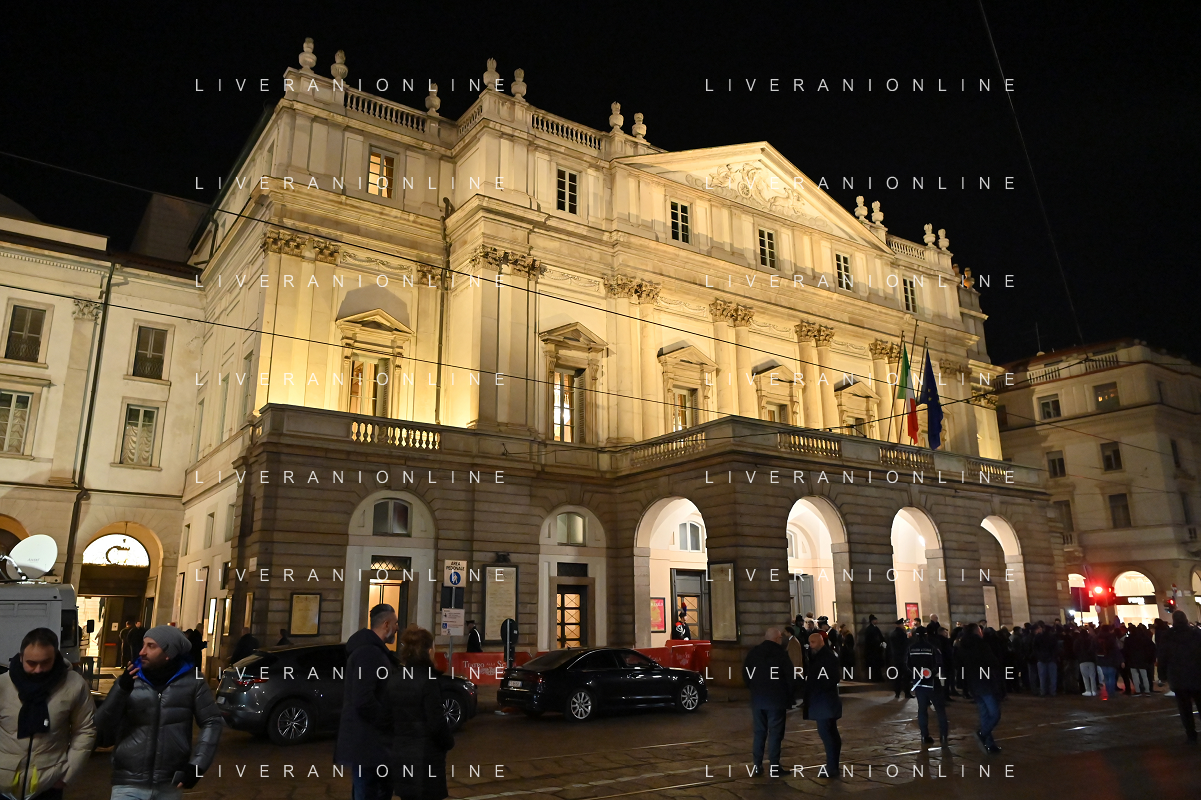 TVRG Prima alla Scala nella foto Teatro alla Scala Milano 07-12-2023 Arrivo delle personalita' per assistere alla prima del Teatro alla Scala foto Roberto Garavaglia/ag. Aldo Liverani sas