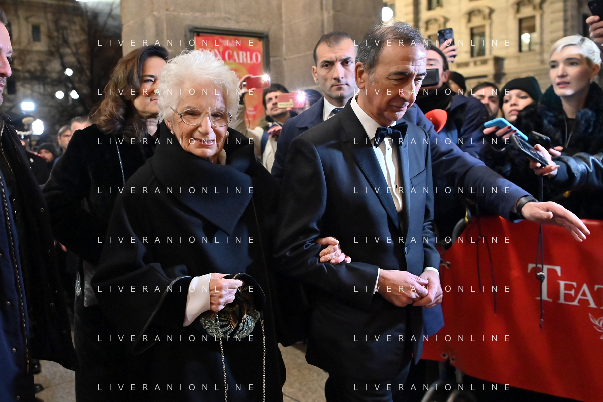 TVRG Prima alla Scala nella foto Liliana Segre con il sindaco Giuseppe Sala Milano 07-12-2023 Arrivo delle personalita' per assistere alla prima del Teatro alla Scala foto Roberto Garavaglia/ag. Aldo Liverani sas