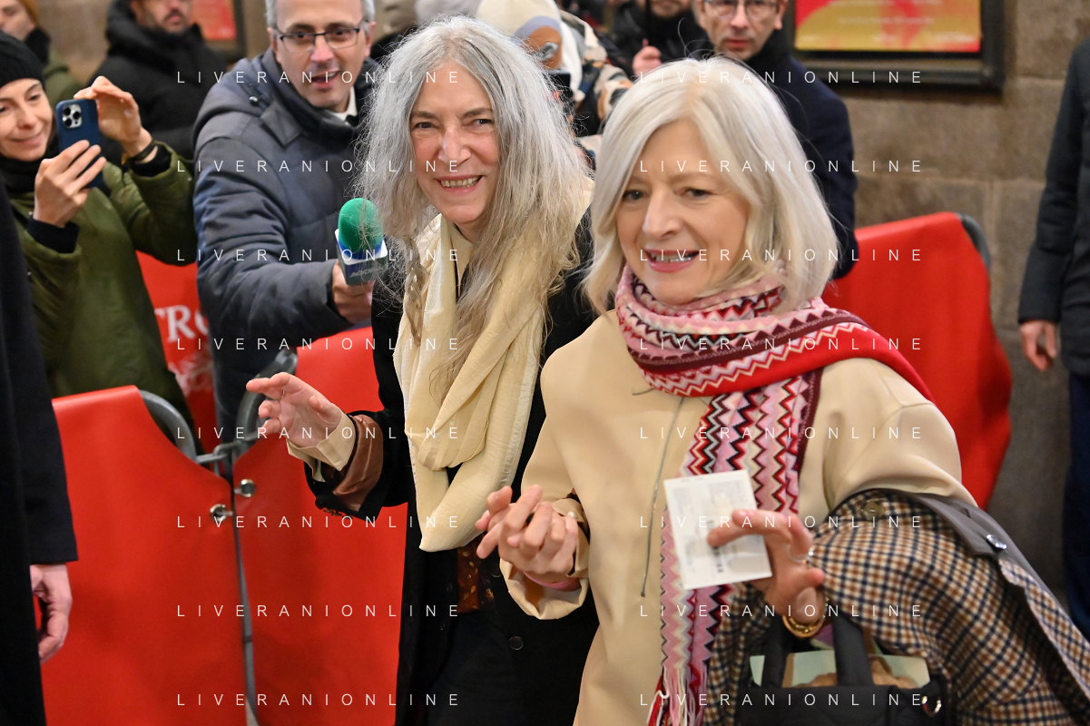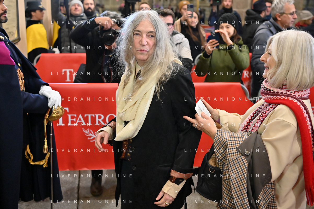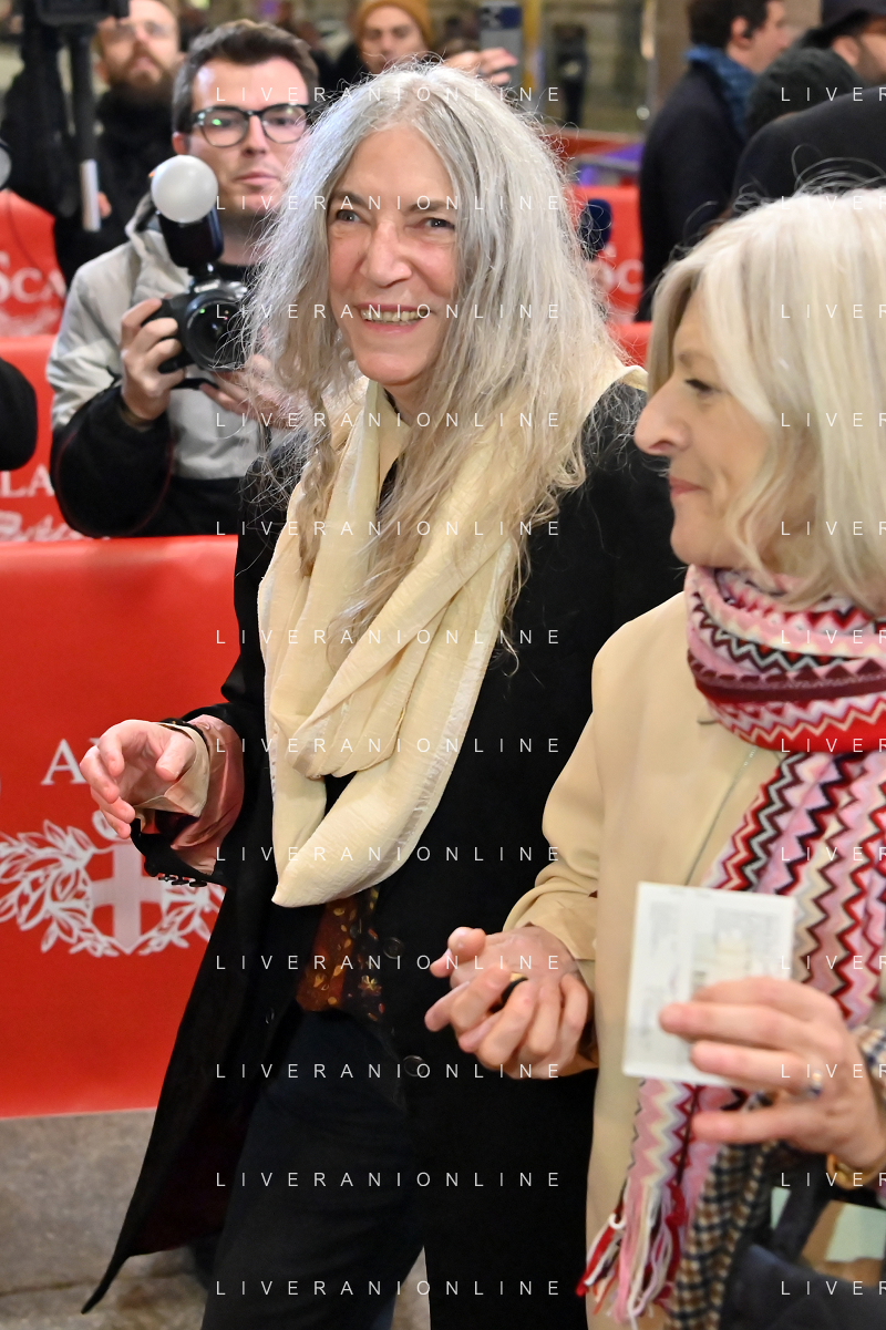 TVRG Prima alla Scala nella foto Patti Smith a SX Milano 07-12-2023 Arrivo delle personalita' per assistere alla prima del Teatro alla Scala foto Roberto Garavaglia/ag. Aldo Liverani sas