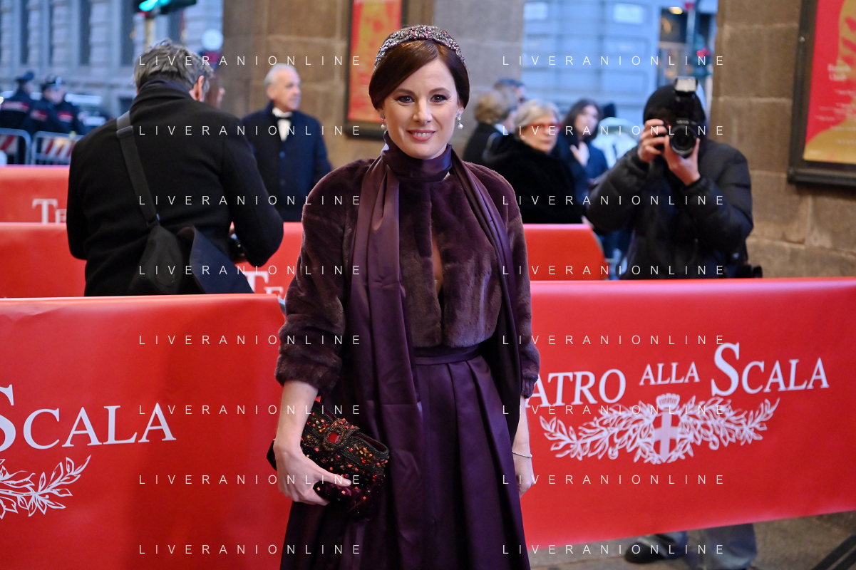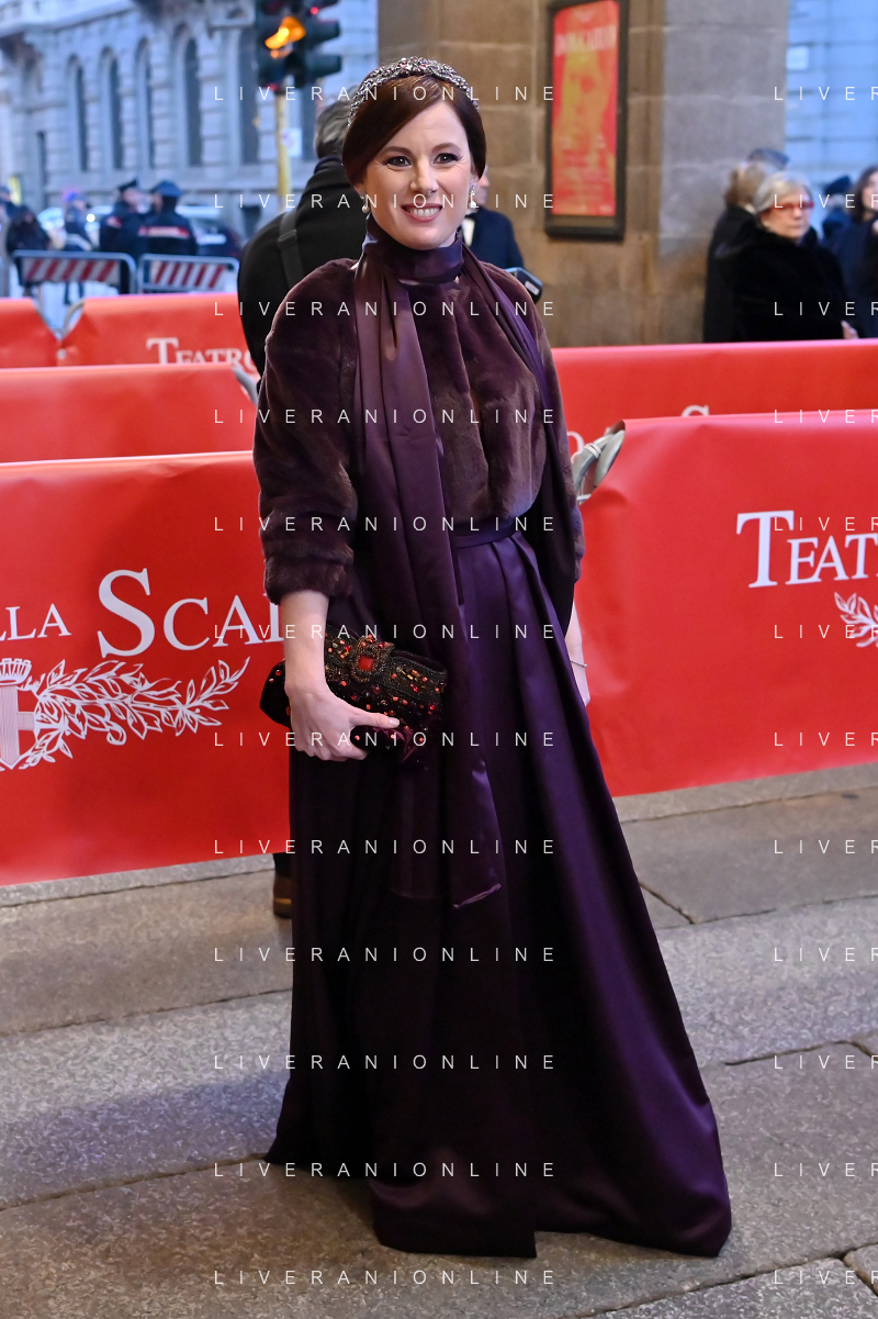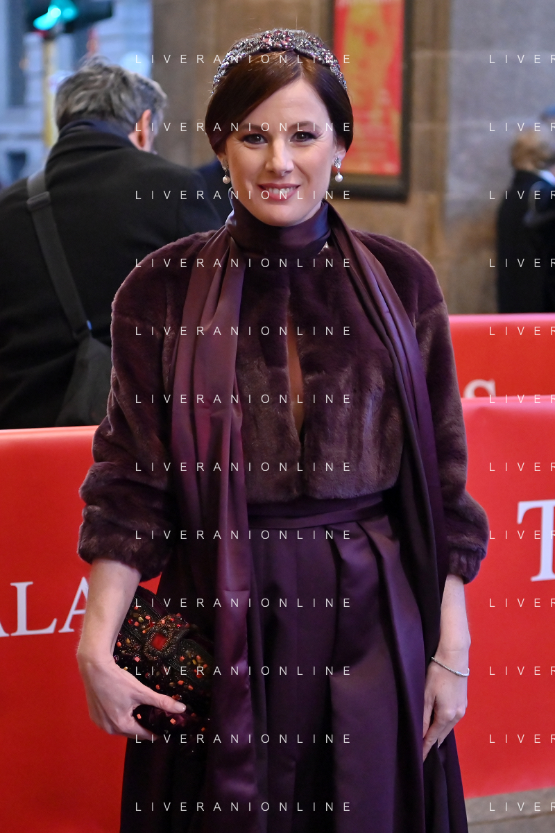 TVRG Prima alla Scala nella foto Sarah Maestri Milano 07-12-2023 Arrivo delle personalita' per assistere alla prima del Teatro alla Scala foto Roberto Garavaglia/ag. Aldo Liverani sas