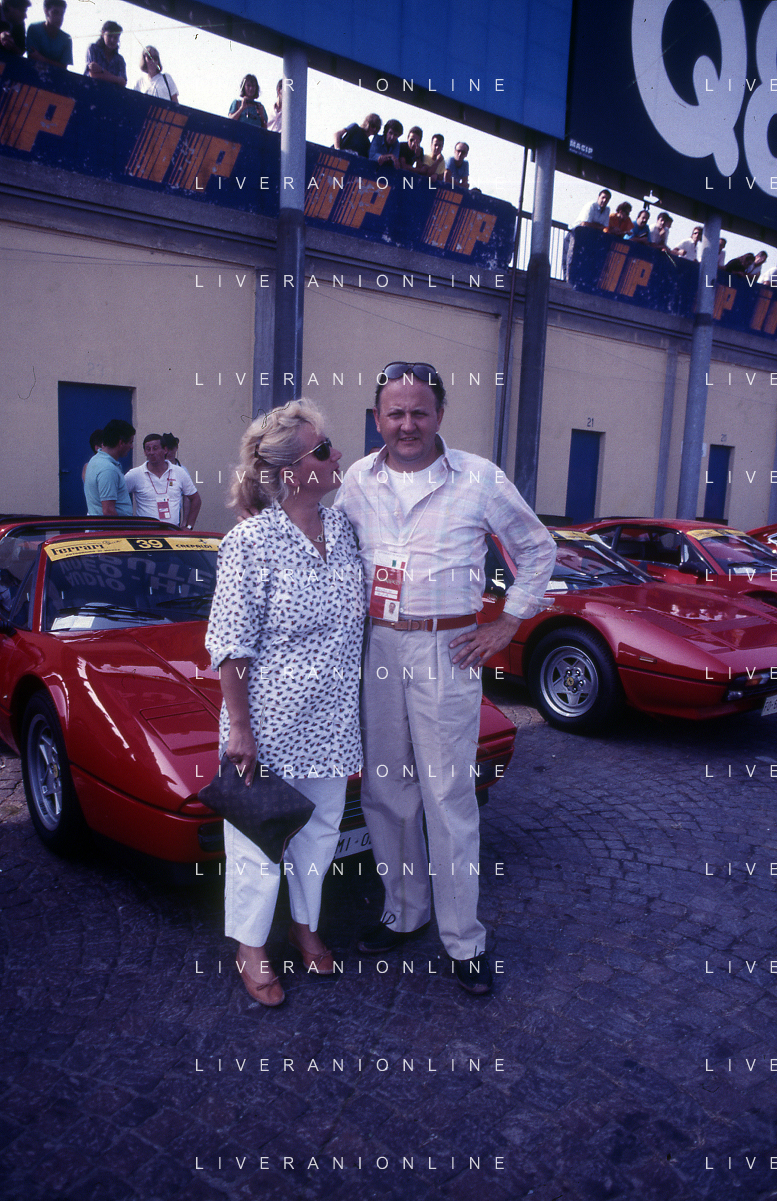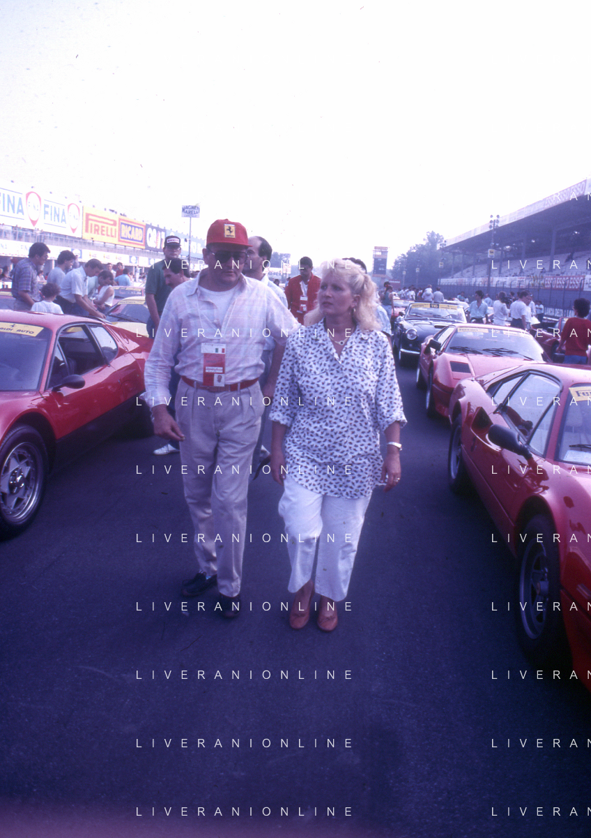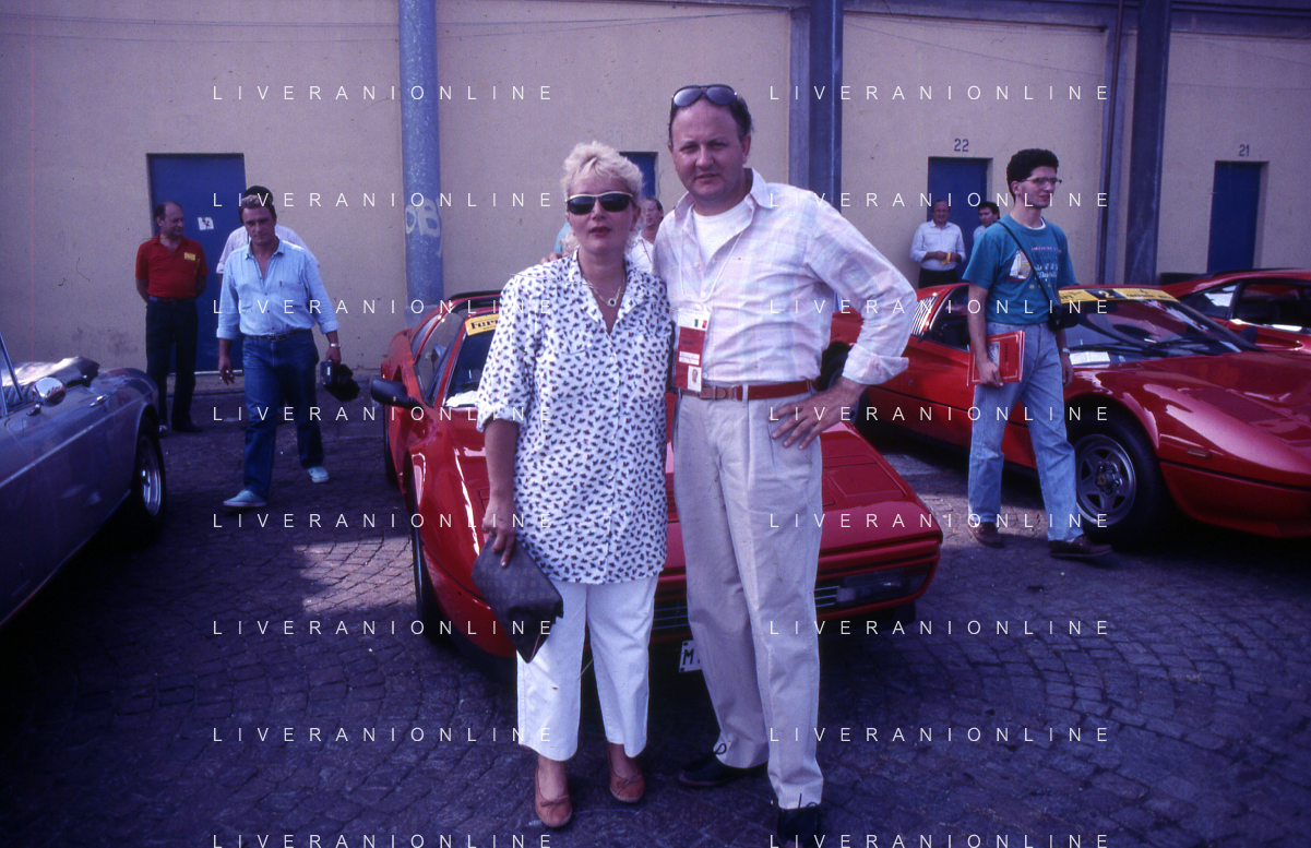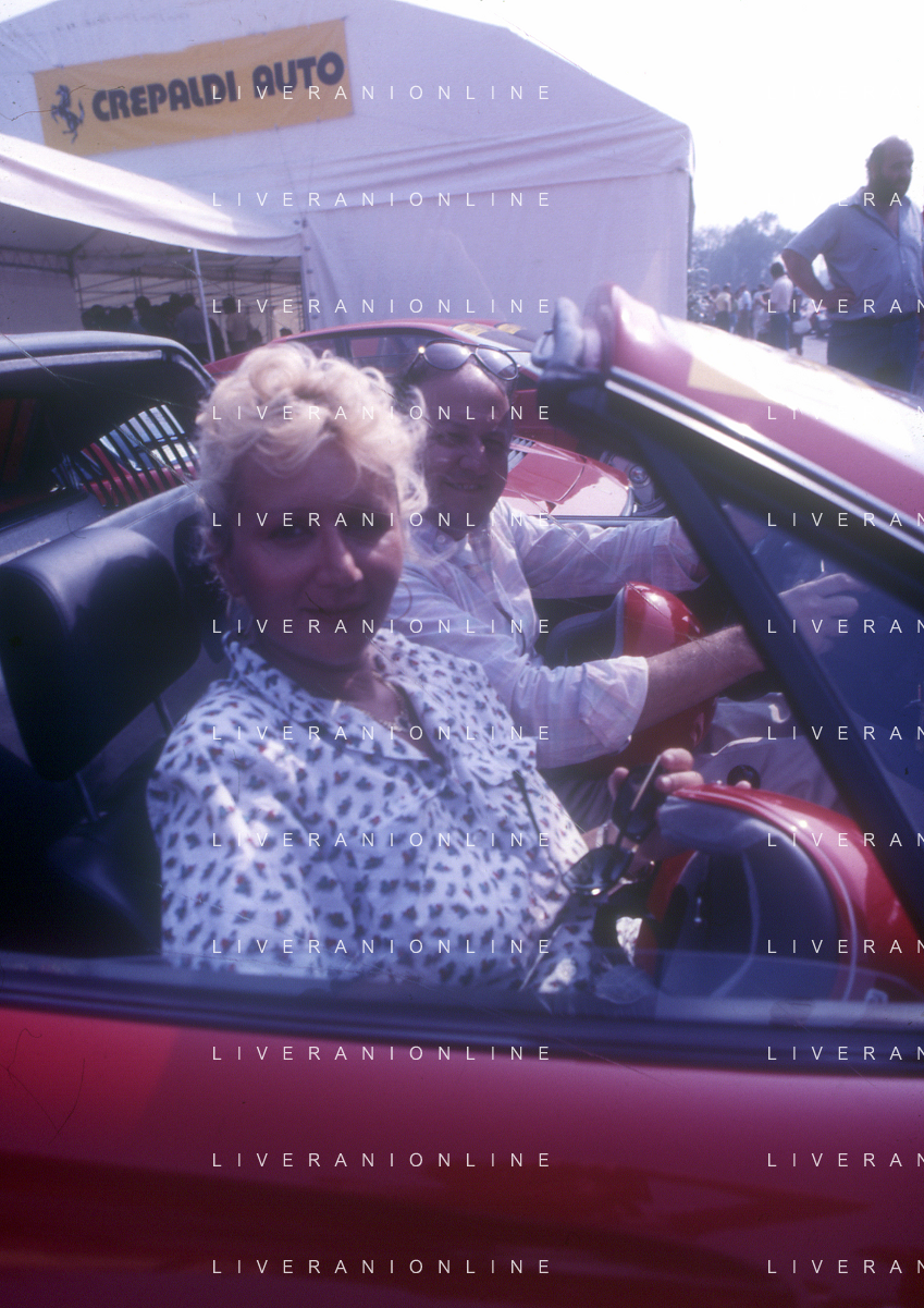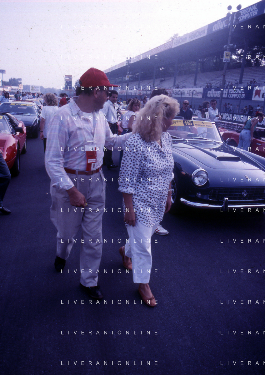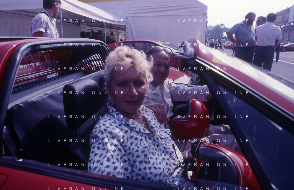 DIAP-RETROSPETTIVA MASSIMO BOLDI ATTORE NELLA FOTO MASSIMO BOLDI CON LA MOGLIE NELL'ANNO 1987 A MONZA PER LA MANIFESTAZIONE FERRARI DAY AG ALDO LIVERANI SAS