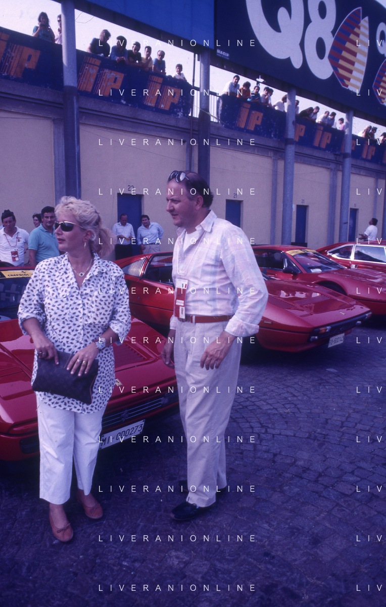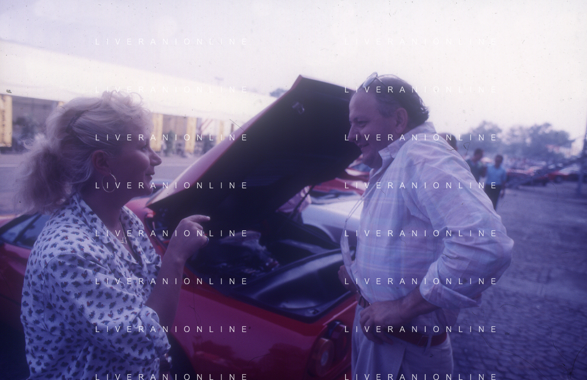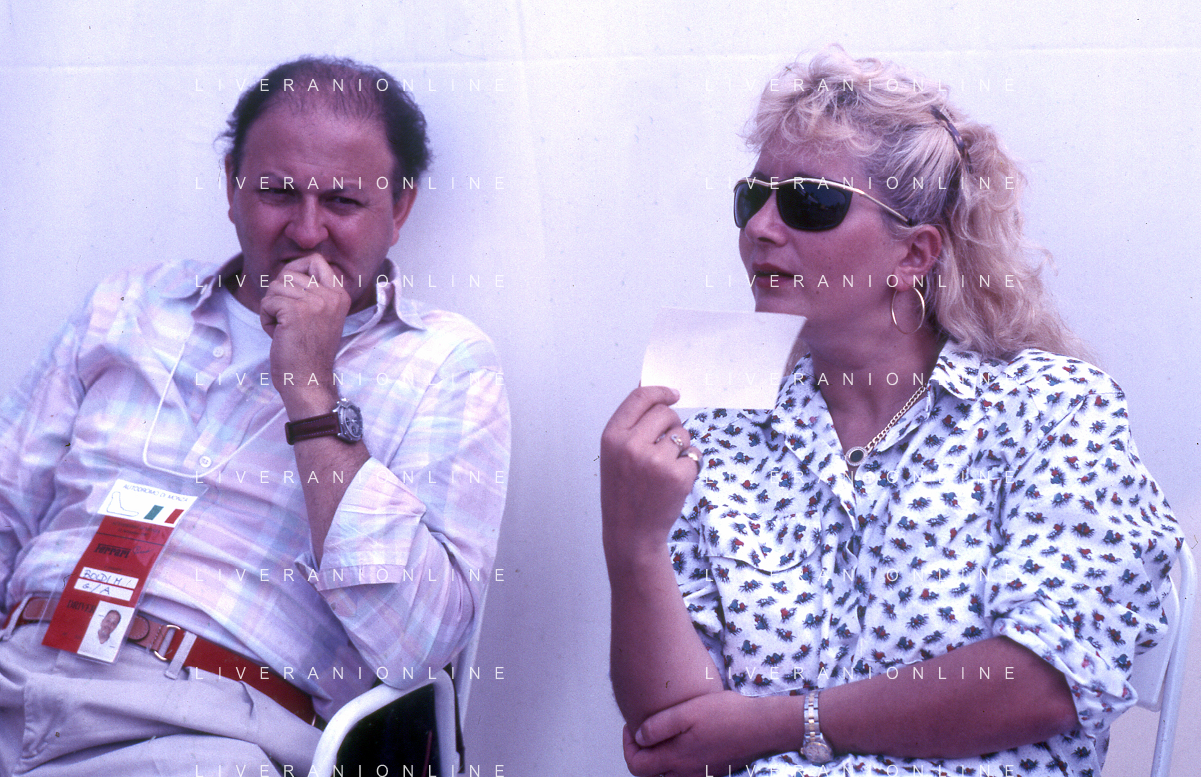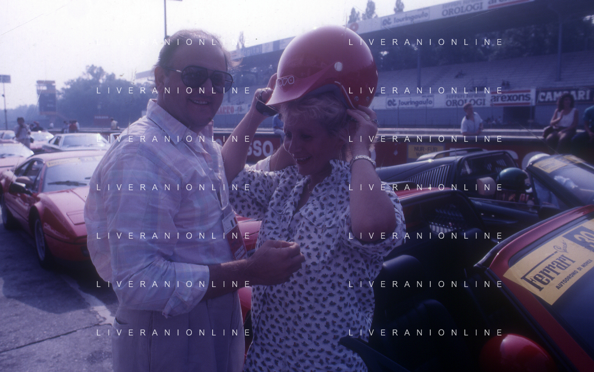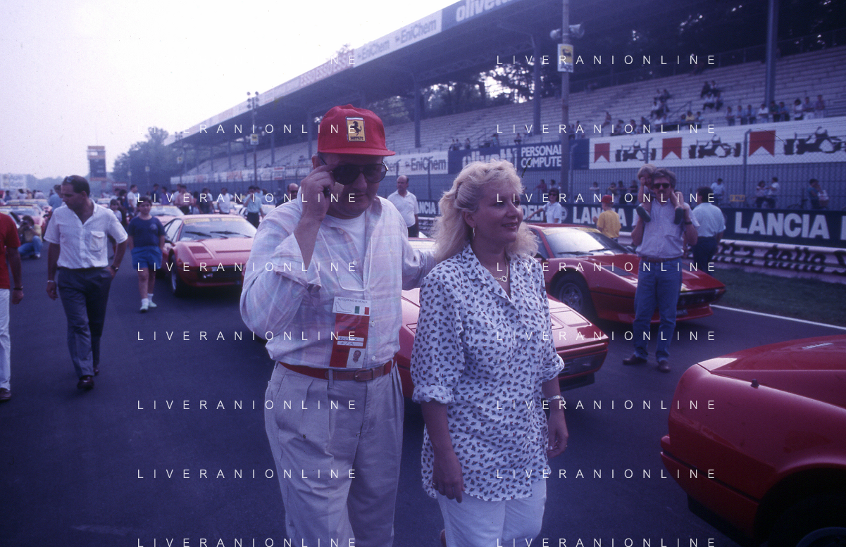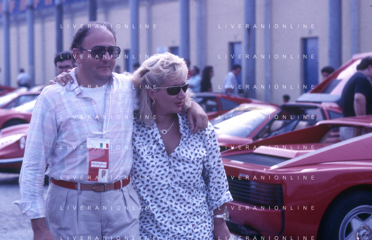 DIAP-RETROSPETTIVA MASSIMO BOLDI ATTORE NELLA FOTO MASSIMO BOLDI CON LA MOGLIE NELL'ANNO 1987 A MONZA PER LA MANIFESTAZIONE FERRARI DAY AG ALDO LIVERANI SAS