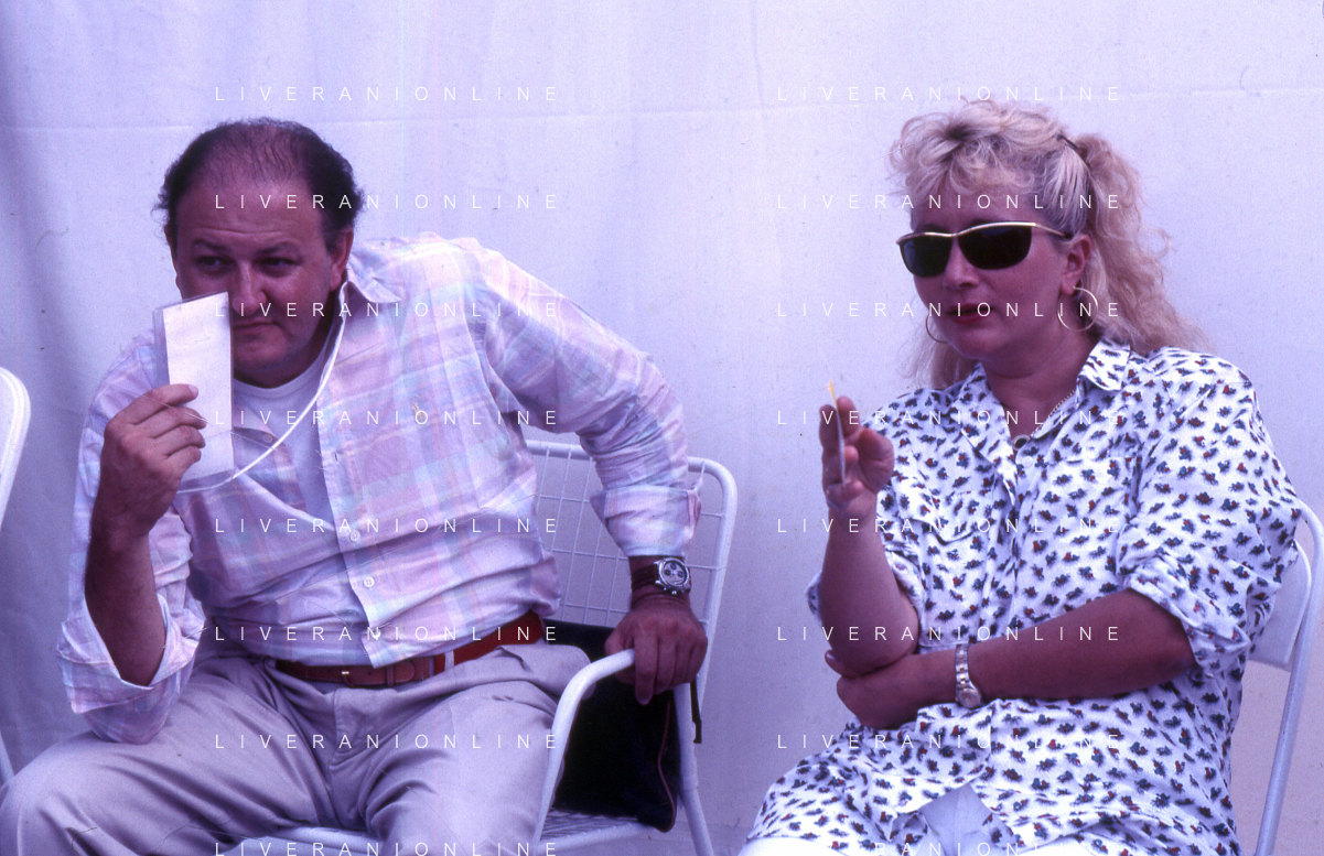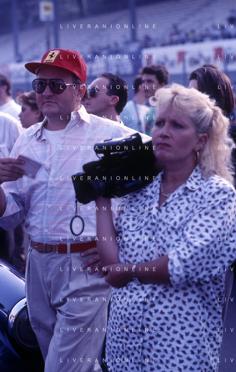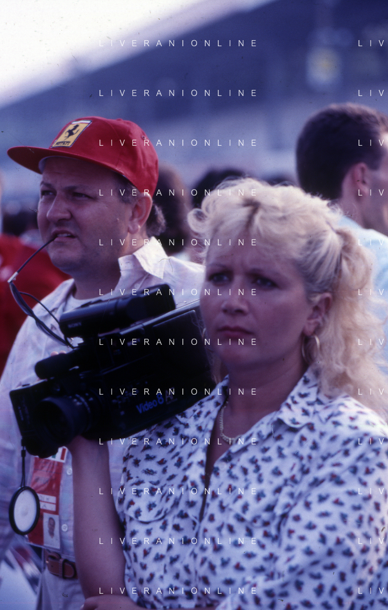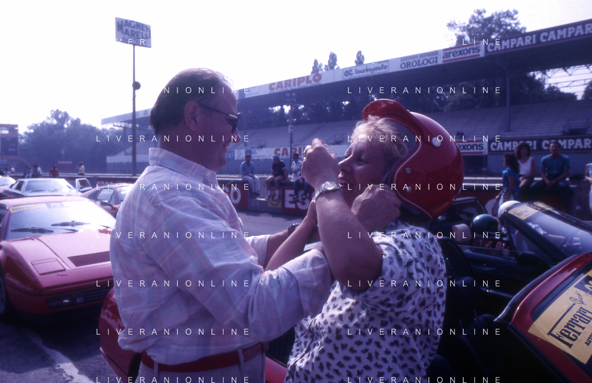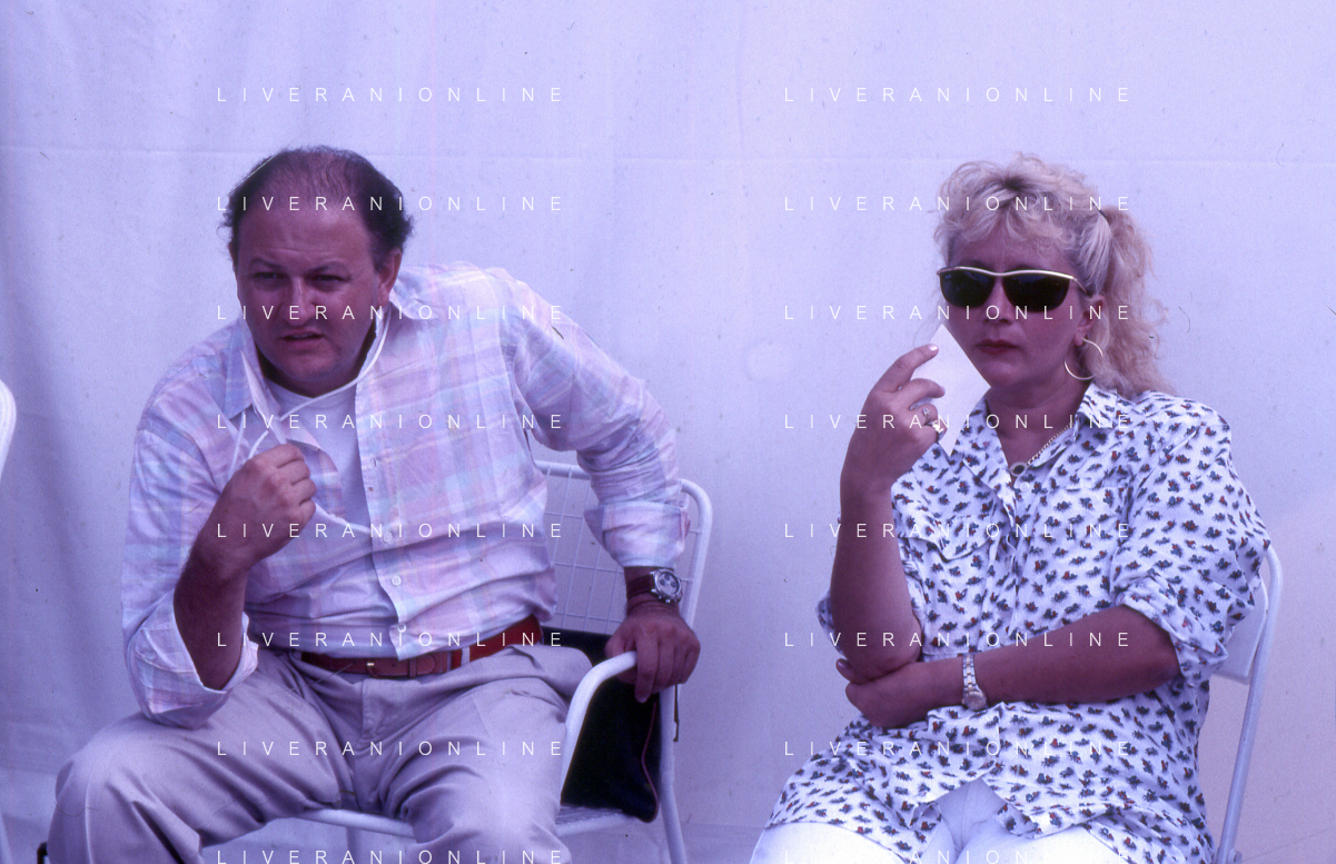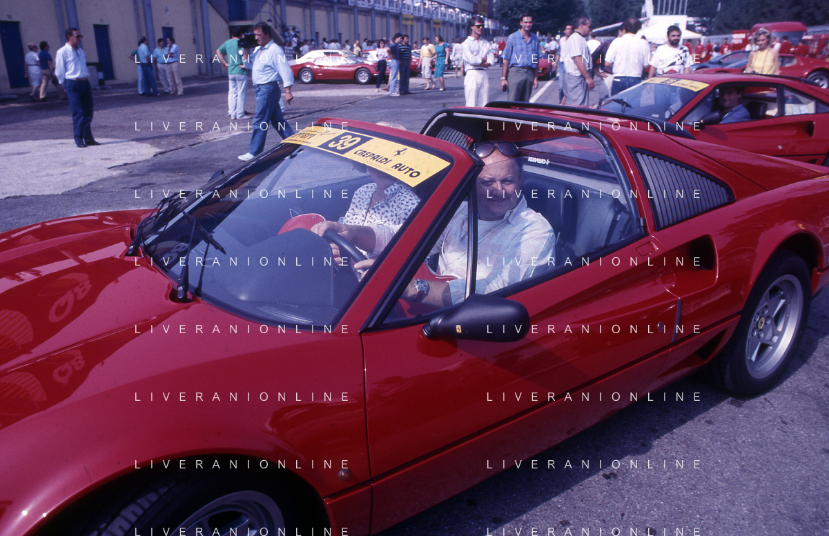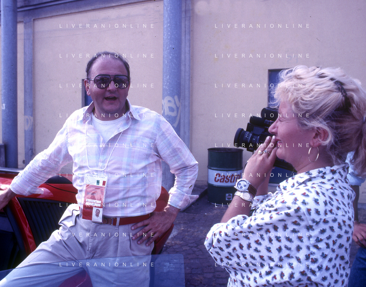 DIAP-RETROSPETTIVA MASSIMO BOLDI ATTORE NELLA FOTO MASSIMO BOLDI CON LA MOGLIE NELL'ANNO 1987 A MONZA PER LA MANIFESTAZIONE FERRARI DAY AG ALDO LIVERANI SAS