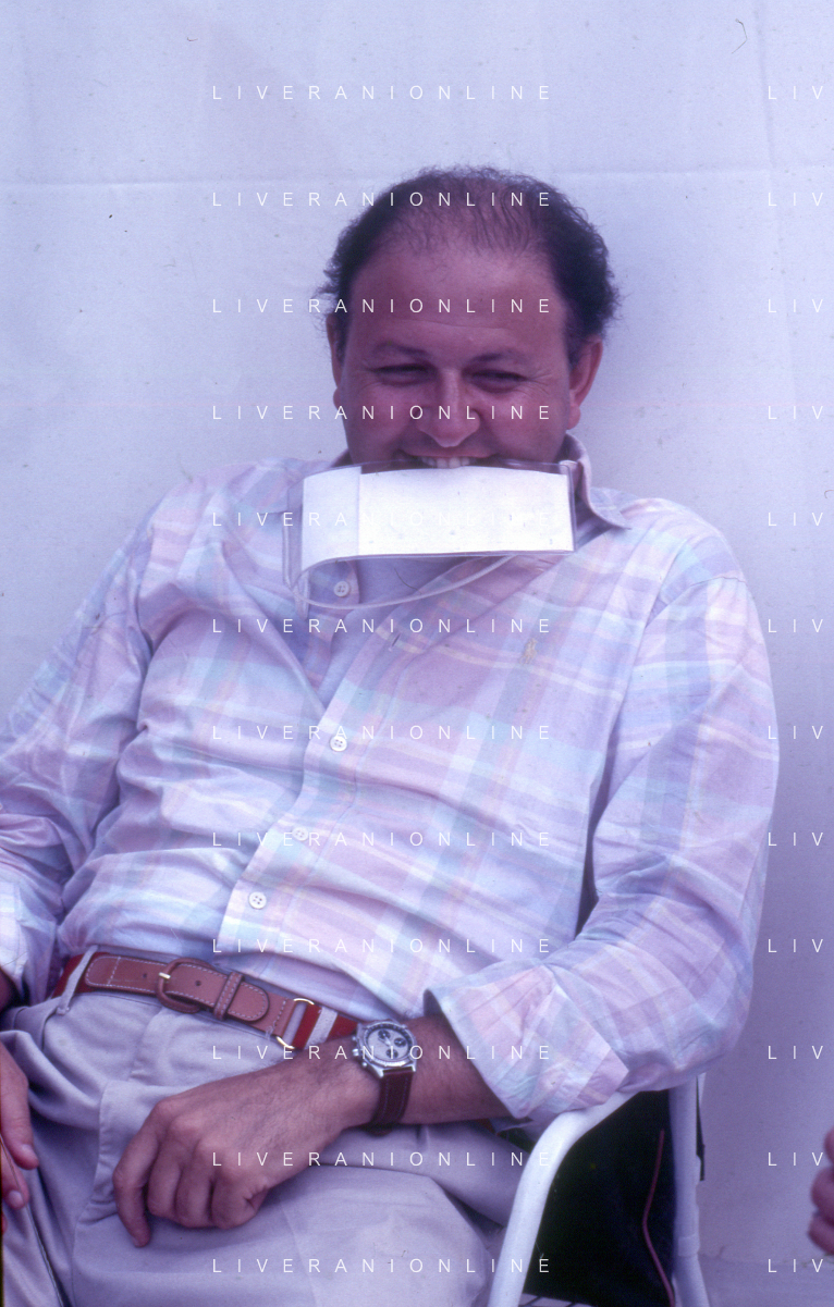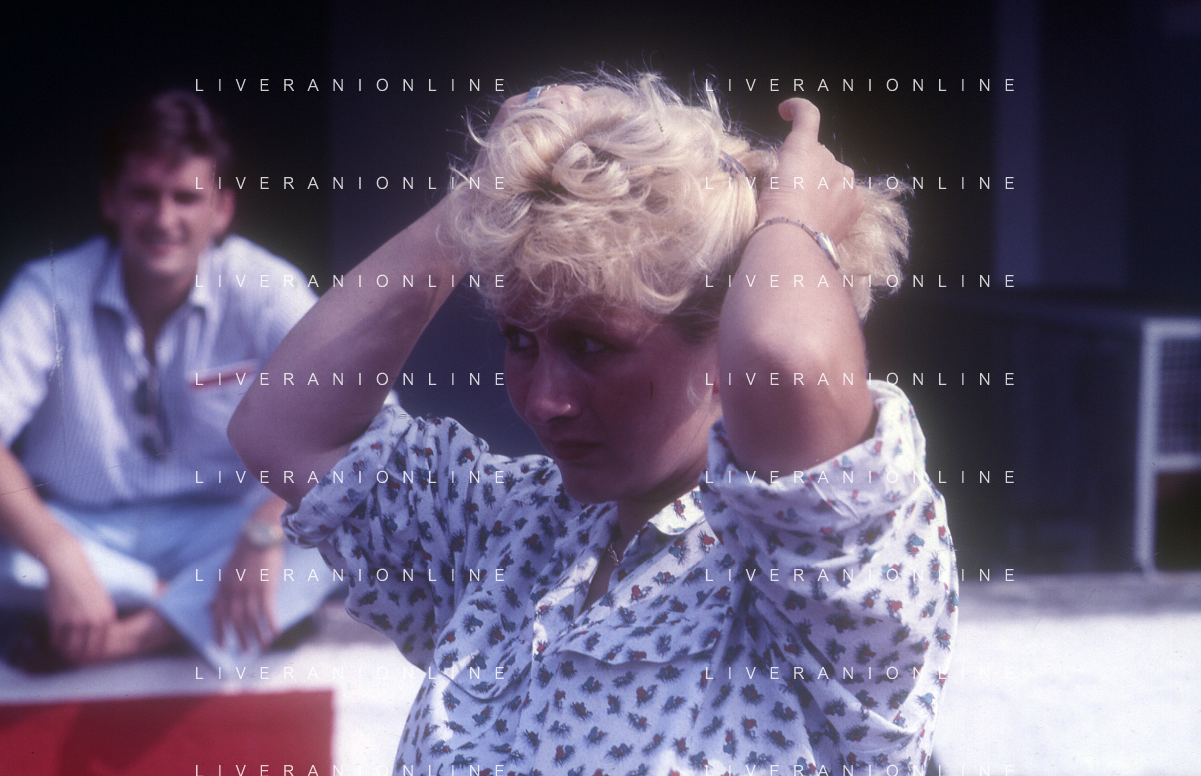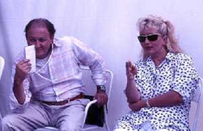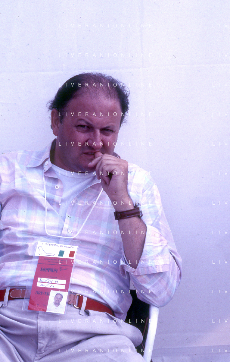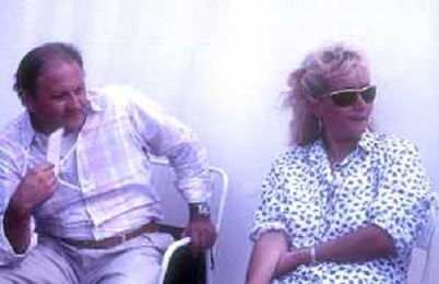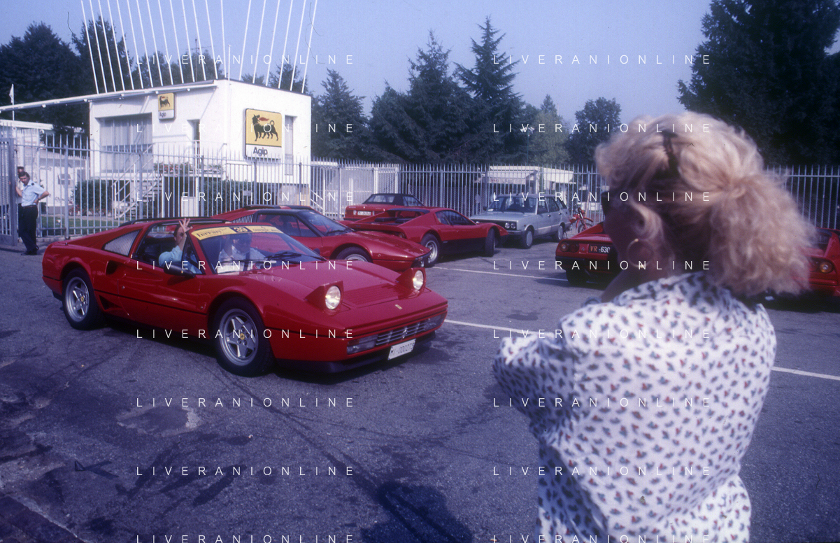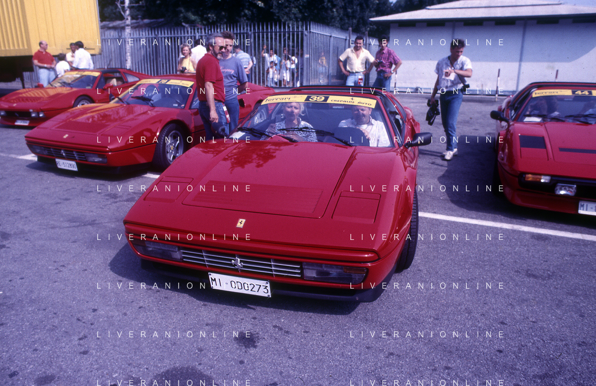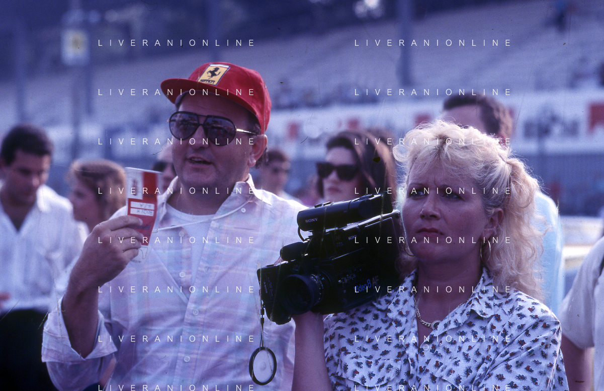 DIAP-RETROSPETTIVA MASSIMO BOLDI ATTORE NELLA FOTO MASSIMO BOLDI CON LA MOGLIE NELL'ANNO 1987 A MONZA PER LA MANIFESTAZIONE FERRARI DAY AG ALDO LIVERANI SAS