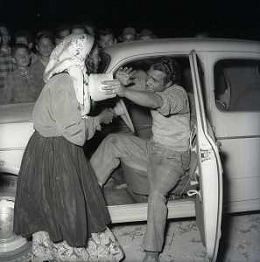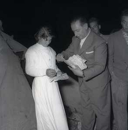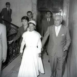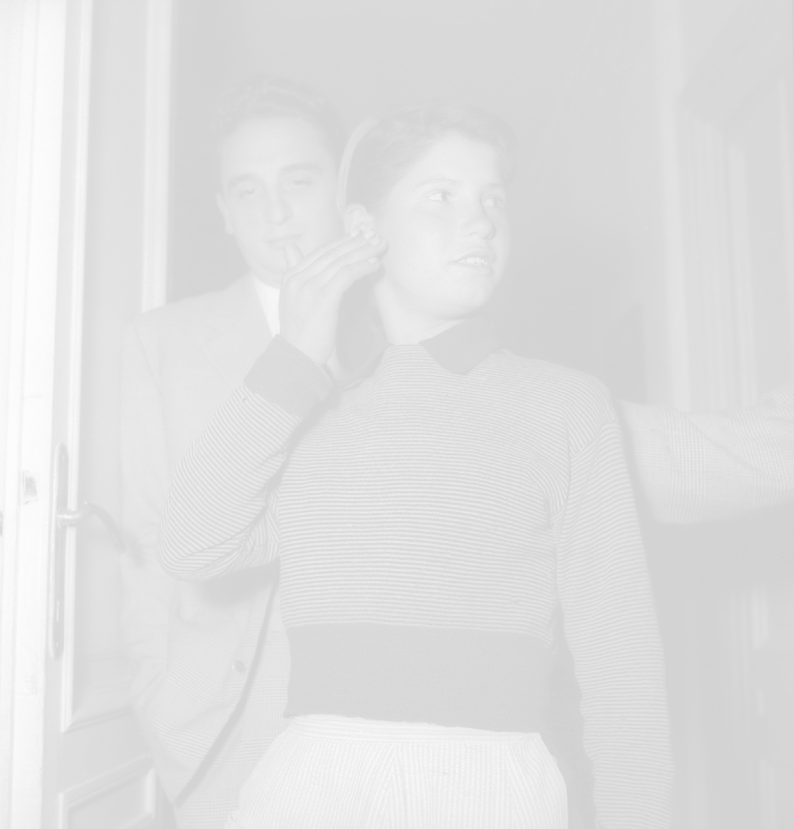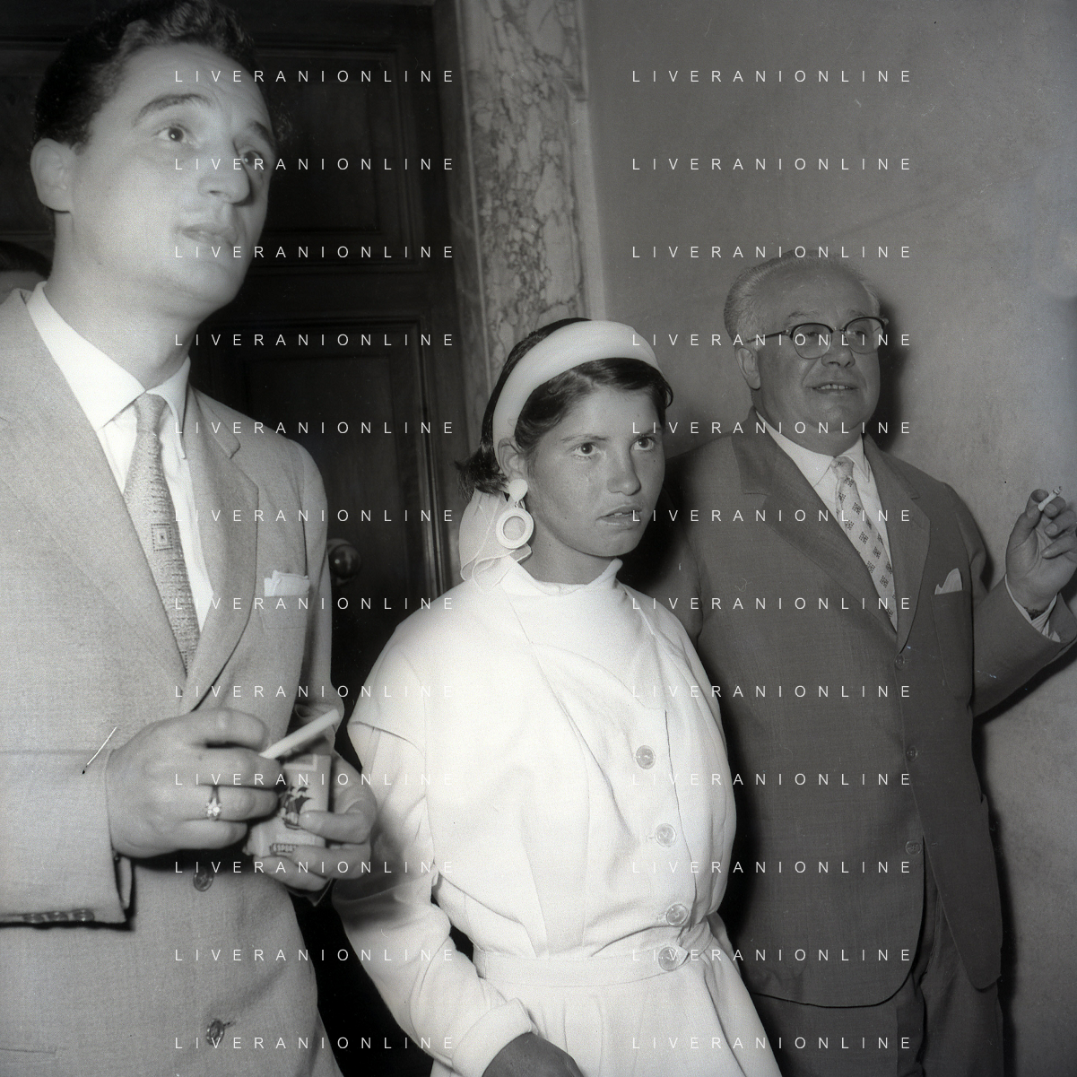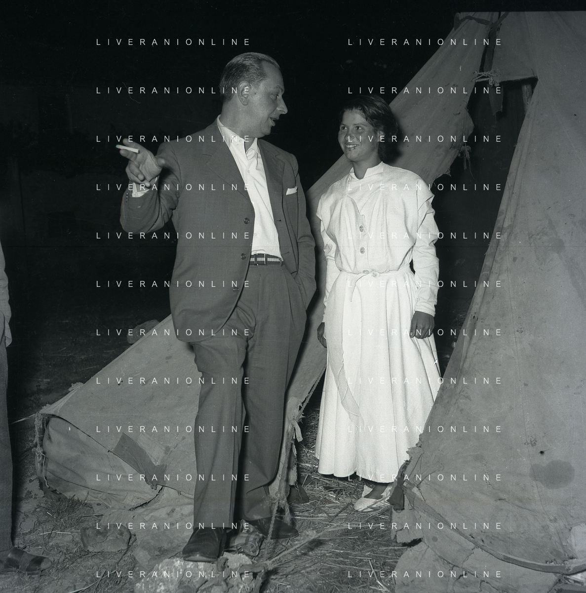 NEG-28-05-1955 ROMA -IL MATRIMONIO TRA IL REGISTA GUALTIERO JACOPETTI E E LA ZINGARA QUNDICENNE JOLANDA CALDERAS NELLA FOTO I GENITORI JOLANDA CALDERAS - Nel 1955, però Gualtiero viene arrestato con l'accusa di aver violentato una zingara quindicenne, Jolanda Calderas. Dimesso dalla direzione di Cronache, è costretto a sposarsi la ragazza nel carcere di Regina Coeli per riacquistare la sua libertà FOTO SANDRO VESPASIANI-AG ALDO LIVERANI SAS