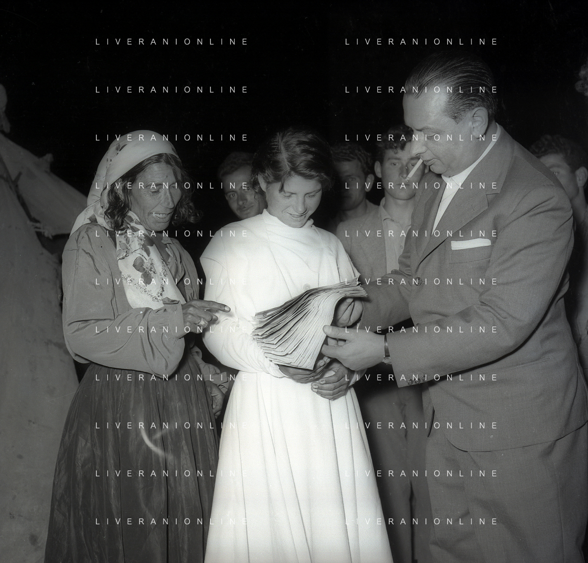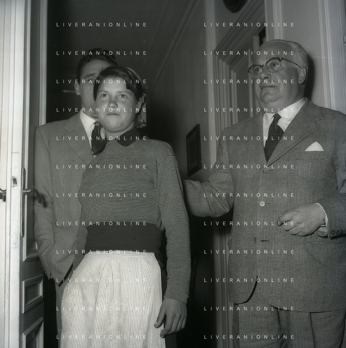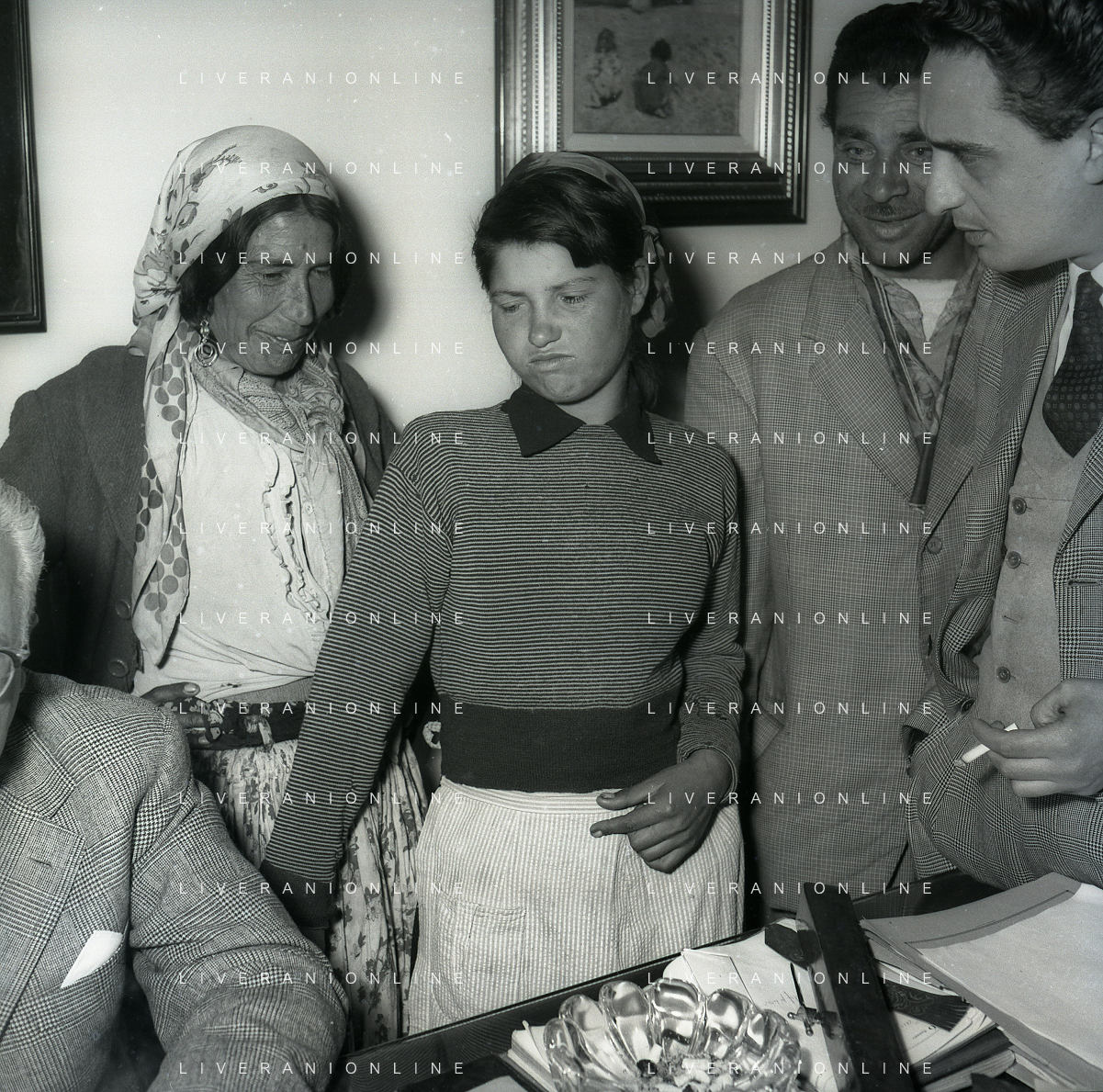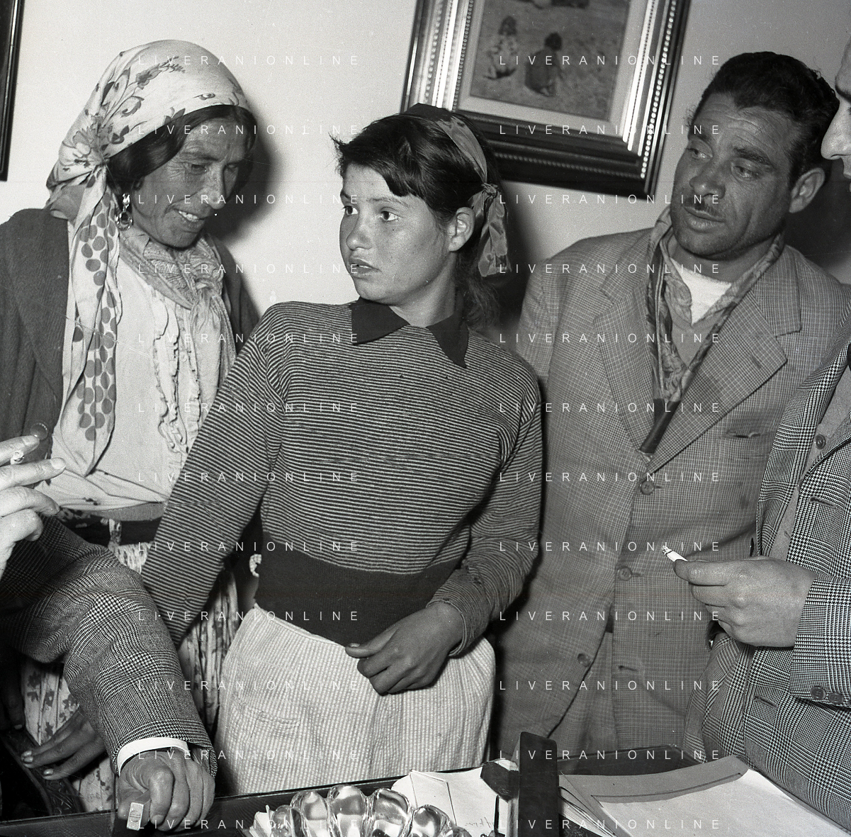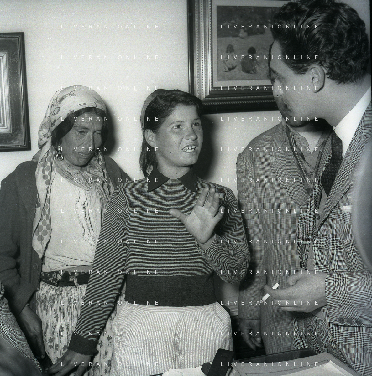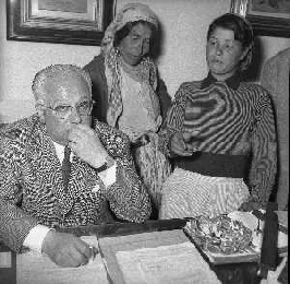 NEG-28-05-1955 ROMA -IL MATRIMONIO TRA IL REGISTA GUALTIERO JACOPETTI E E LA ZINGARA QUNDICENNE JOLANDA CALDERAS NELLA FOTO I PARENTI DI JOLANDA CALDERAS - Nel 1955, però Gualtiero viene arrestato con l'accusa di aver violentato una zingara quindicenne, Jolanda Calderas. Dimesso dalla direzione di Cronache, è costretto a sposarsi la ragazza nel carcere di Regina Coeli per riacquistare la sua libertà FOTO SANDRO VESPASIANI-AG ALDO LIVERANI SAS
