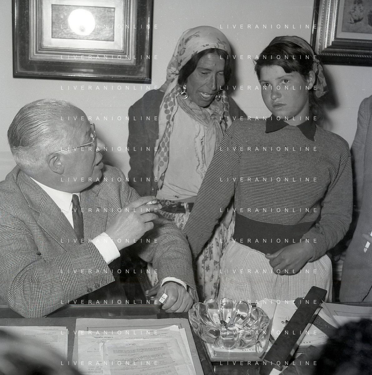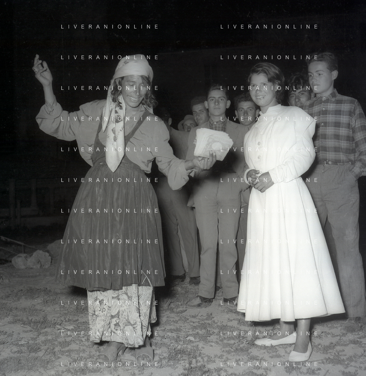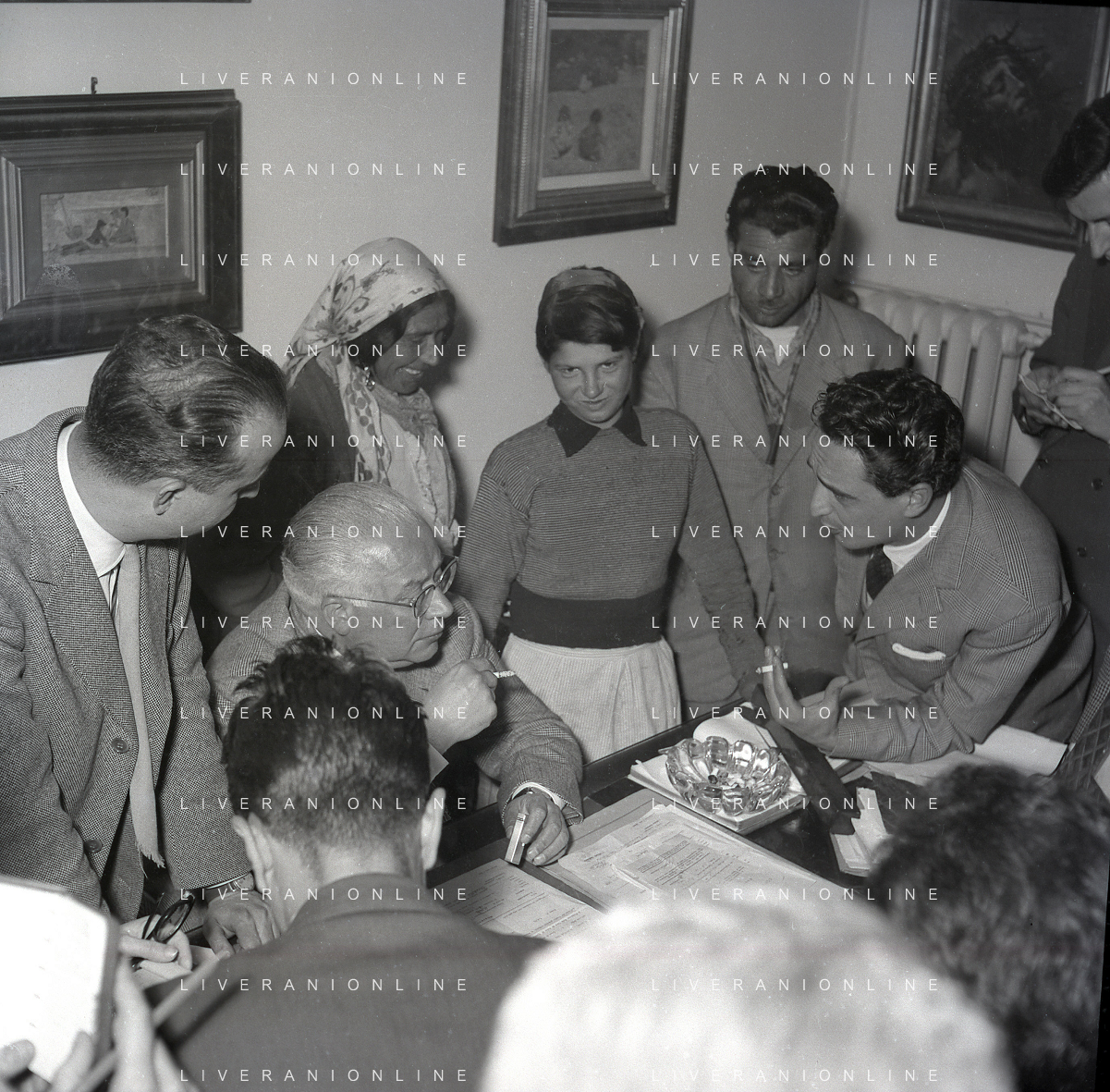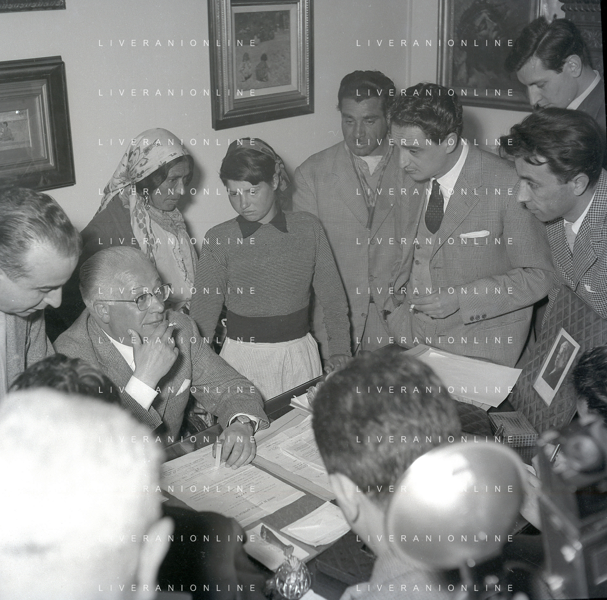 NEG-28-05-1955 ROMA -IL MATRIMONIO TRA IL REGISTA GUALTIERO JACOPETTI E E LA ZINGARA QUNDICENNE JOLANDA CALDERAS NELLA FOTO I PARENTI DI JOLANDA CALDERAS - Nel 1955, però Gualtiero viene arrestato con l'accusa di aver violentato una zingara quindicenne, Jolanda Calderas. Dimesso dalla direzione di Cronache, è costretto a sposarsi la ragazza nel carcere di Regina Coeli per riacquistare la sua libertà FOTO SANDRO VESPASIANI-AG ALDO LIVERANI SAS
