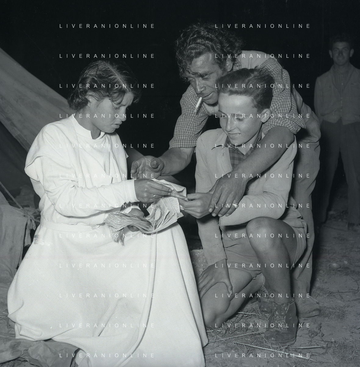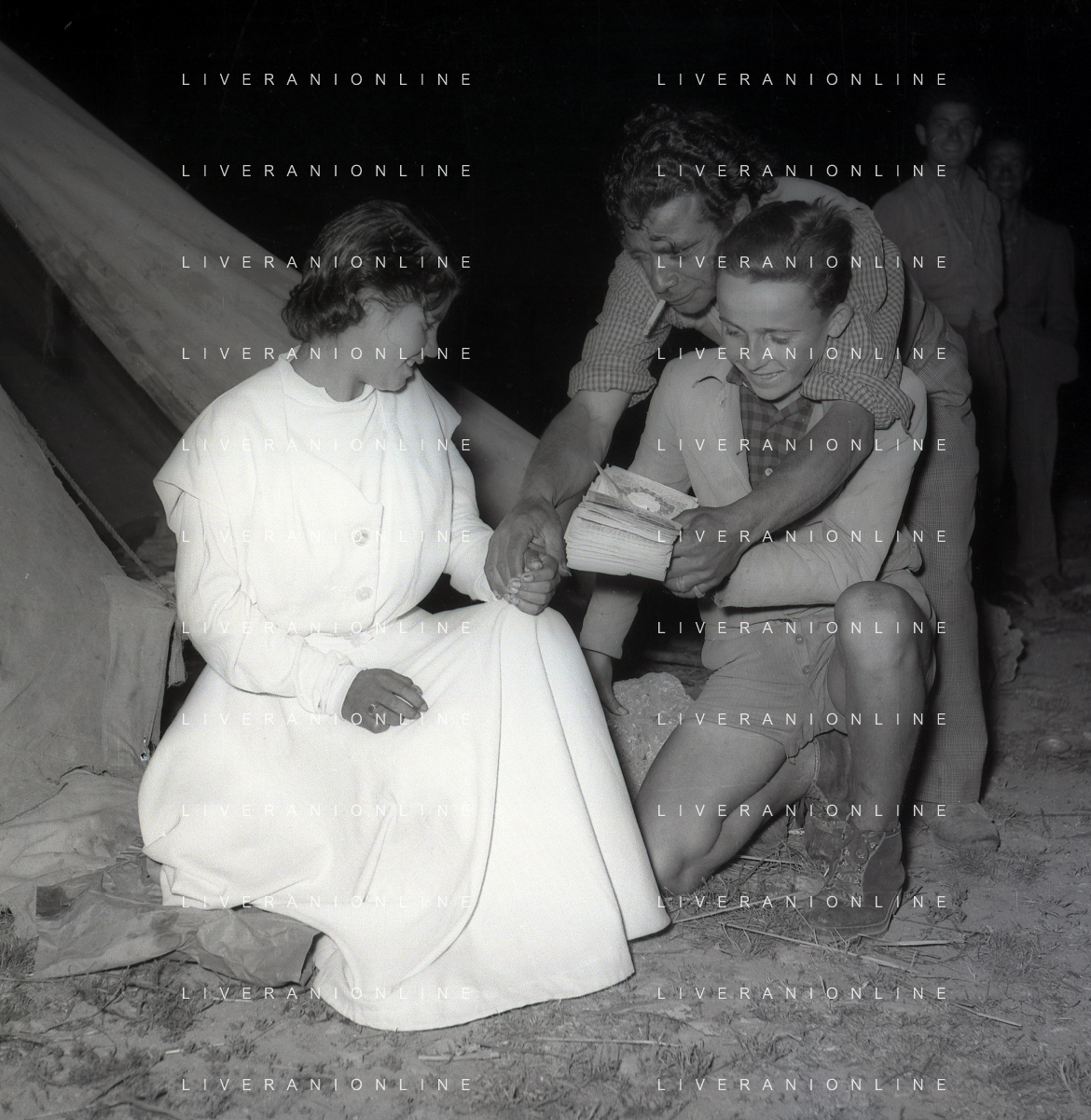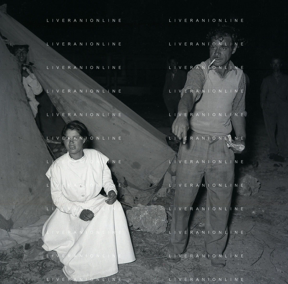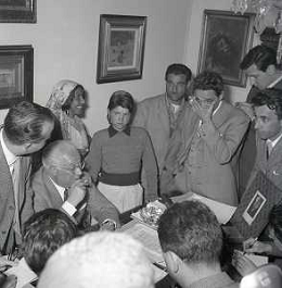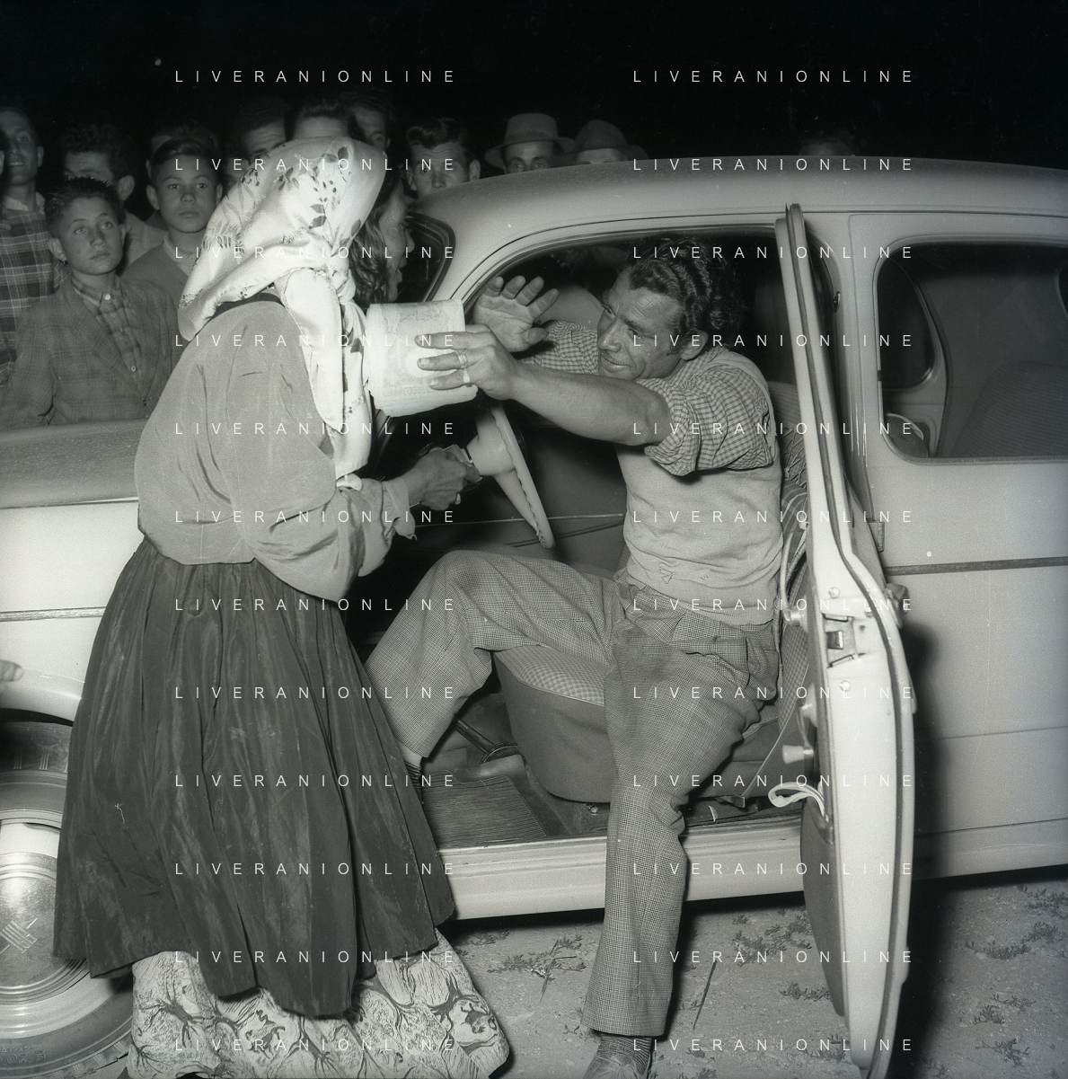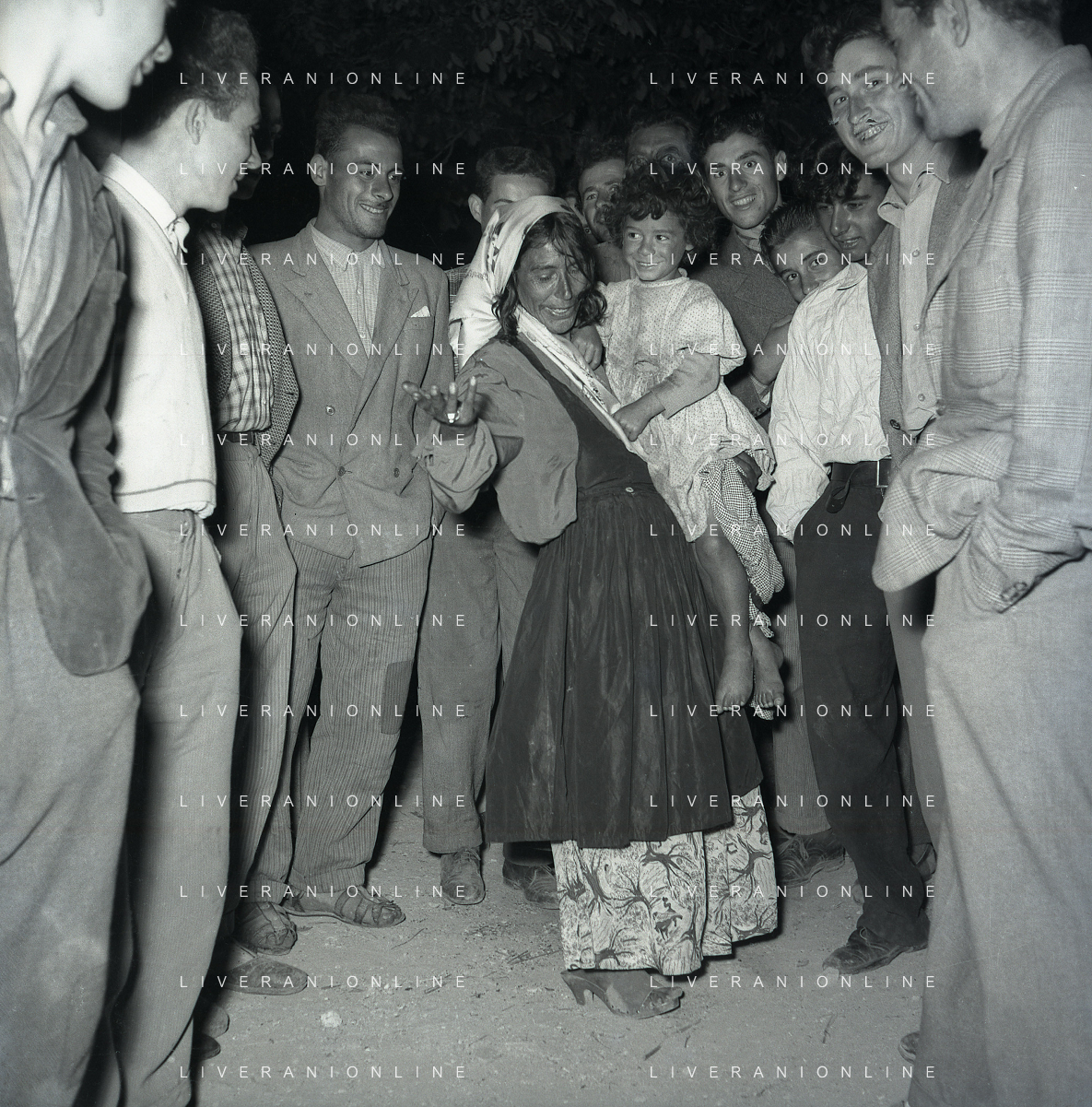 NEG-28-05-1955 ROMA -IL MATRIMONIO TRA IL REGISTA GUALTIERO JACOPETTI E E LA ZINGARA QUNDICENNE JOLANDA CALDERAS NELLA FOTO I PARENTI DI JOLANDA CALDERAS - Nel 1955, però Gualtiero viene arrestato con l'accusa di aver violentato una zingara quindicenne, Jolanda Calderas. Dimesso dalla direzione di Cronache, è costretto a sposarsi la ragazza nel carcere di Regina Coeli per riacquistare la sua libertà FOTO SANDRO VESPASIANI-AG ALDO LIVERANI SAS