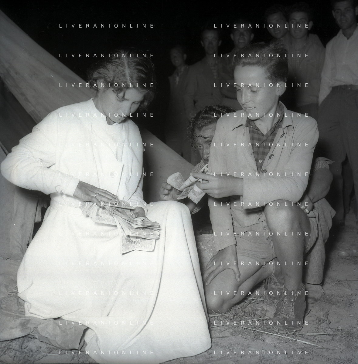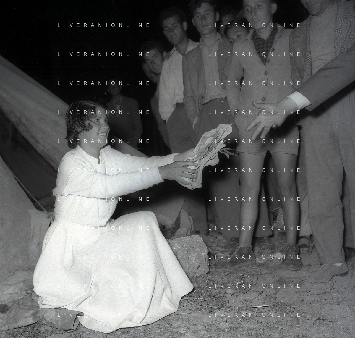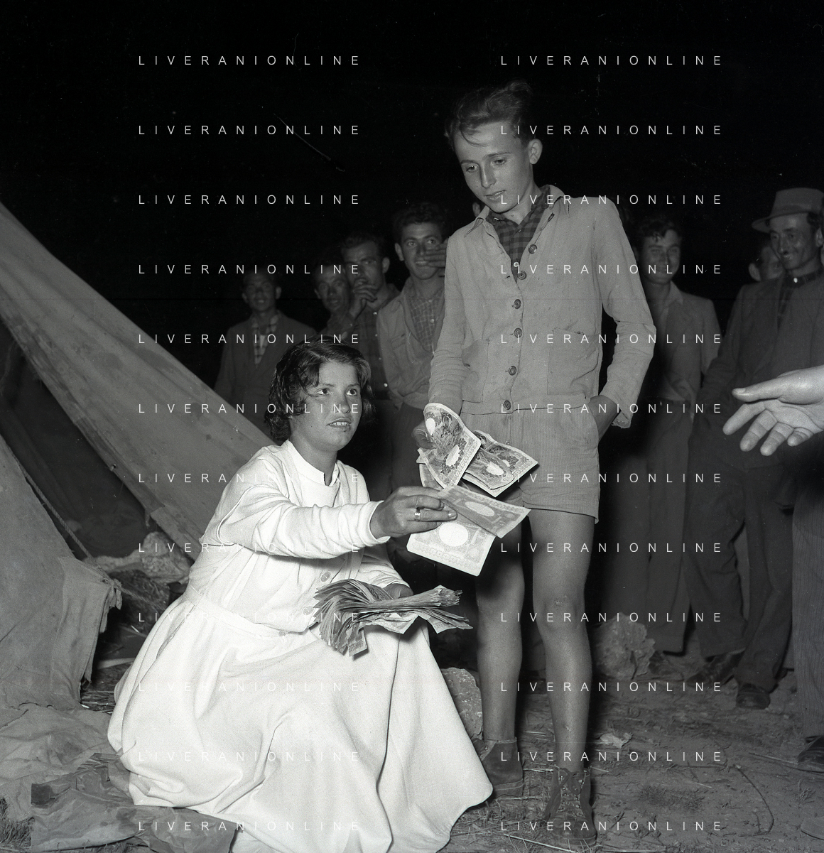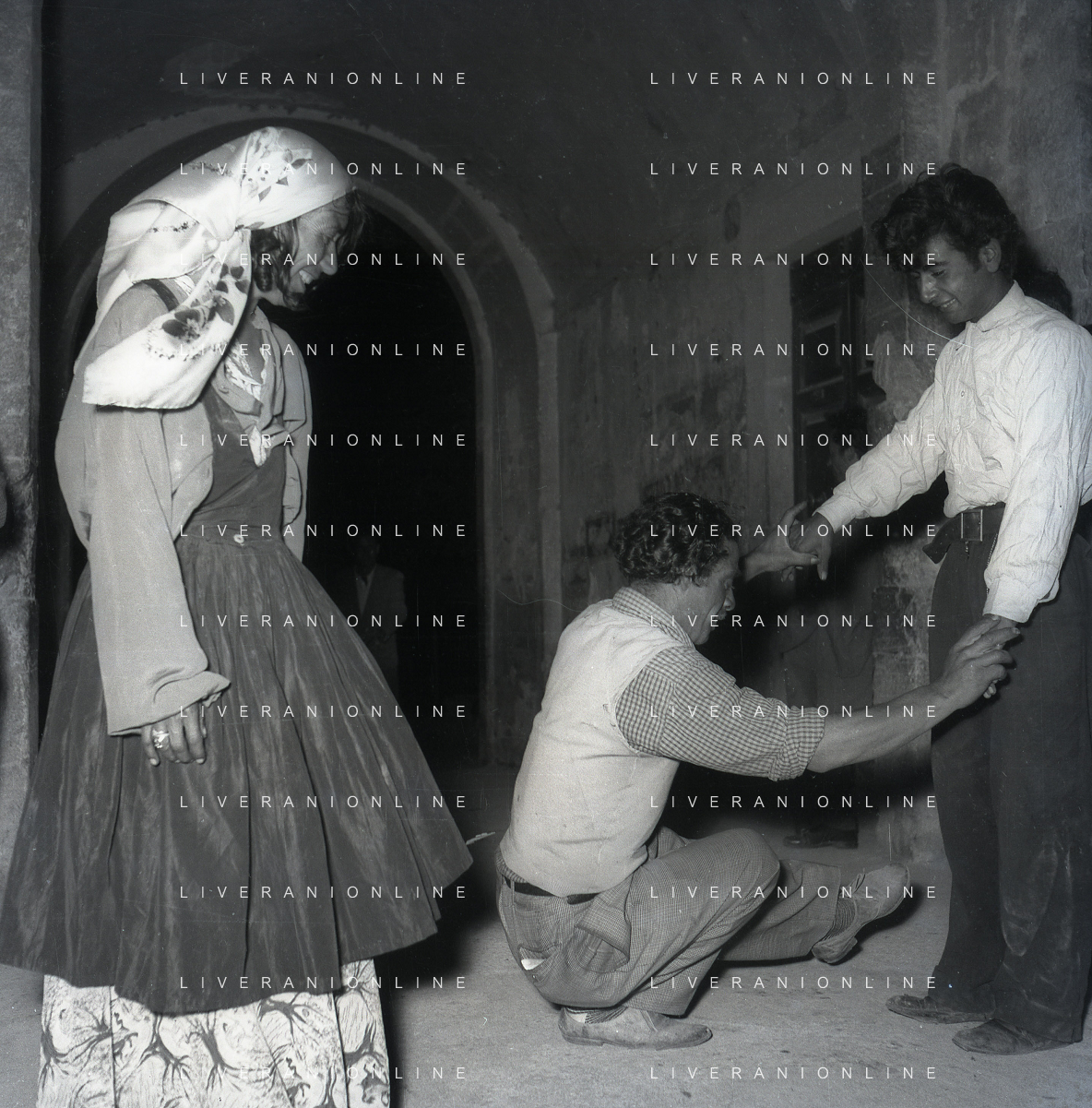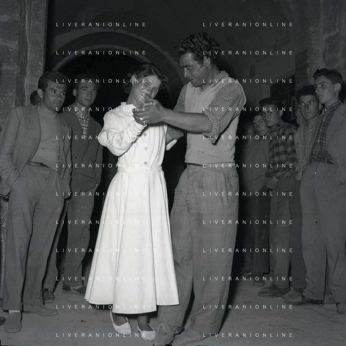 NEG-28-05-1955 ROMA -IL MATRIMONIO TRA IL REGISTA GUALTIERO JACOPETTI E E LA ZINGARA QUNDICENNE JOLANDA CALDERAS NELLA FOTO I PARENTI DI JOLANDA CALDERAS - Nel 1955, però Gualtiero viene arrestato con l'accusa di aver violentato una zingara quindicenne, Jolanda Calderas. Dimesso dalla direzione di Cronache, è costretto a sposarsi la ragazza nel carcere di Regina Coeli per riacquistare la sua libertà FOTO SANDRO VESPASIANI-AG ALDO LIVERANI SAS