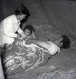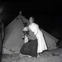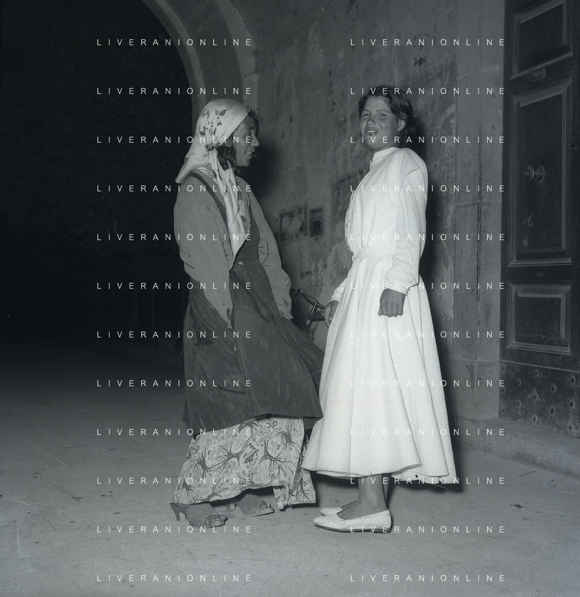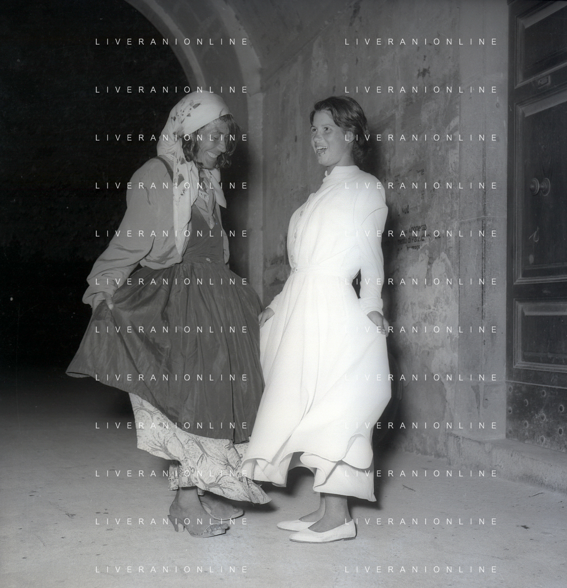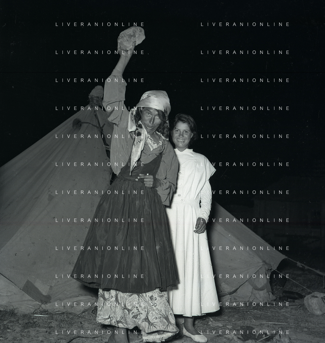 NEG-28-05-1955 ROMA -IL MATRIMONIO TRA IL REGISTA GUALTIERO JACOPETTI E E LA ZINGARA QUNDICENNE JOLANDA CALDERAS NELLA FOTO JOLANDA CALDERAS CON LA MADRE- Nel 1955, però Gualtiero viene arrestato con l'accusa di aver violentato una zingara quindicenne, Jolanda Calderas. Dimesso dalla direzione di Cronache, è costretto a sposarsi la ragazza nel carcere di Regina Coeli per riacquistare la sua libertà FOTO SANDRO VESPASIANI-AG ALDO LIVERANI SAS