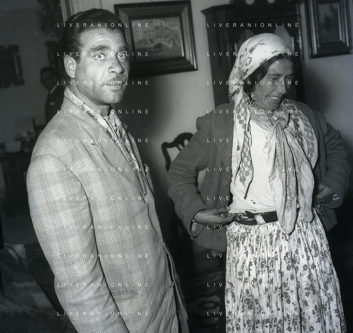 NEG-28-05-1955 ROMA -IL MATRIMONIO TRA IL REGISTA GUALTIERO JACOPETTI E E LA ZINGARA QUNDICENNE JOLANDA CALDERAS NELLA FOTO I GENITORI DI JOLANDA CALDERAS - Nel 1955, però Gualtiero viene arrestato con l'accusa di aver violentato una zingara quindicenne, Jolanda Calderas. Dimesso dalla direzione di Cronache, è costretto a sposarsi la ragazza nel carcere di Regina Coeli per riacquistare la sua libertà FOTO SANDRO VESPASIANI-AG ALDO LIVERANI SAS