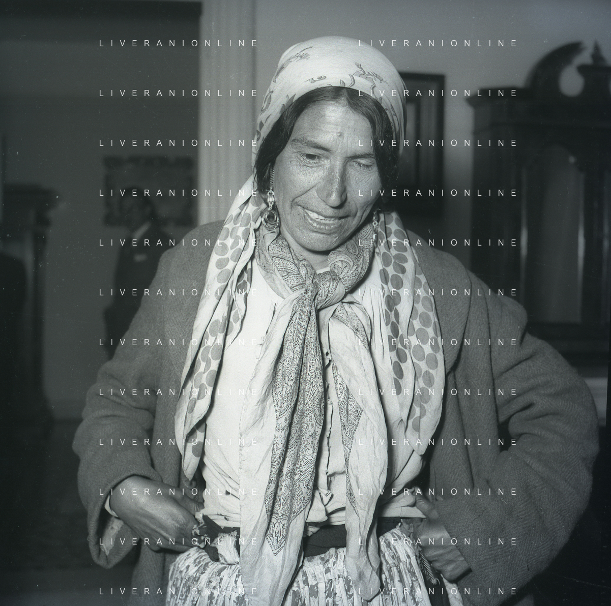 NEG-28-05-1955 ROMA -IL MATRIMONIO TRA IL REGISTA GUALTIERO JACOPETTI E E LA ZINGARA QUNDICENNE JOLANDA CALDERAS NELLA FOTO LA MADRE DI JOLANDA CALDERAS - Nel 1955, però Gualtiero viene arrestato con l'accusa di aver violentato una zingara quindicenne, Jolanda Calderas. Dimesso dalla direzione di Cronache, è costretto a sposarsi la ragazza nel carcere di Regina Coeli per riacquistare la sua libertà FOTO SANDRO VESPASIANI-AG ALDO LIVERANI SAS
